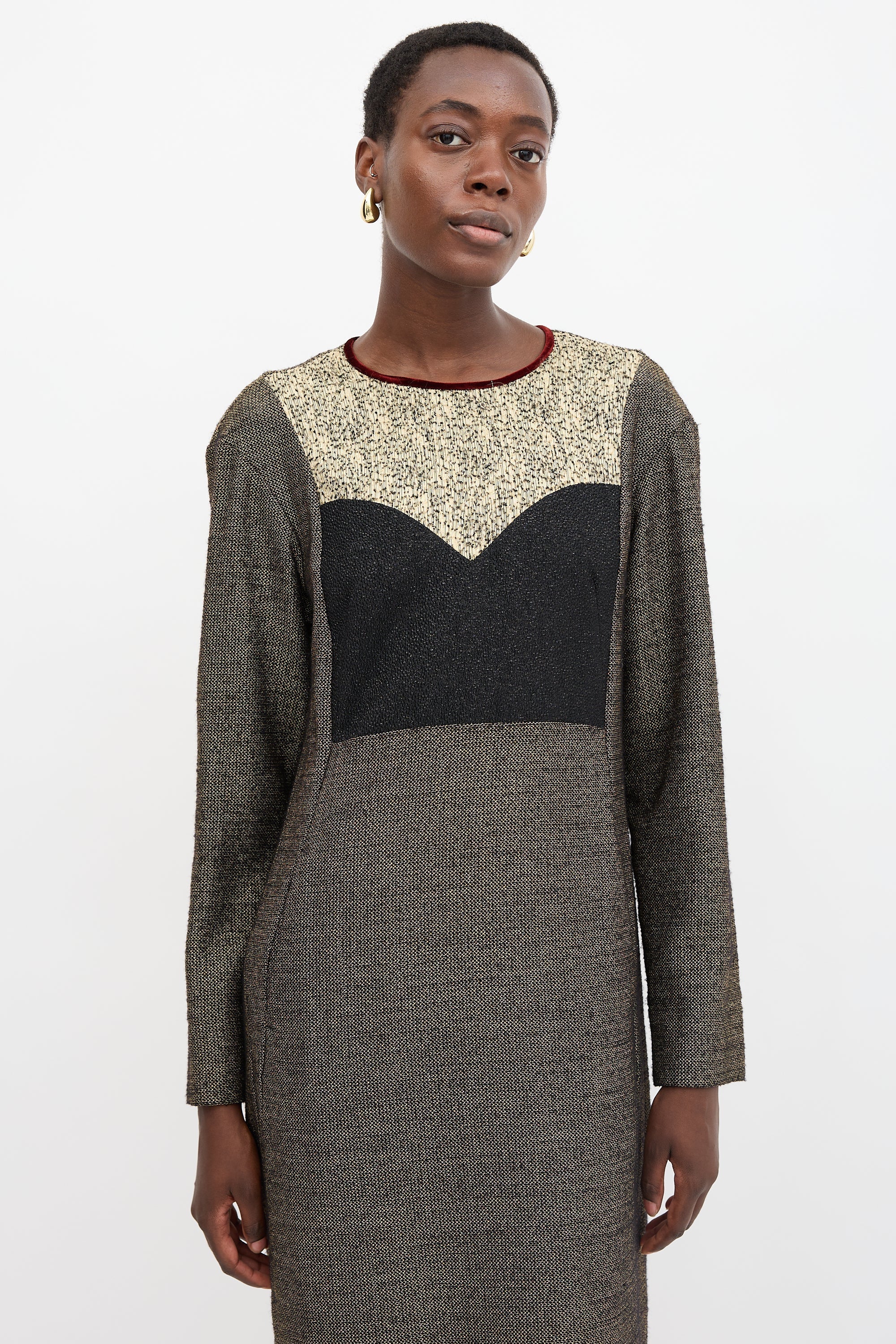 Dries Van Noten Metallic Wool Panel Dress EU 40