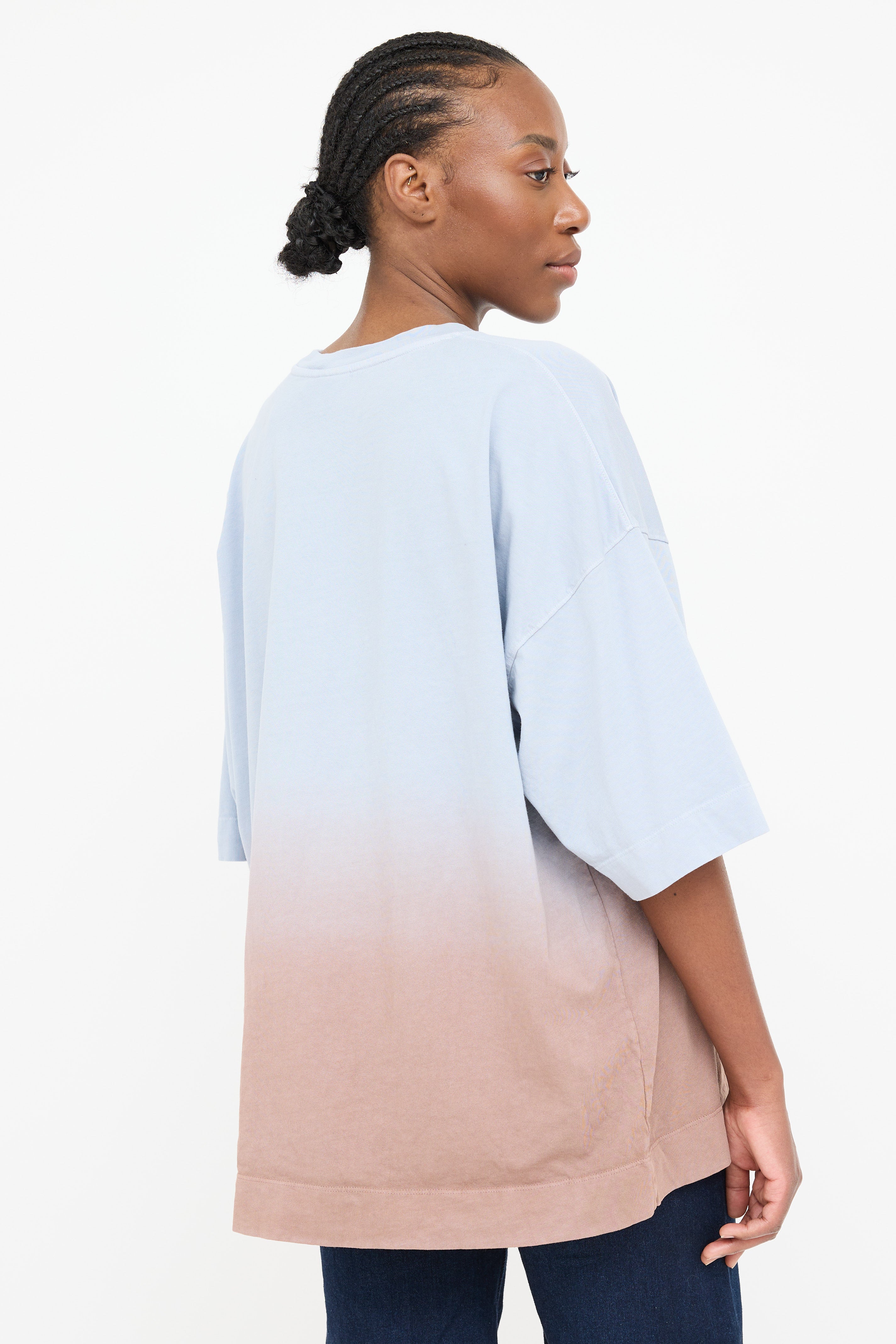 Pre-owned Dries Van Noten blue and brown ombre t-shirt featuring crewneck, short sleeves and oversized fit.