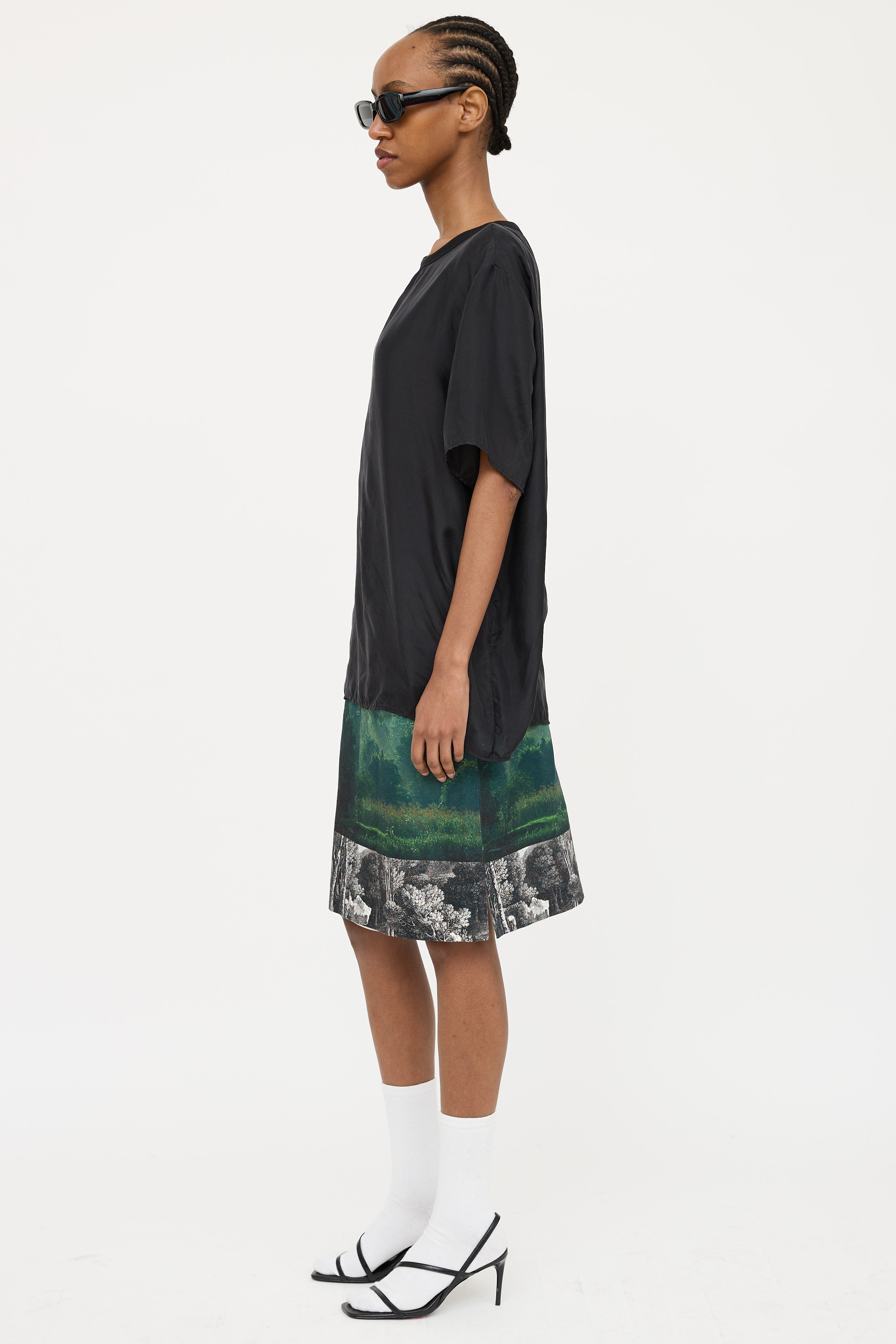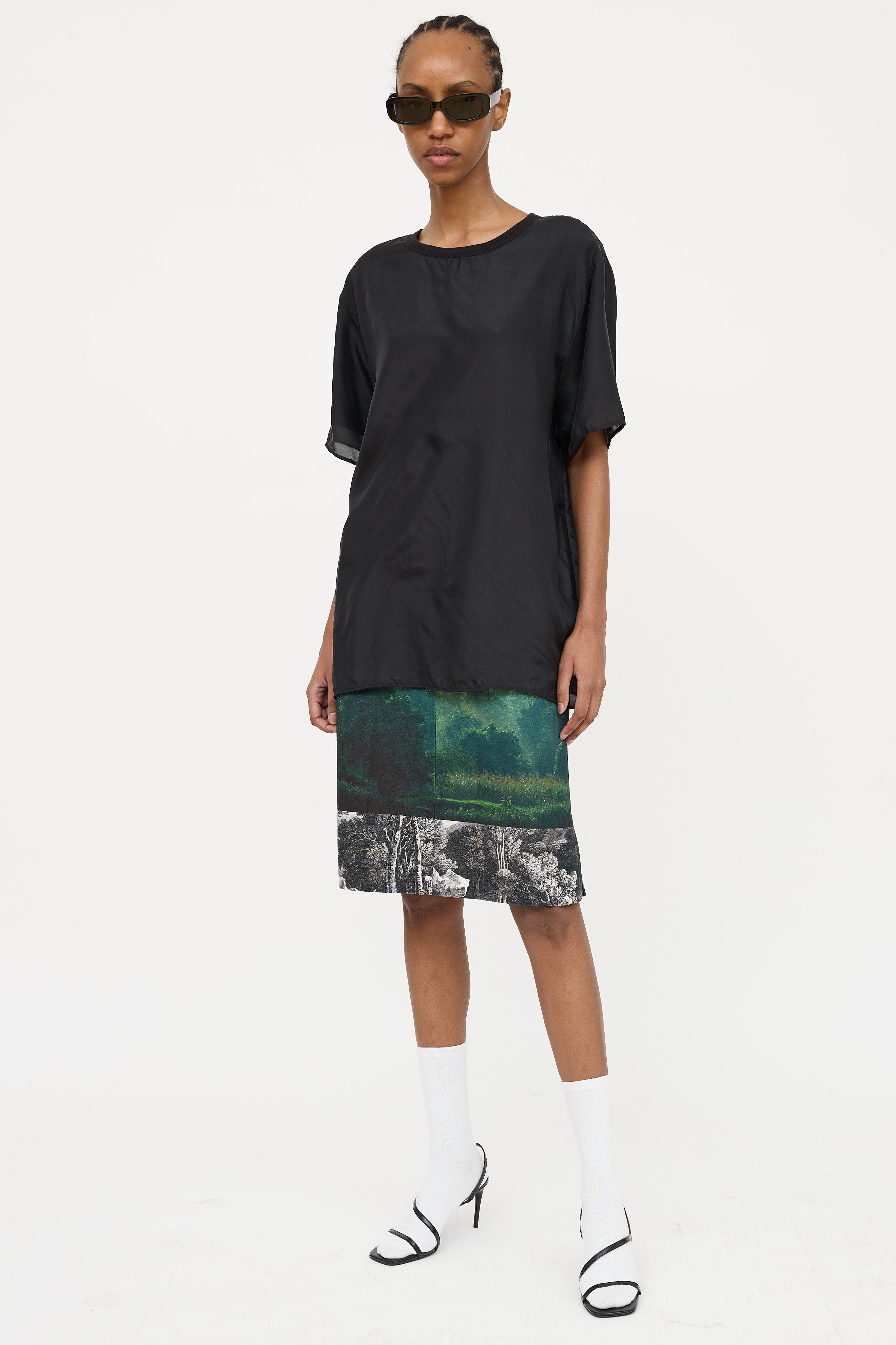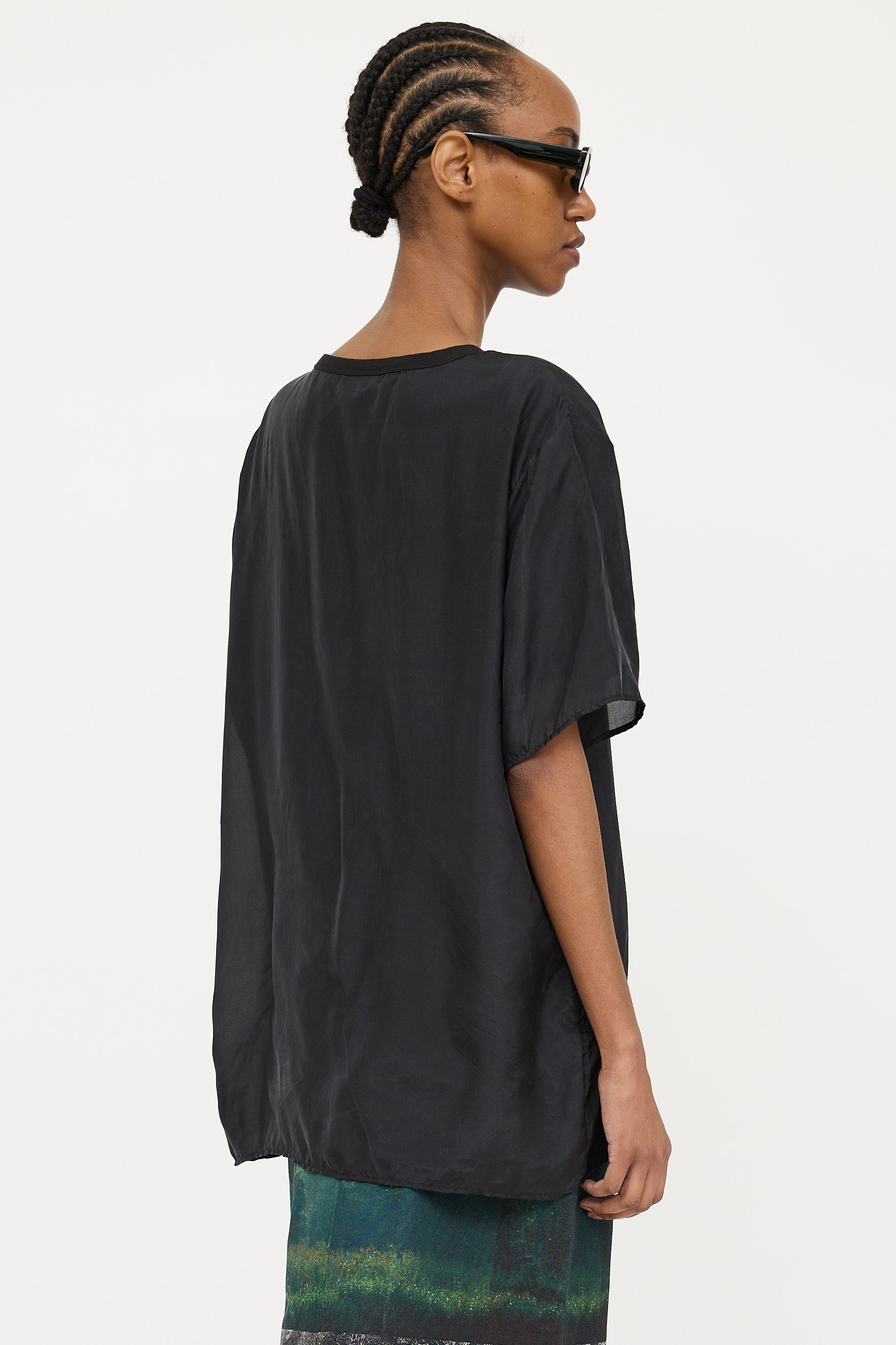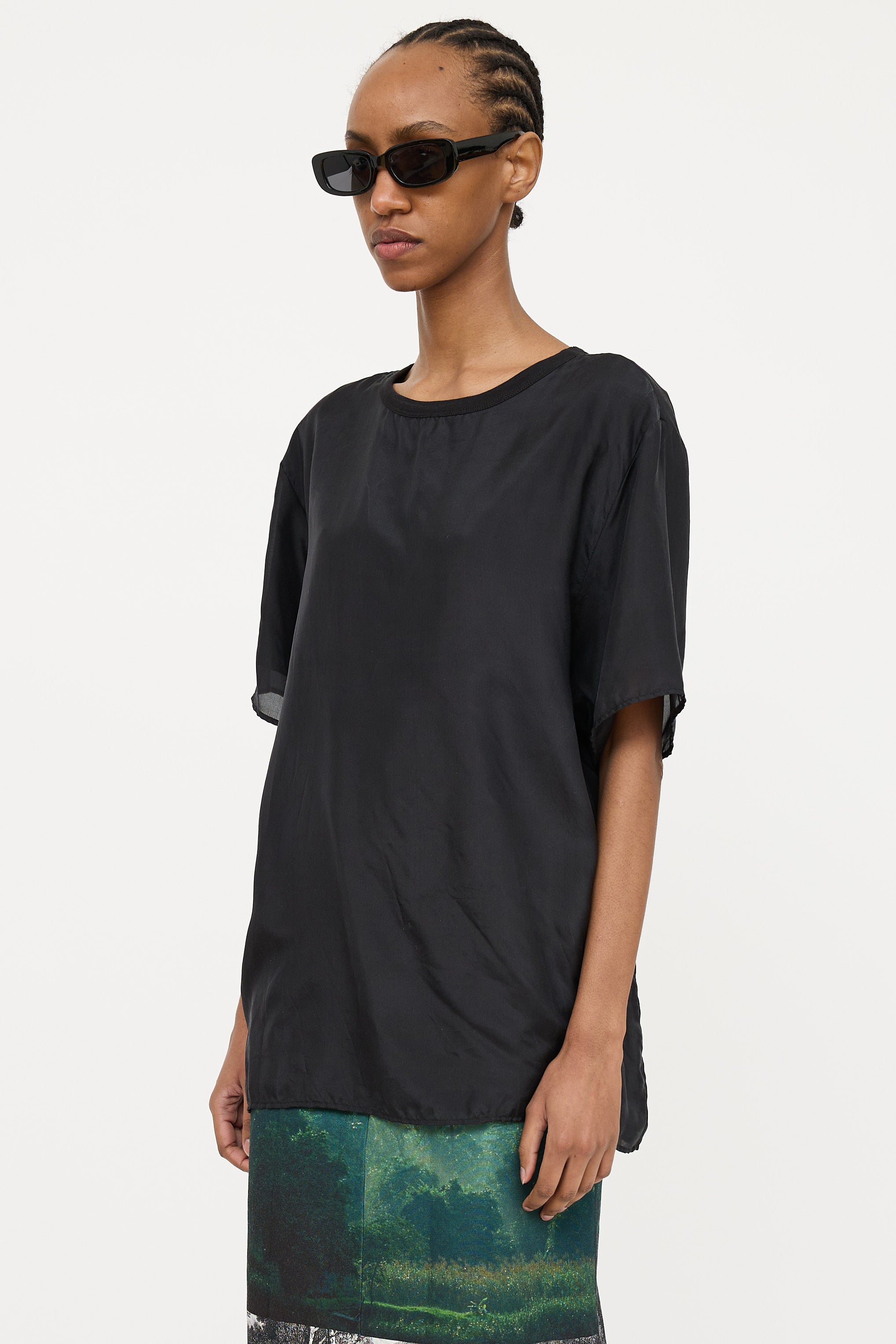 Pre-owned Dries Van Noten black top featuring sheer silk blend layer, round neckline and ribbed collar. Lined.