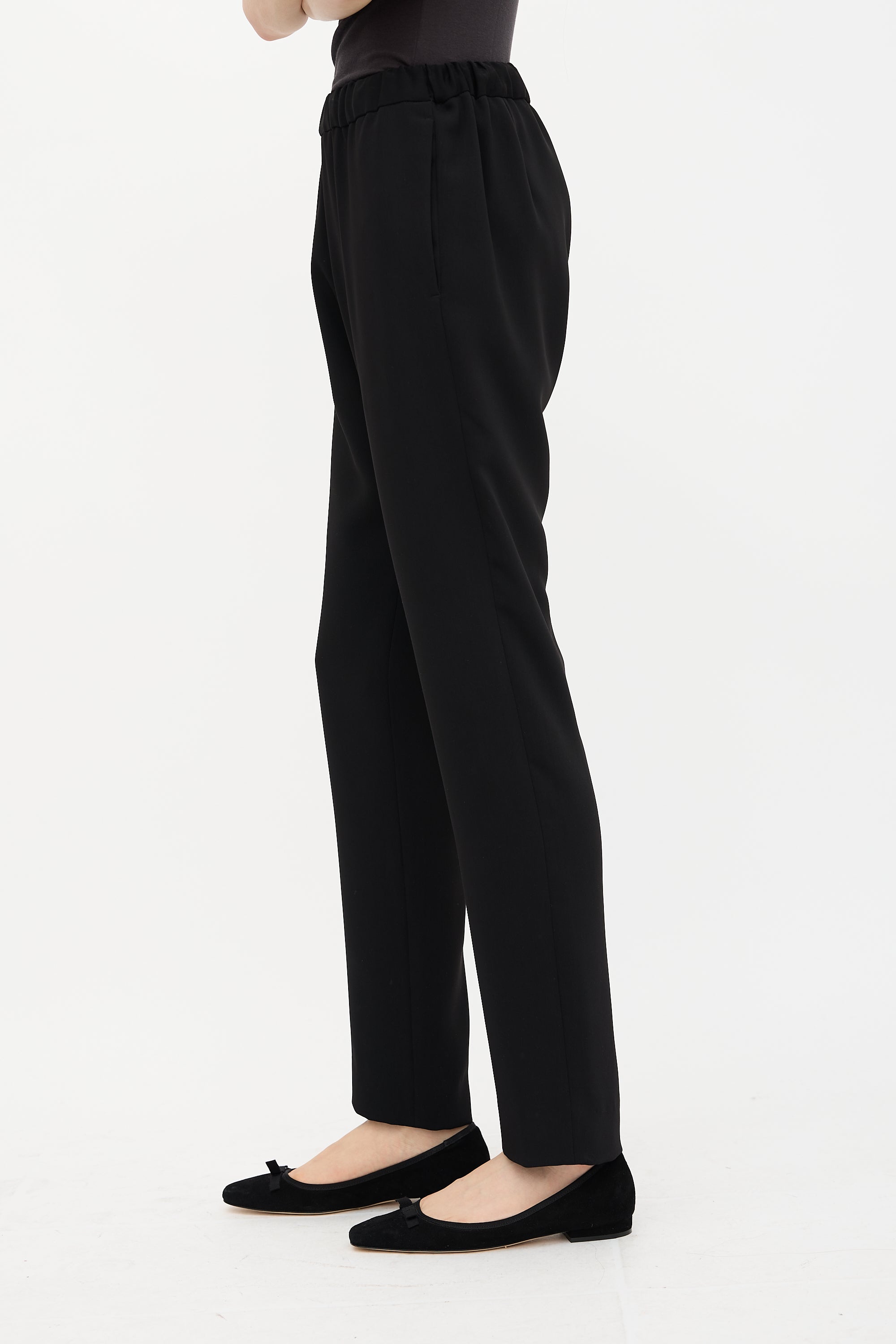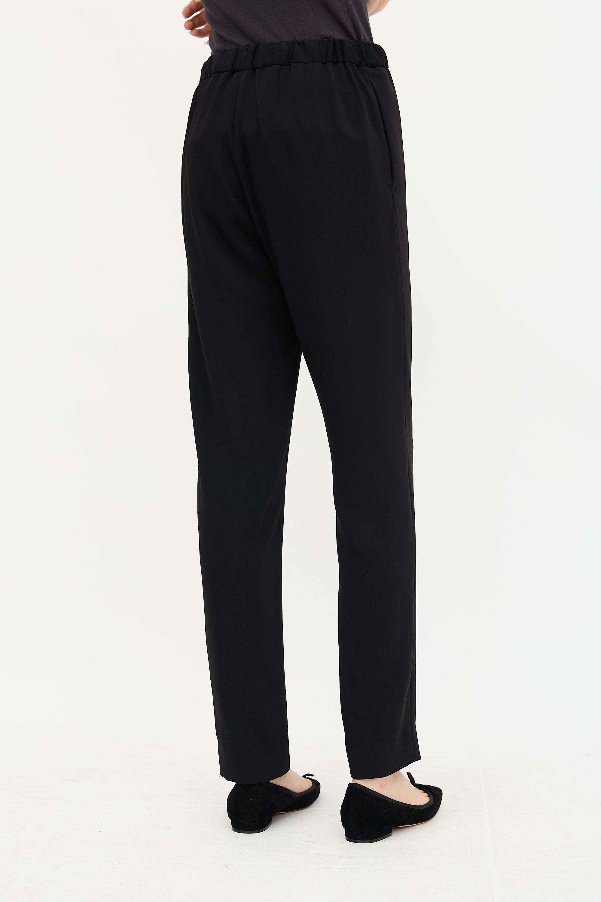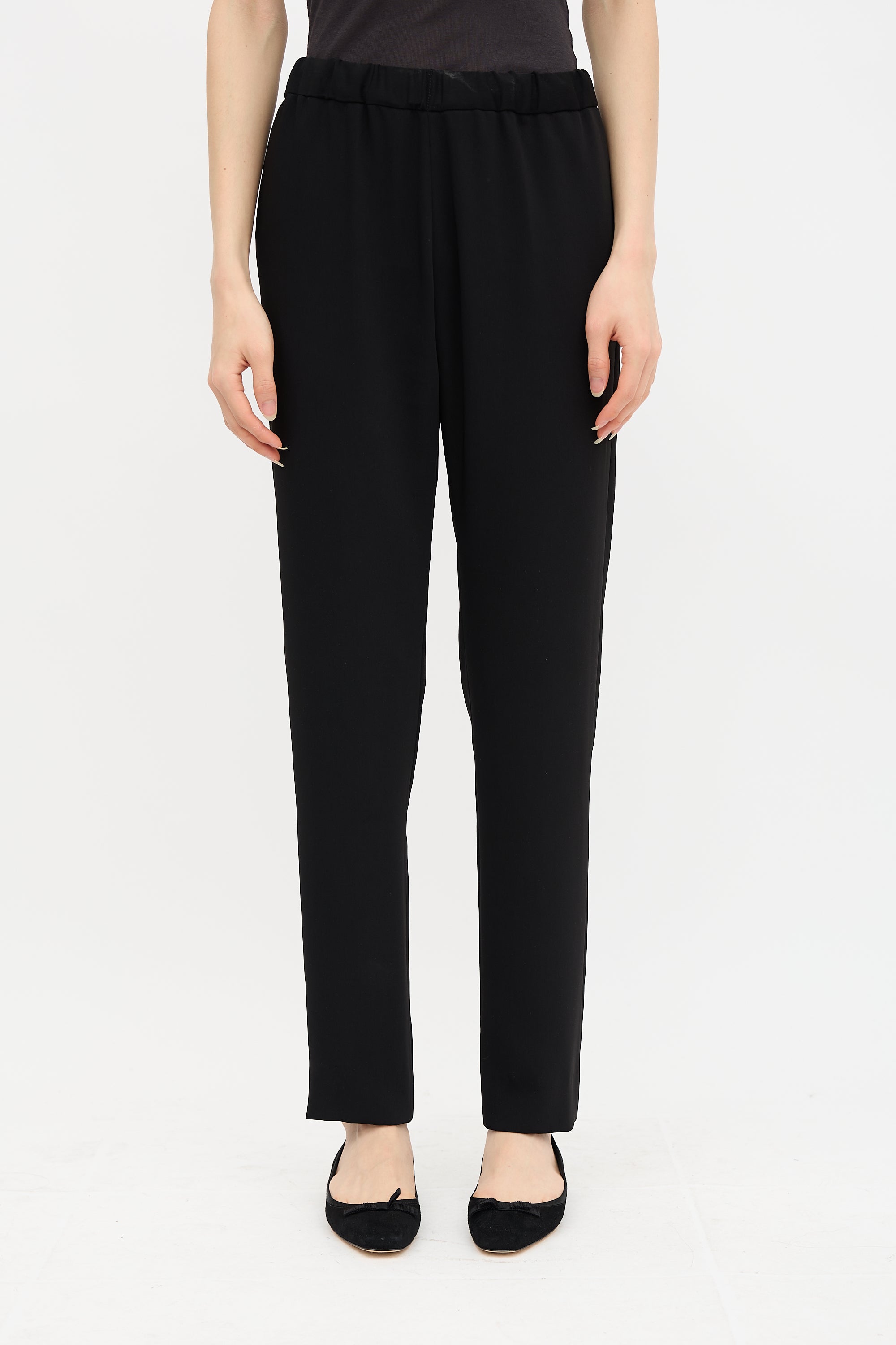 Pre-owned Dries Van Noten black pants featuring a high rise, elasticized waistband, in seam pockets, and tapered leg. Unlined.