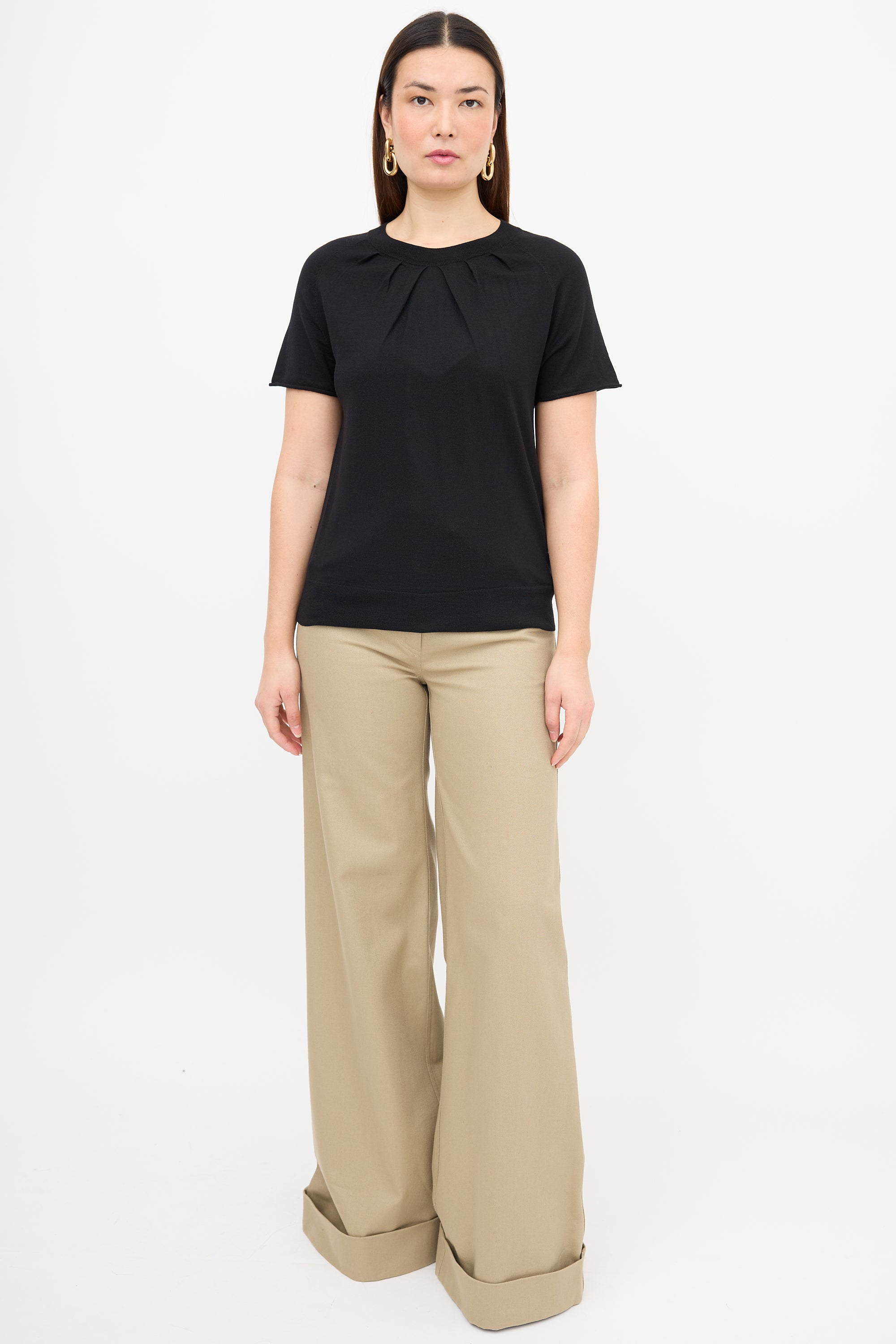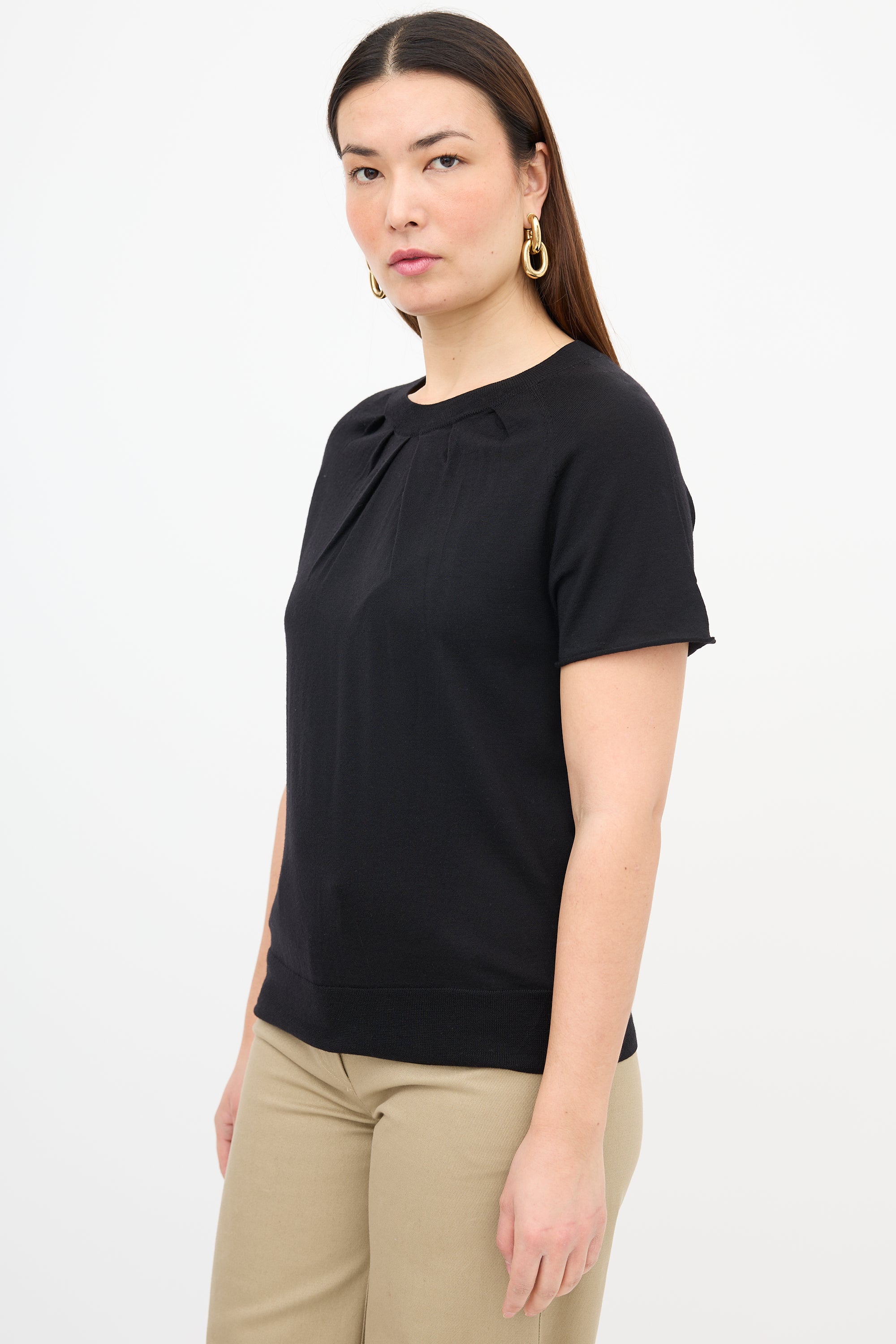 Wool Pleat Neck Top Medium Size Guide