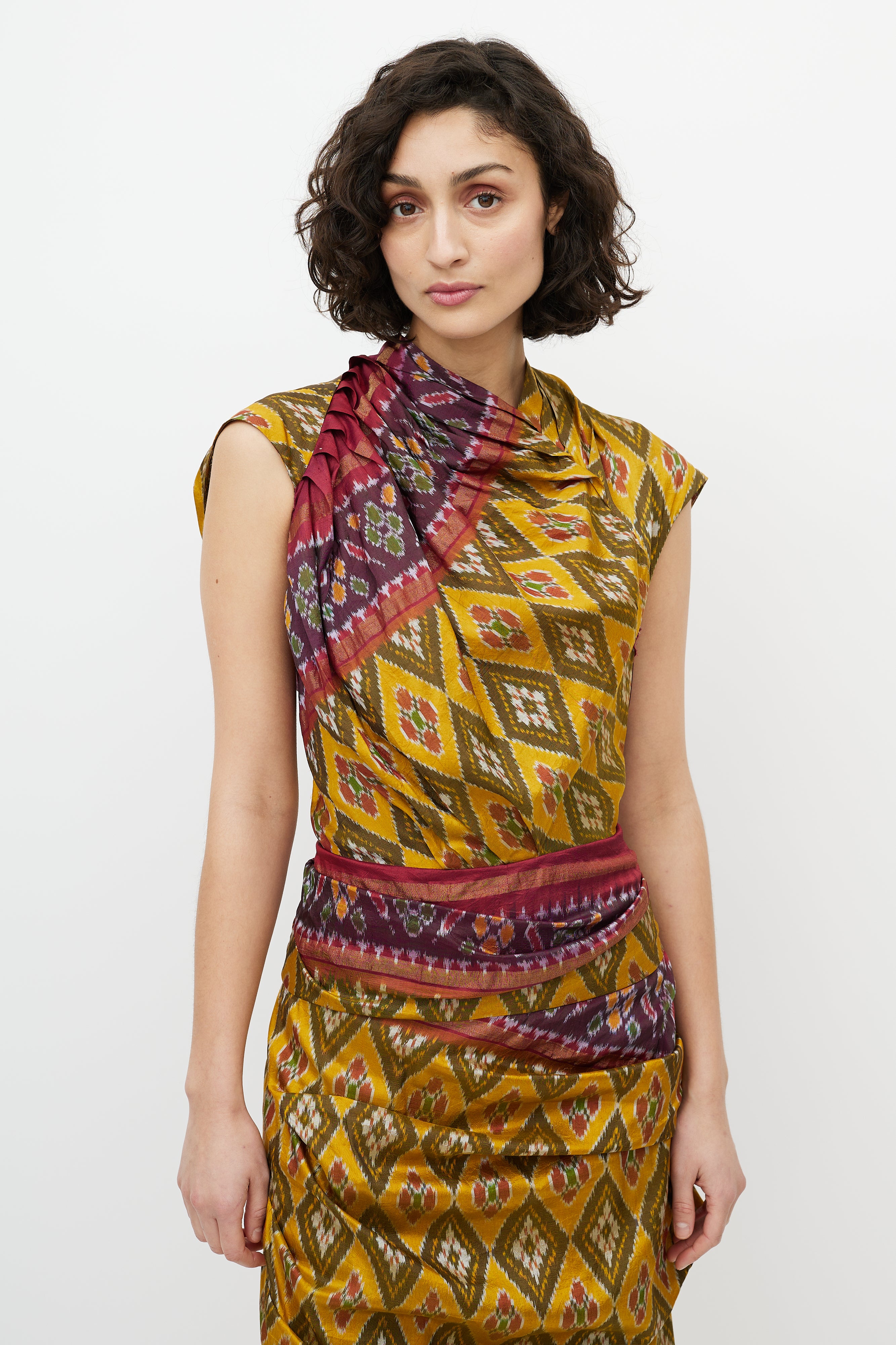 Yellow & Red Silk Pleated Geometric Dress EU 38 Size Guide