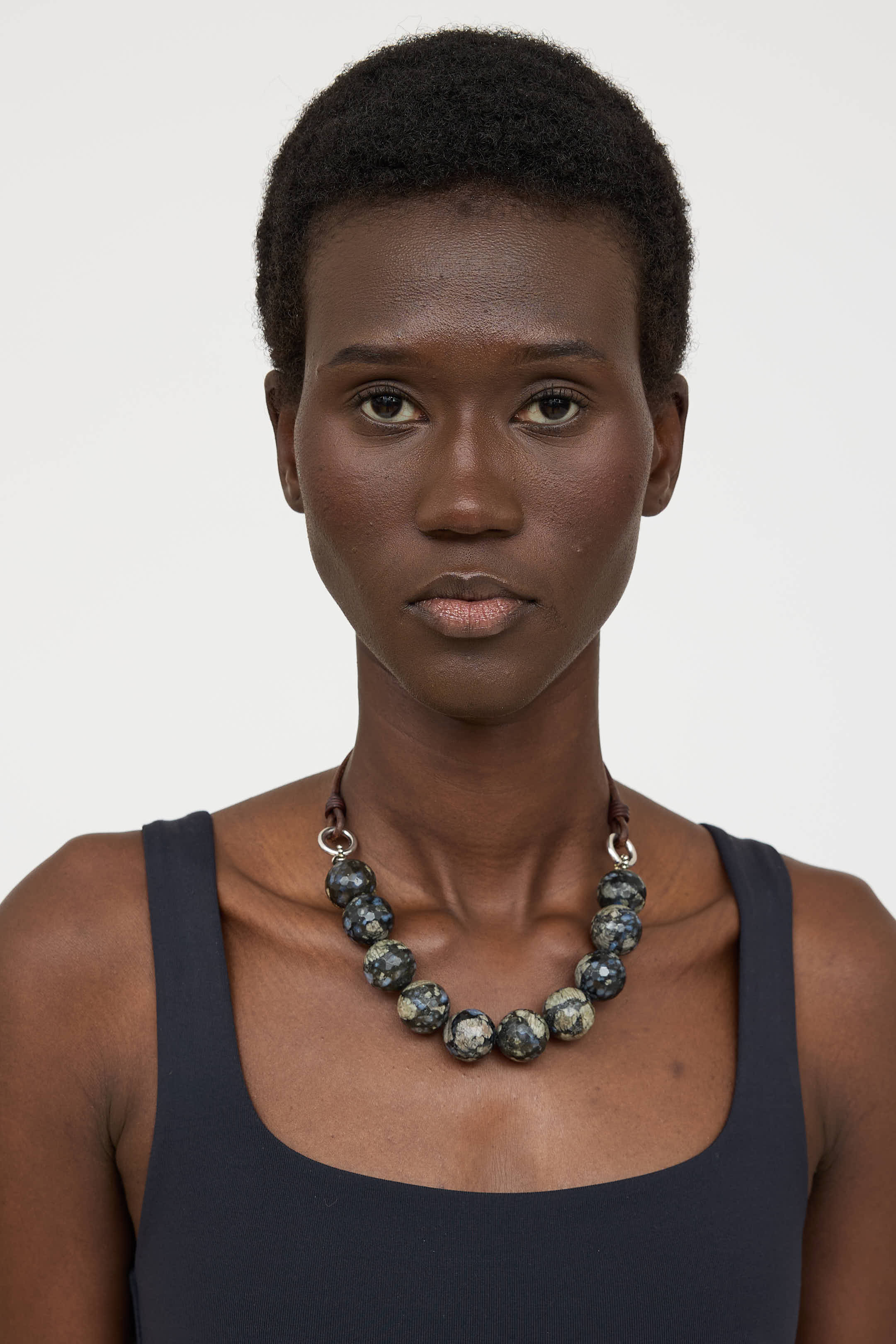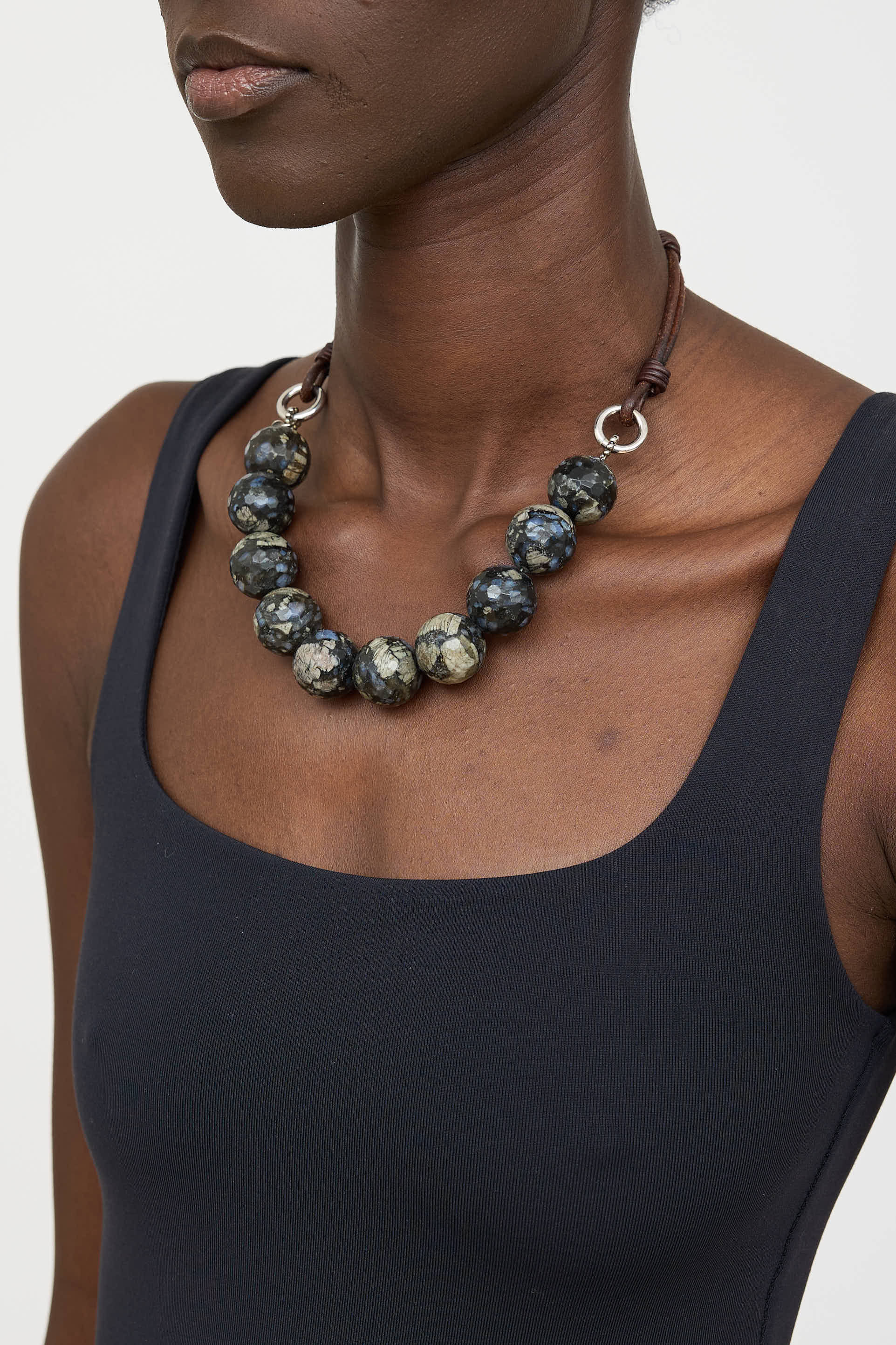 Brunello Cucinelli Sterling Silver Stone Ball Bead Necklace