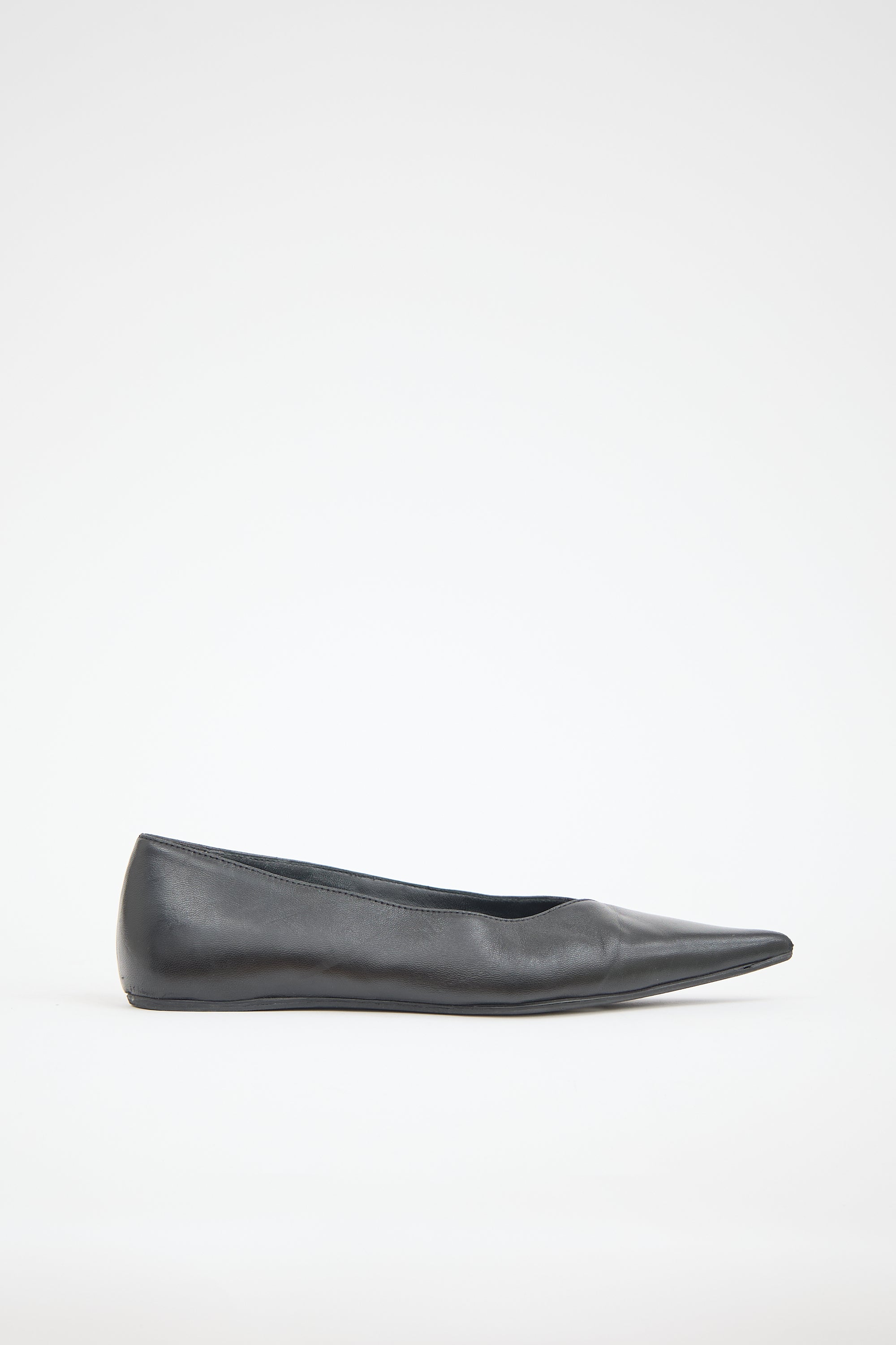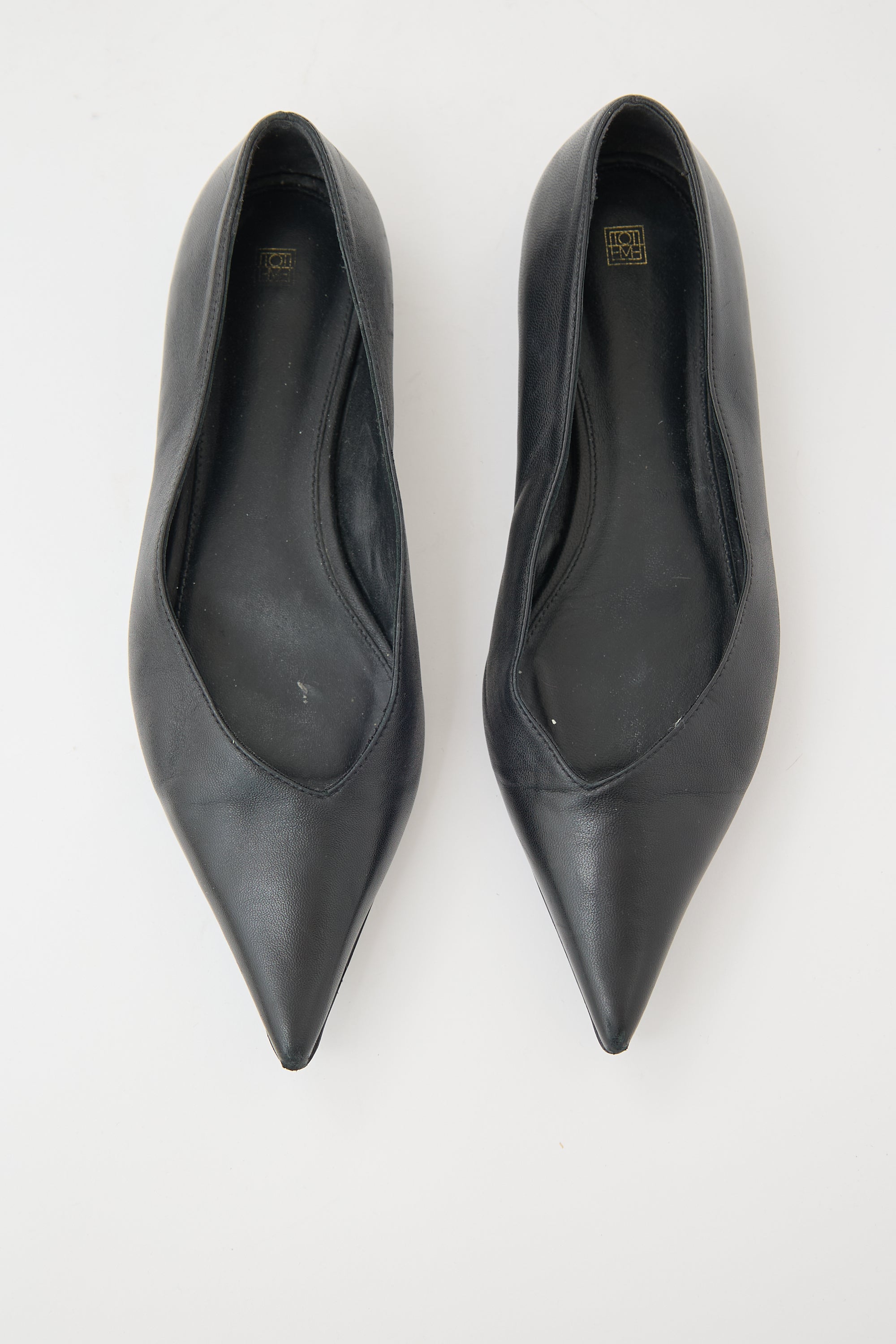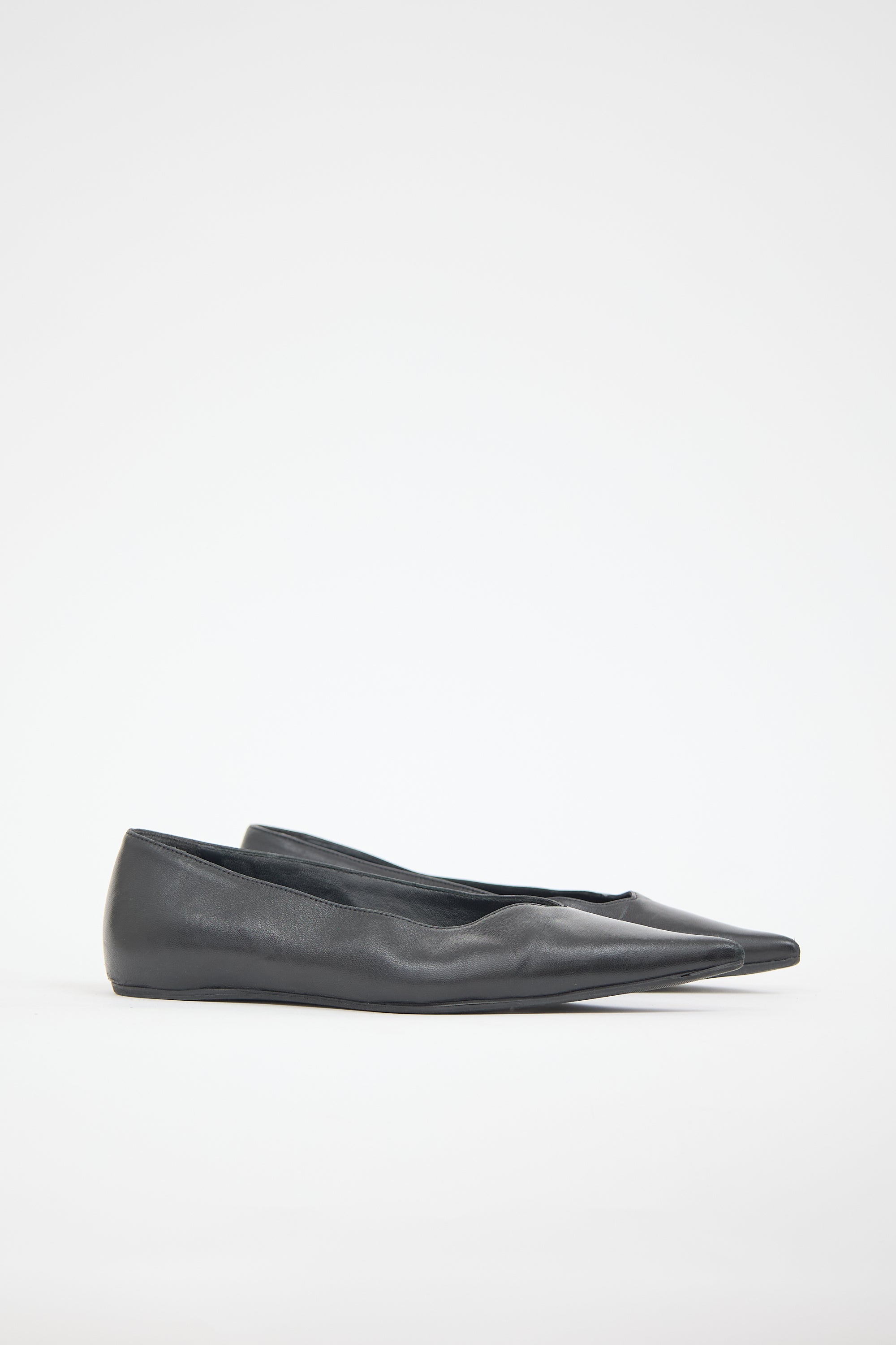 Pre-owned Toteme black leather Asymmetric flats featuring a pointed toe, asymmetrical collar topline, and slip on entry.