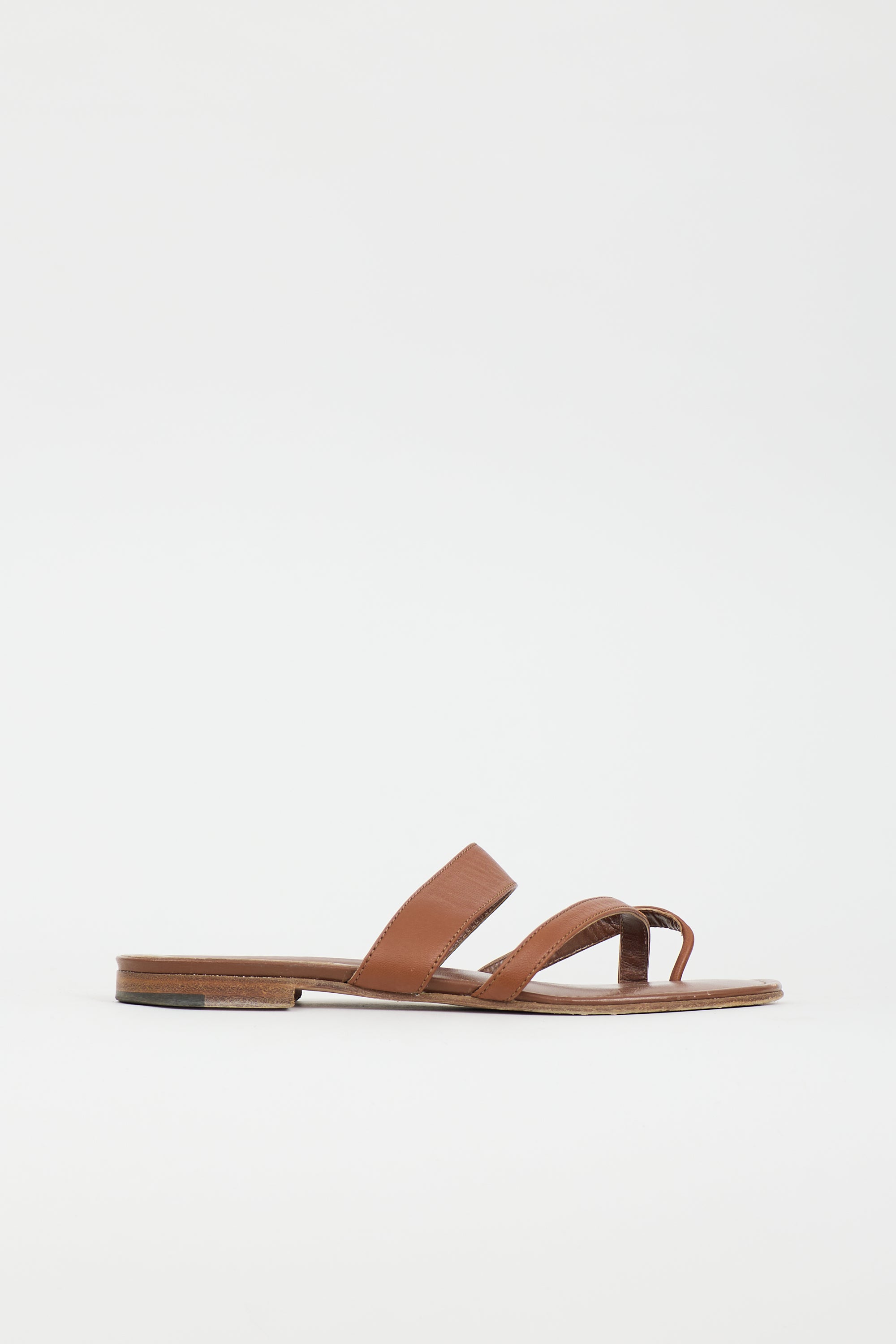 Pre-owned Manolo Blahnik brown leather Susa sandals featuring tapered square toe and toe loop.