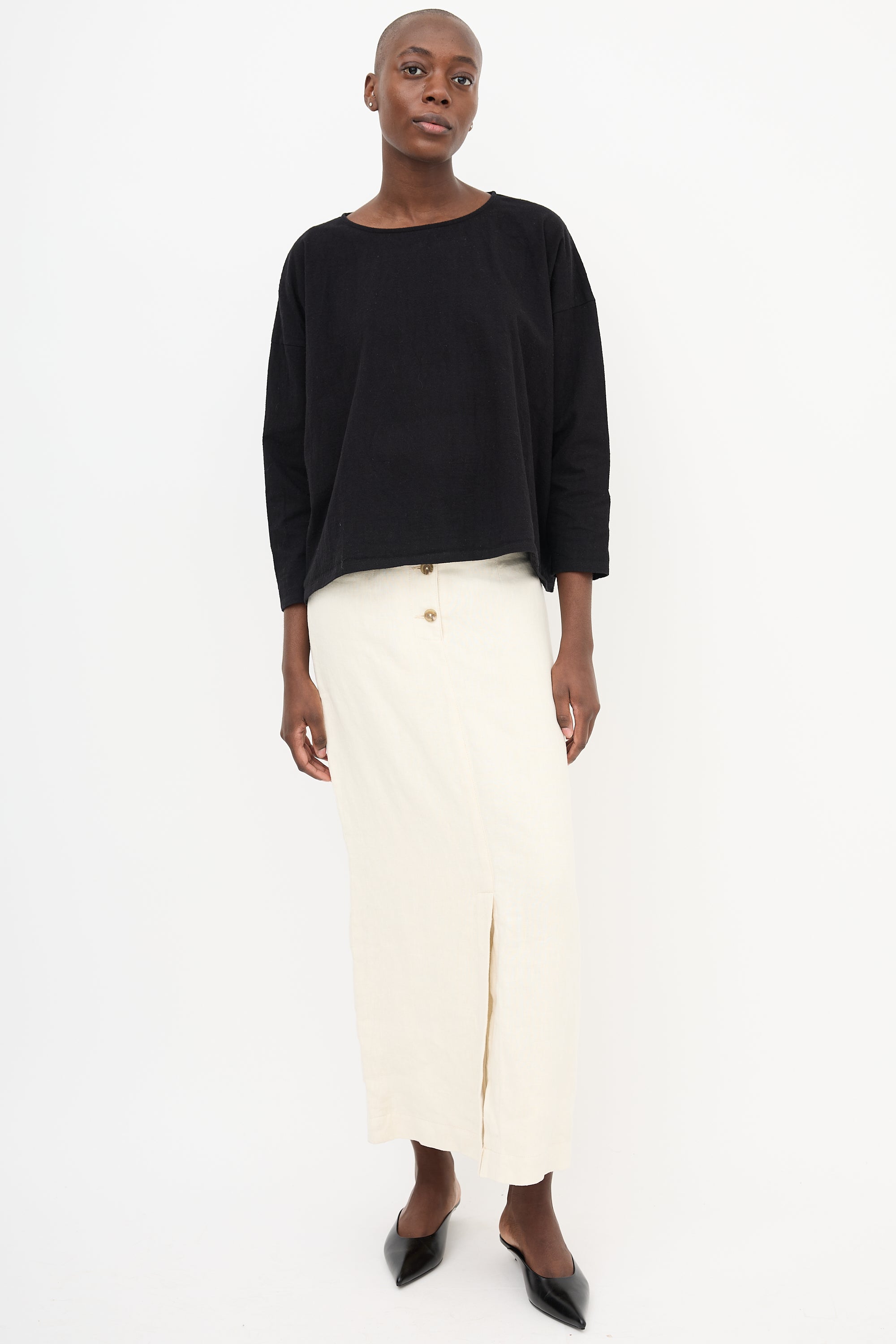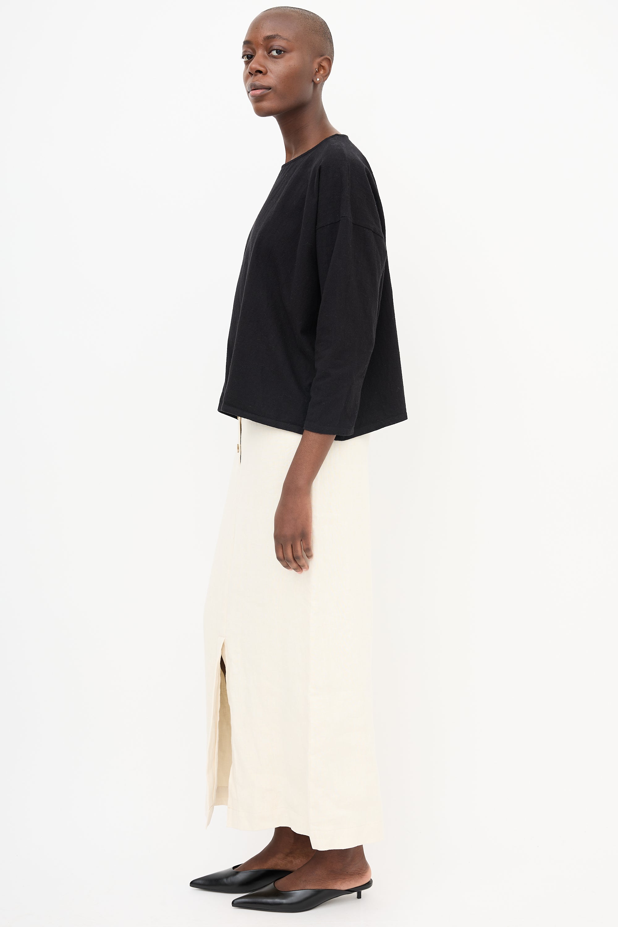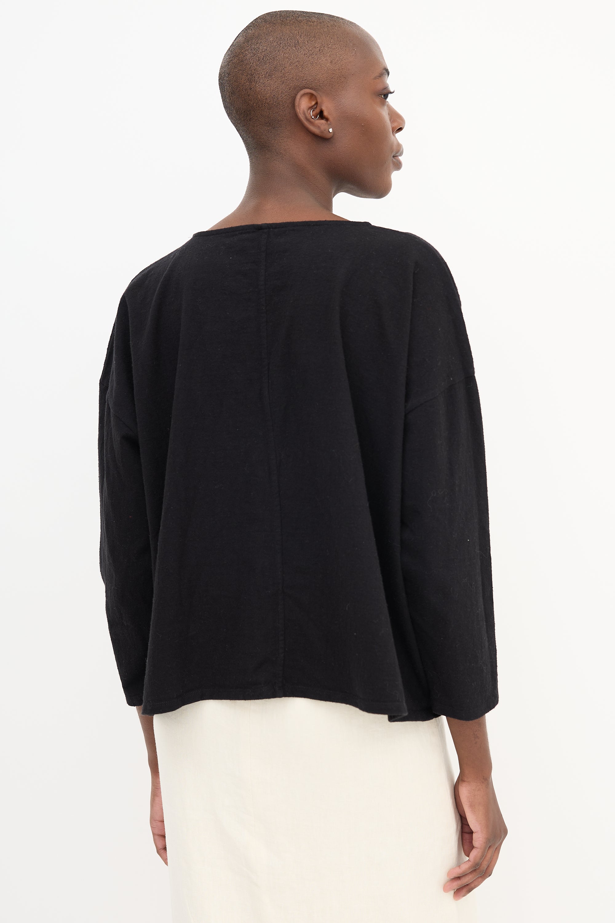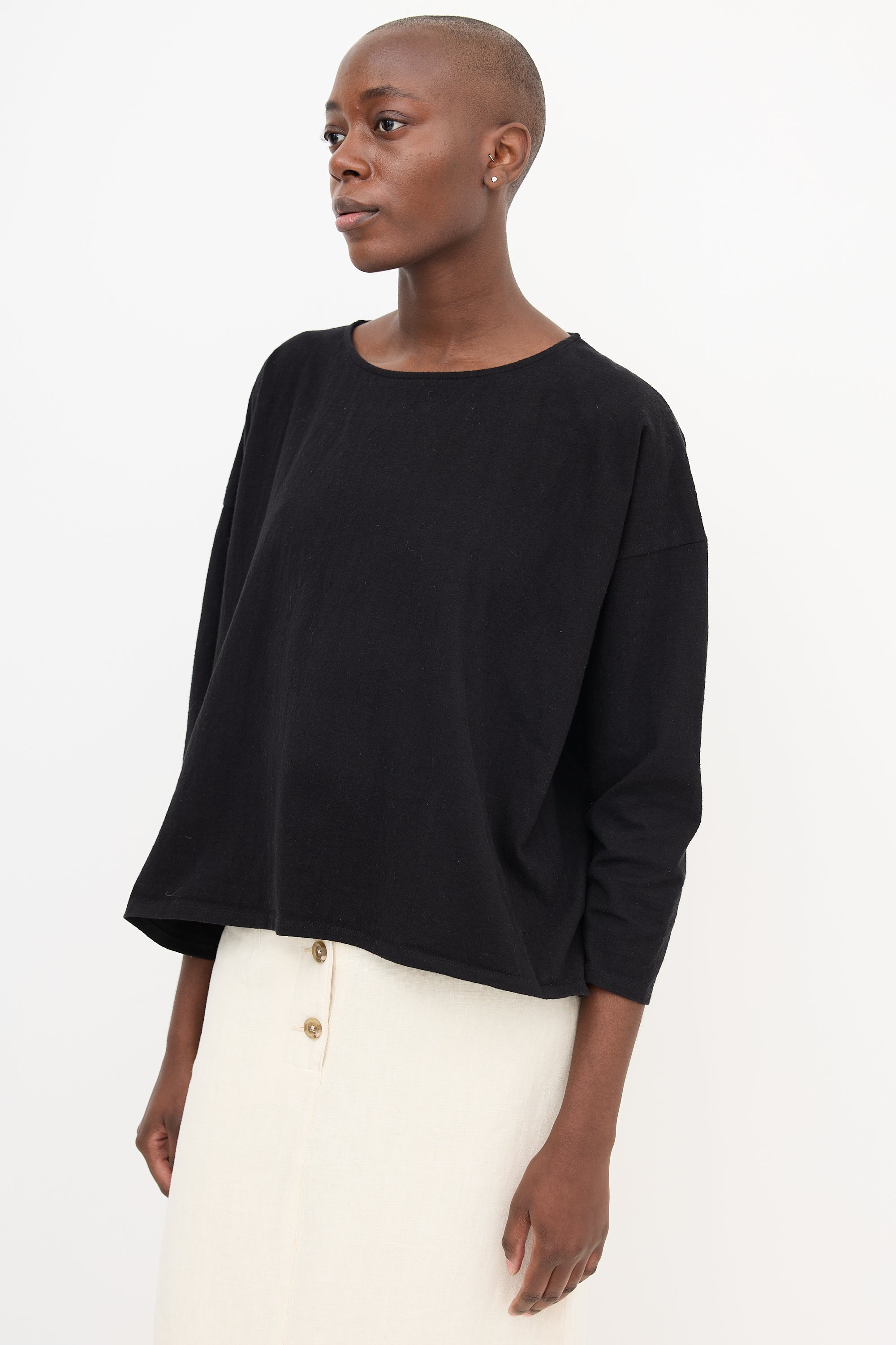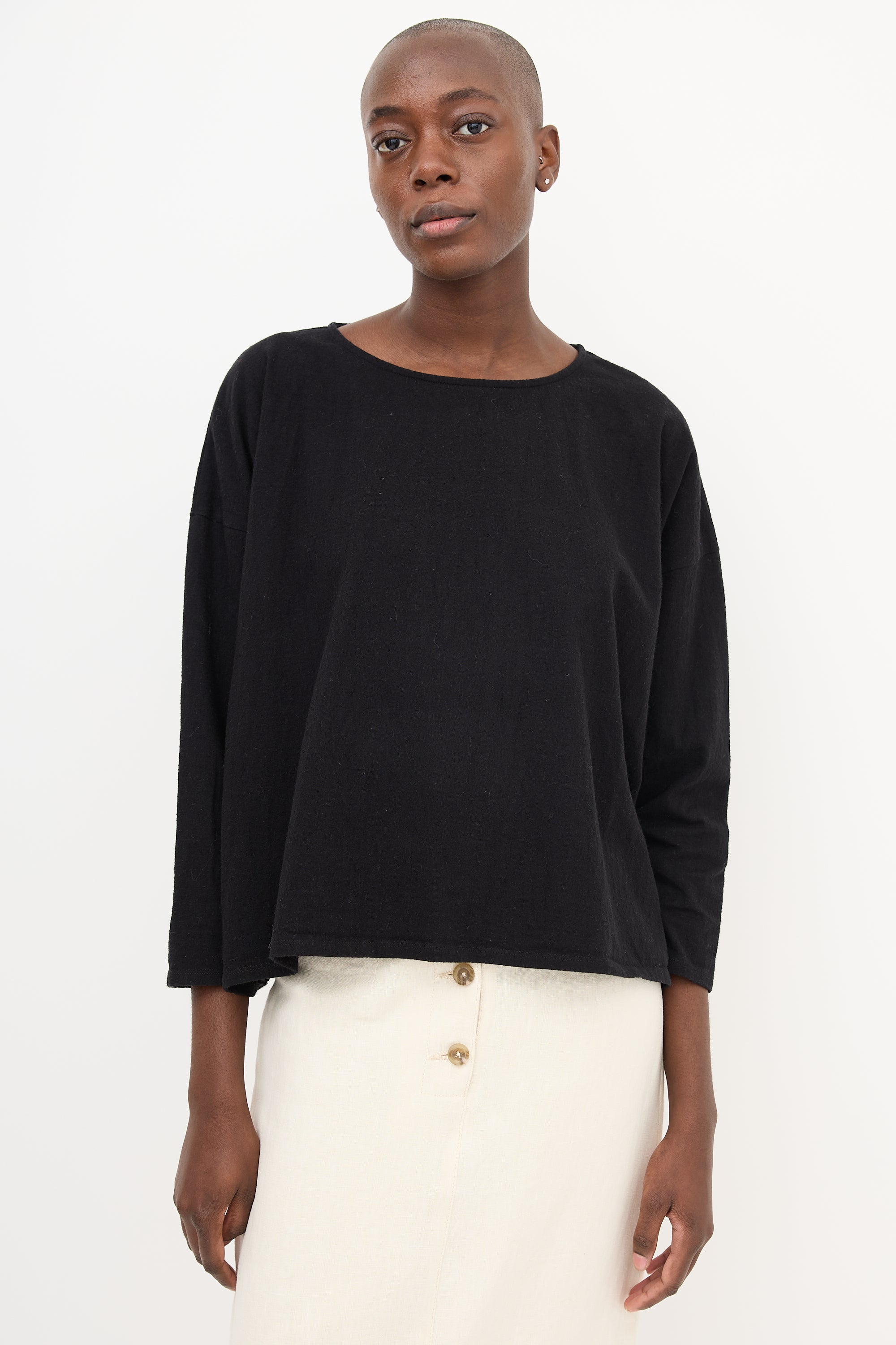 Pre-owned The Row black cotton top featuring a boat neckline and drop shoulders.
