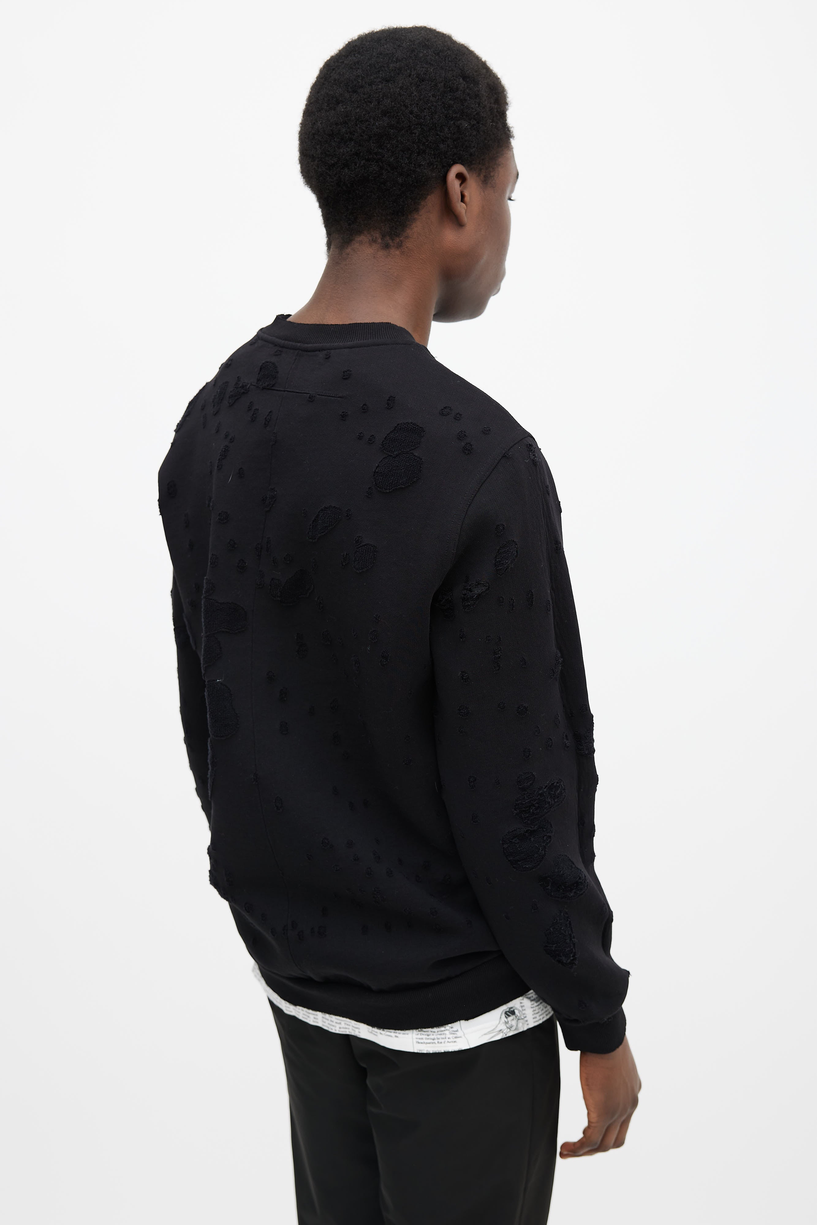 Black Cotton & White Logo Distressed Sweater Medium Size Guide