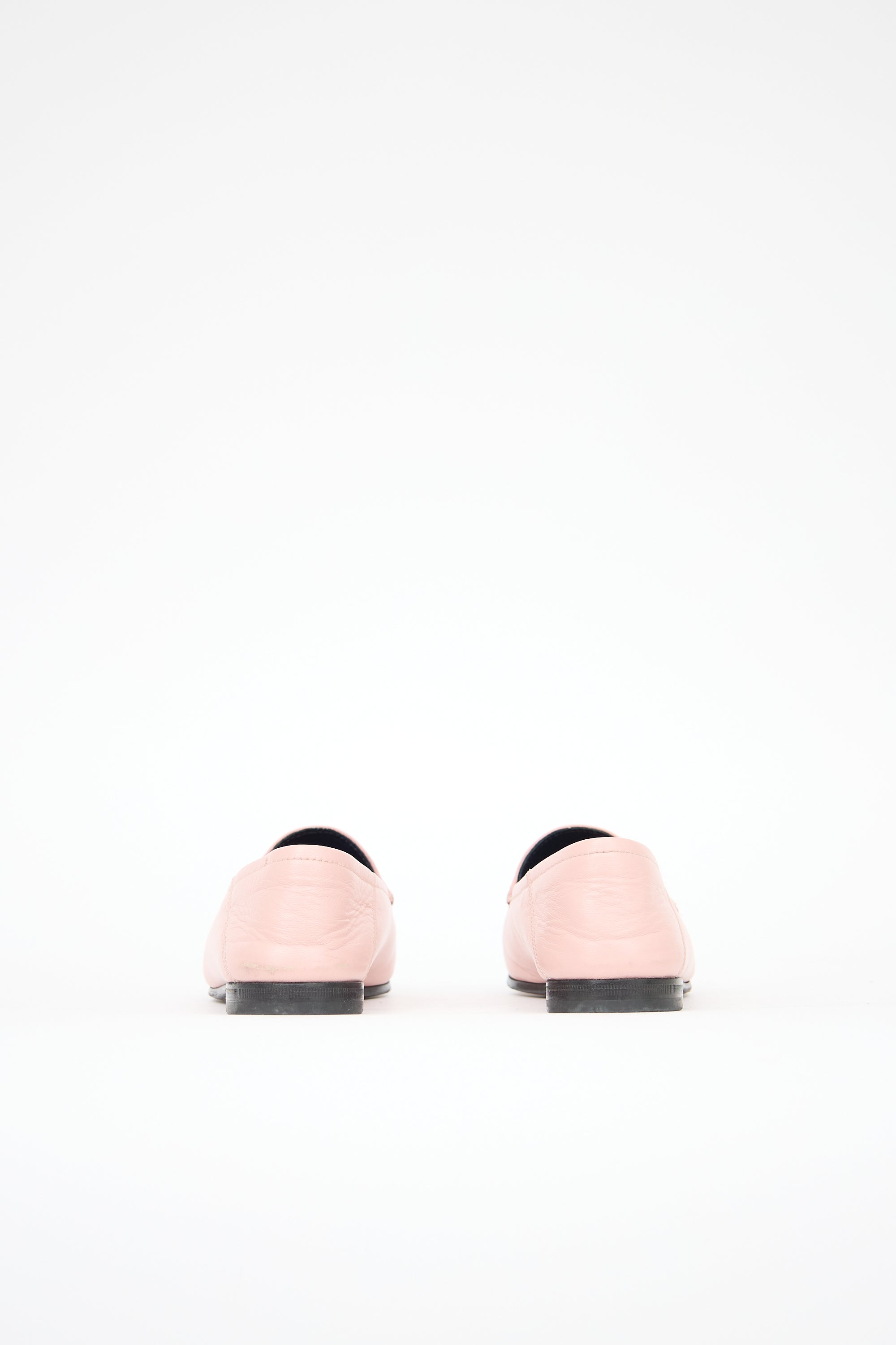 Pre-owned Gucci pink leather Jordaan loafers featuring almond toe, gold tone Horsebit at vamp, and slip on entry.