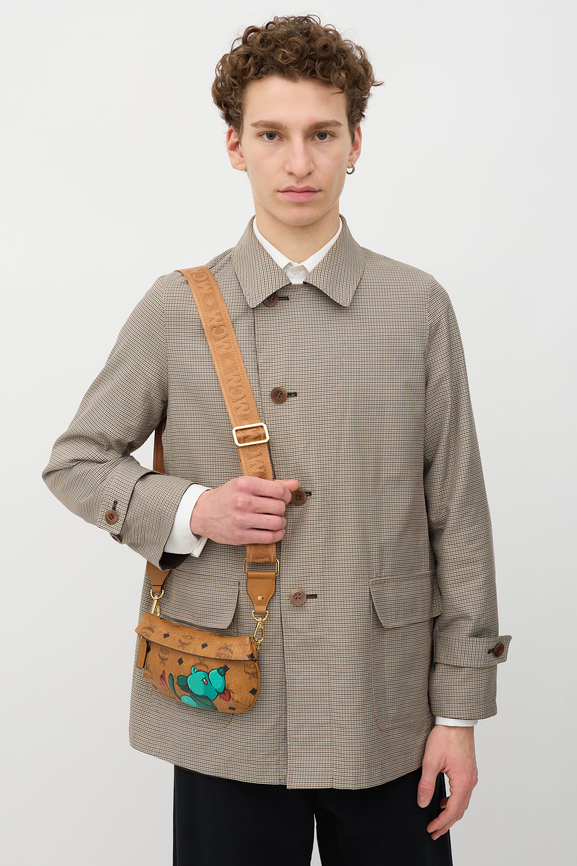 Pre-owned MCM brown and multicolour leather Haru, Henry, Kaiser belt bag featuring printed monogram, Kaiser the Blunt Puppy graphic, removable and adjustable logo strap, back zip pocket, front zip closure, and one lined main compartment with two card slots. Comes with original dust bag.