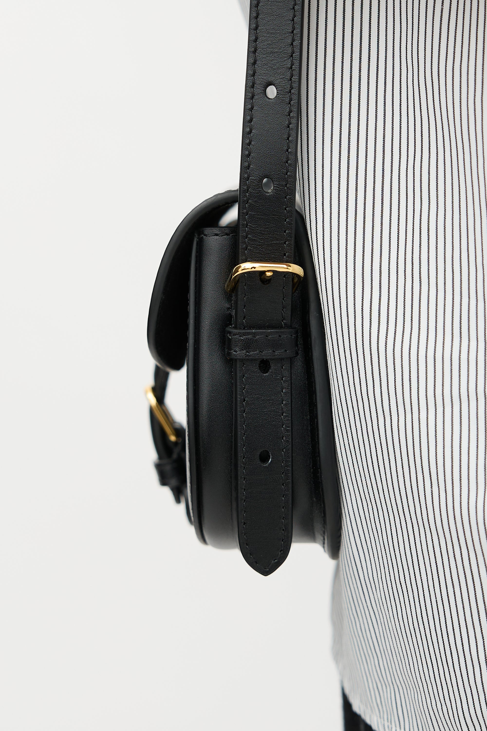 Pre-owned Dior black leather micro Bobby crossbody bag featuring gold tone hardware, front flap with CD logo embellishment, adjustable shoulder strap, magnetic closure, and one lined main compartment with one slip pocket. Comes with original dust bag and certificate of authenticity card. Authenticated by a third party - Certificate available upon request.