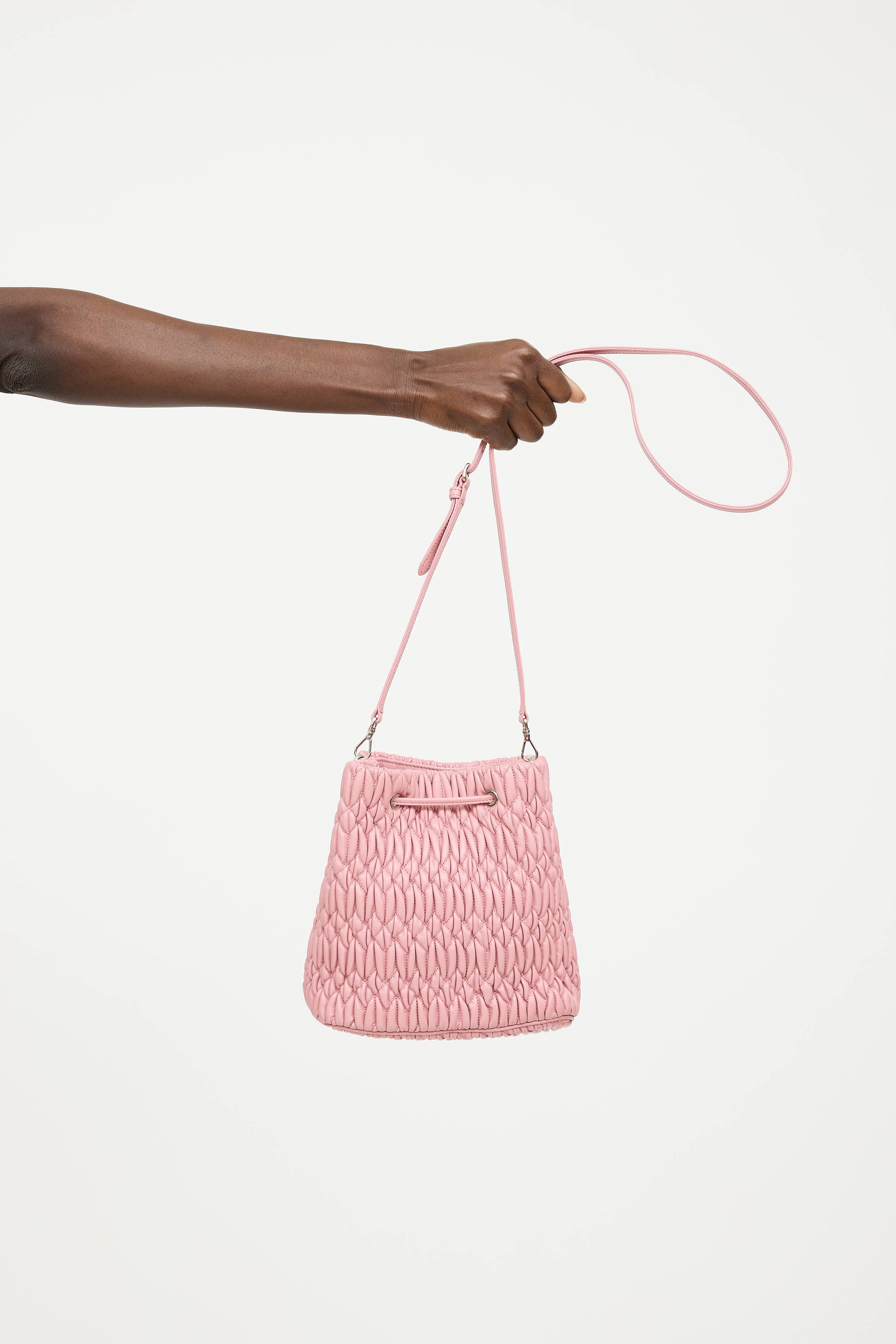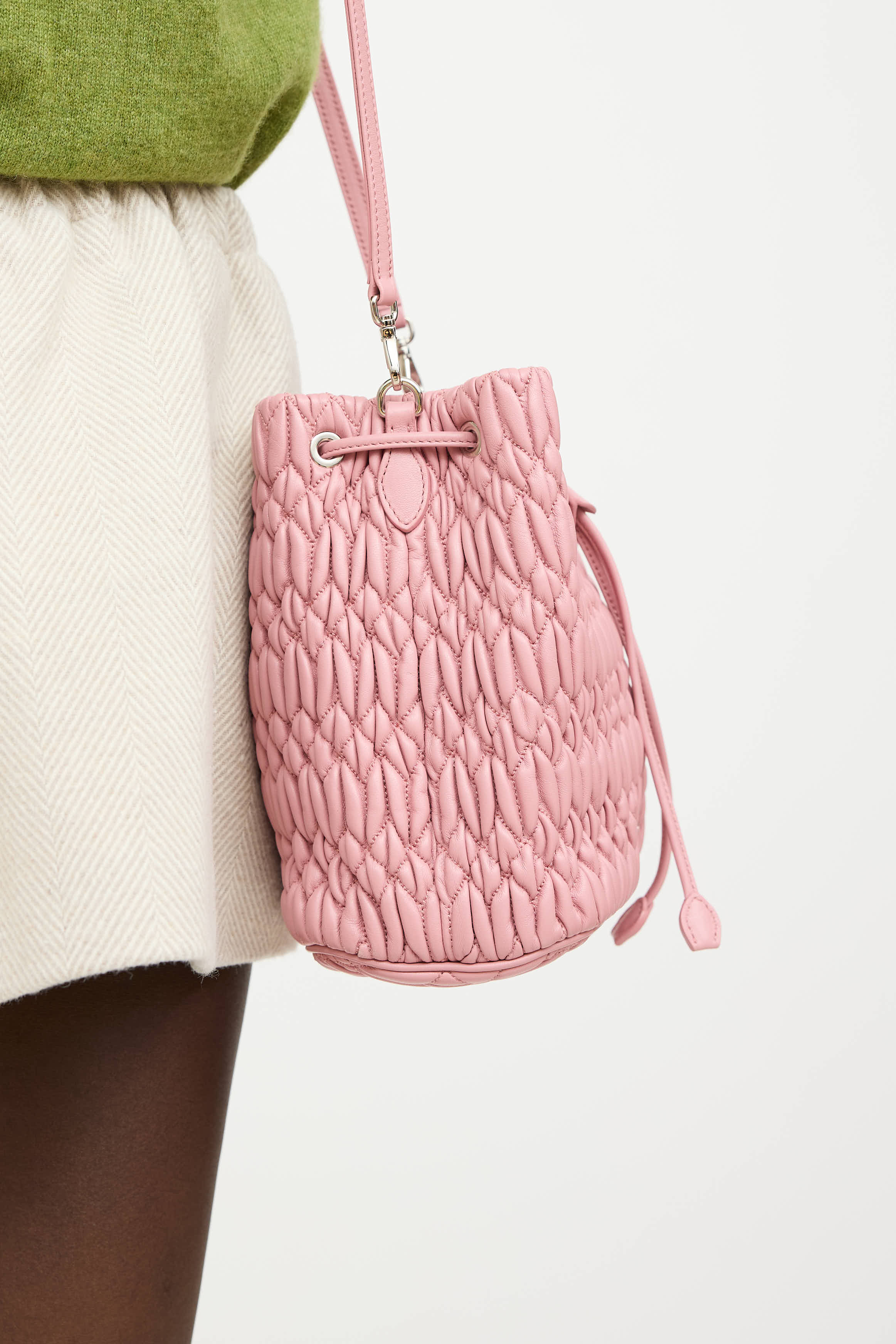 Miu Miu Matelasse Crystal Pleated Bucket Bag
