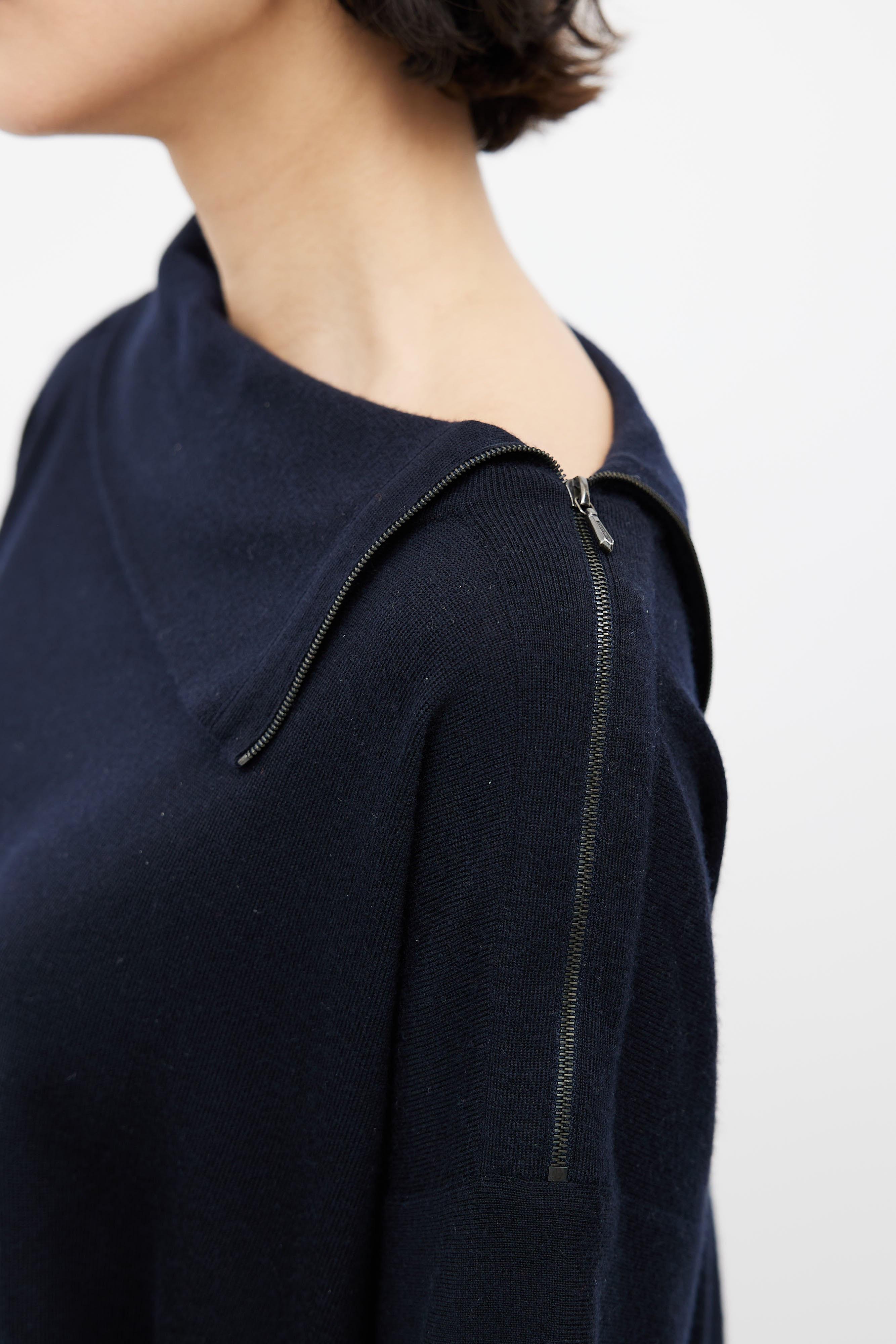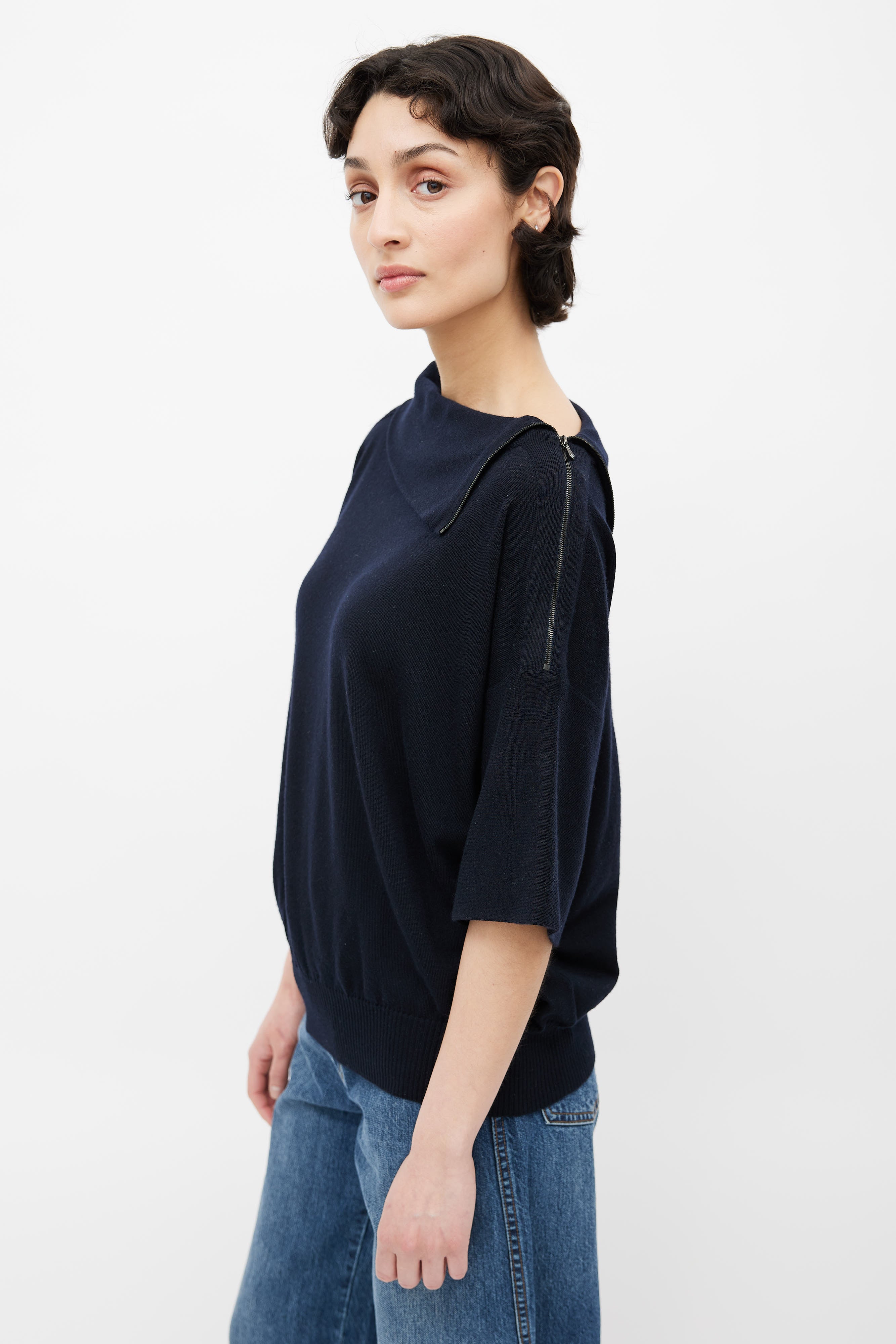 Black Cashmere Zip Short Sleeve Sweater FR 36 Size Guide