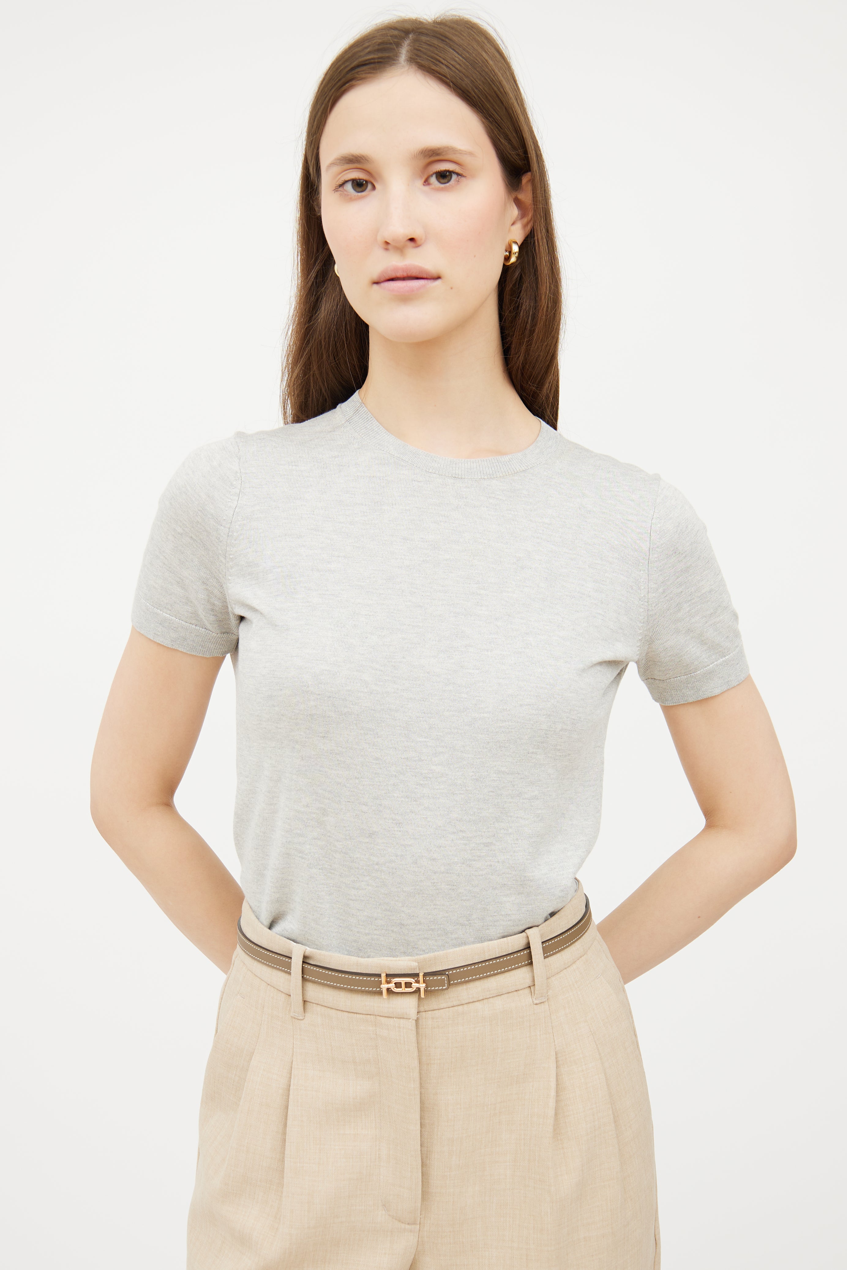Pre-owned Hermès reversible Ancre belt featuring one side made from Étoupe Epsom leather, one side blanc leather, contrast stitching on Étoupe side and removeable gold-plated metal Ancre buckle.