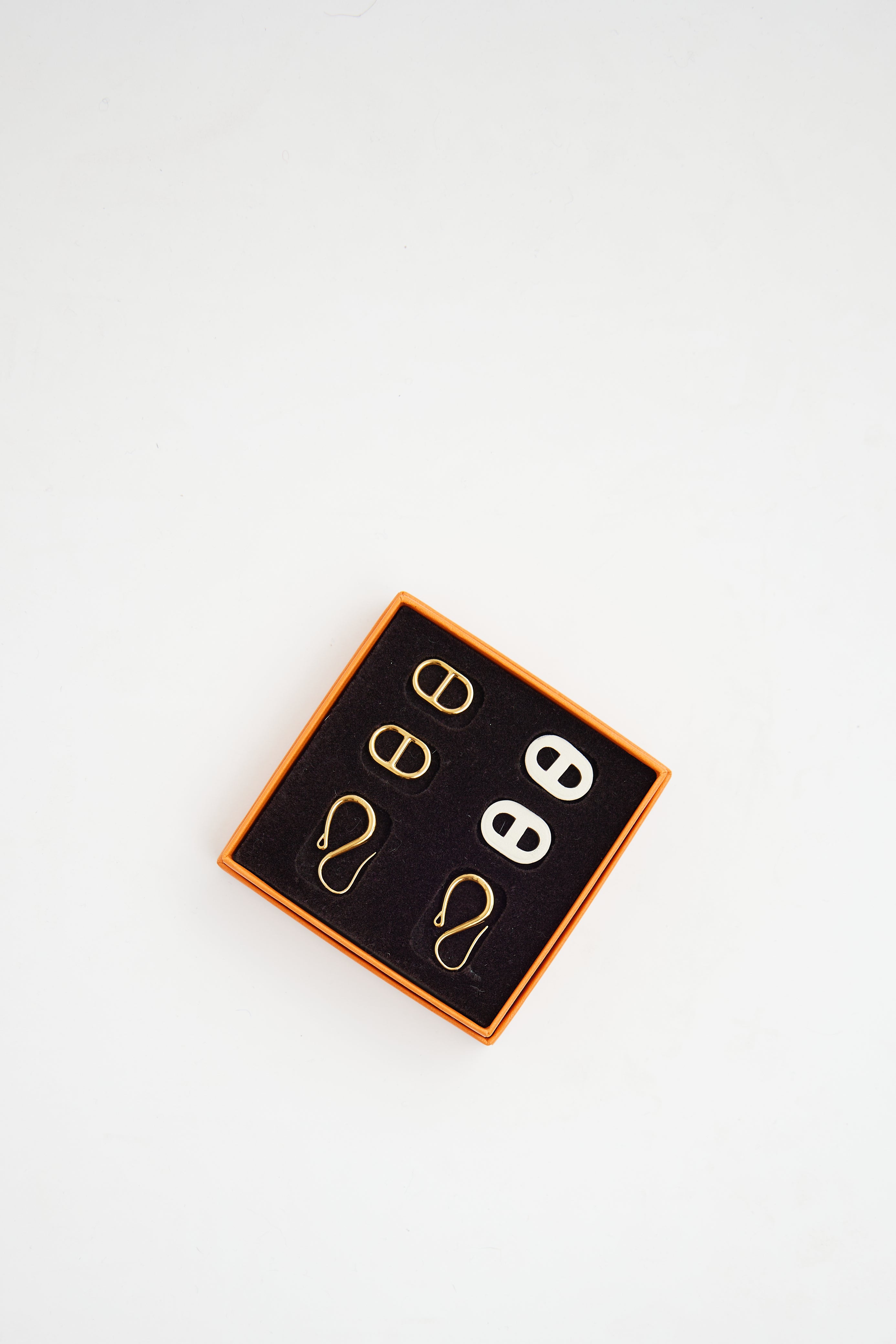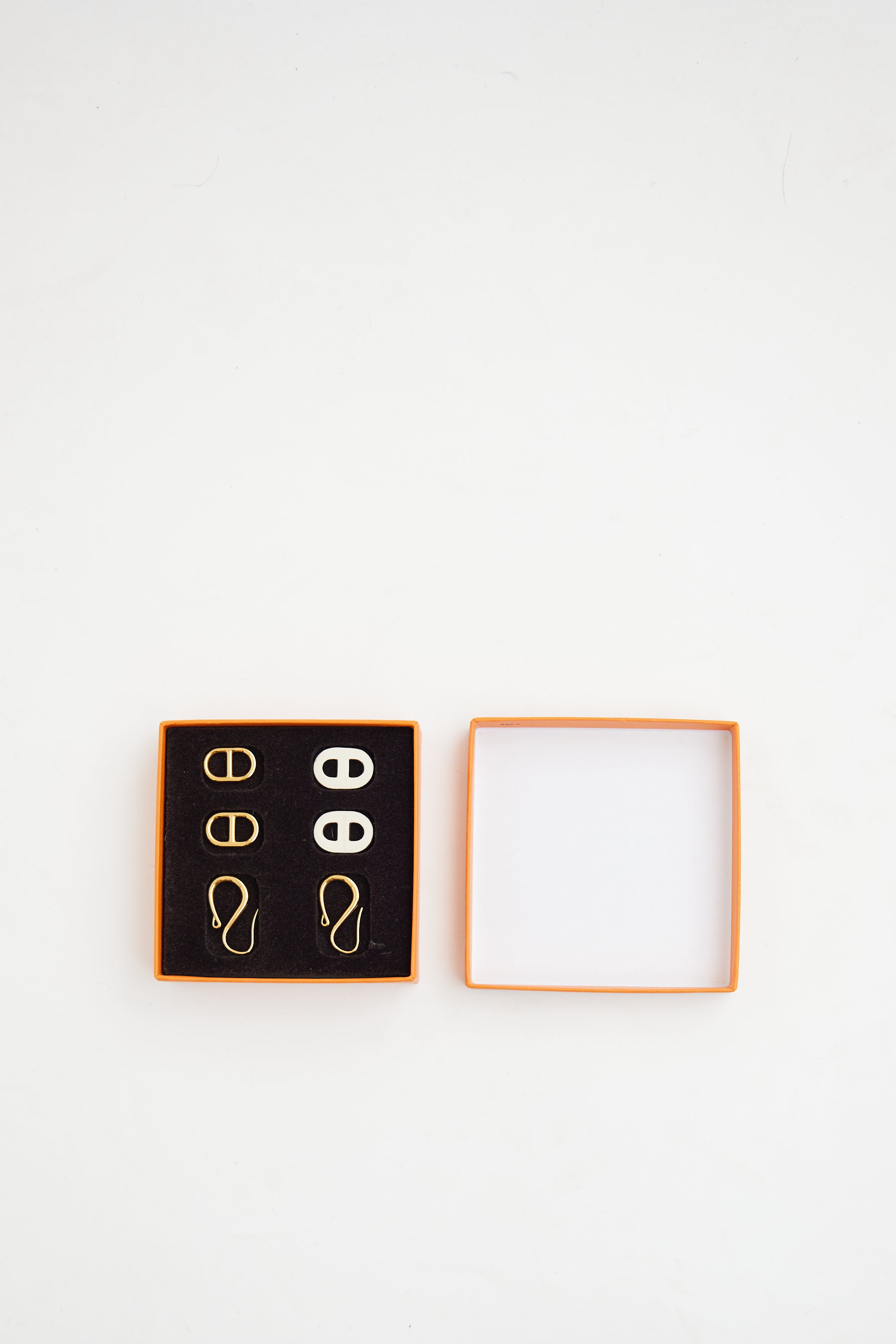 Pre-owned Hermès O'Maillon drop earrings featuring gold plated metal with metal 'Chaine d'Ancre' charms and white swift leather shadow charms.
