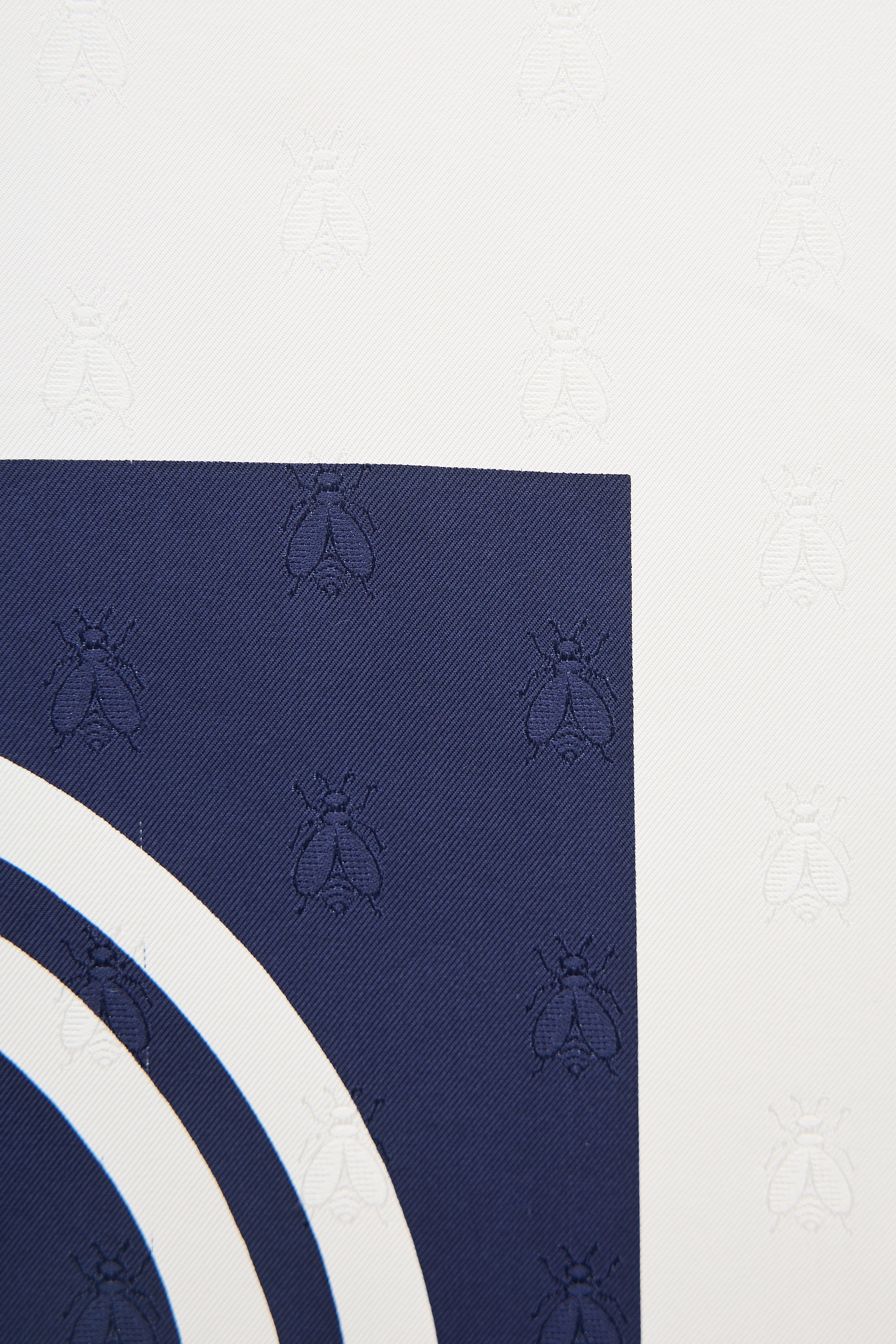 Pre-owned Hermès navy and white silk 90 scarf featuring Brides de Gala print by Hugo Grygkar, bee jacquard pattern and bridle motif, and hand rolled edges.