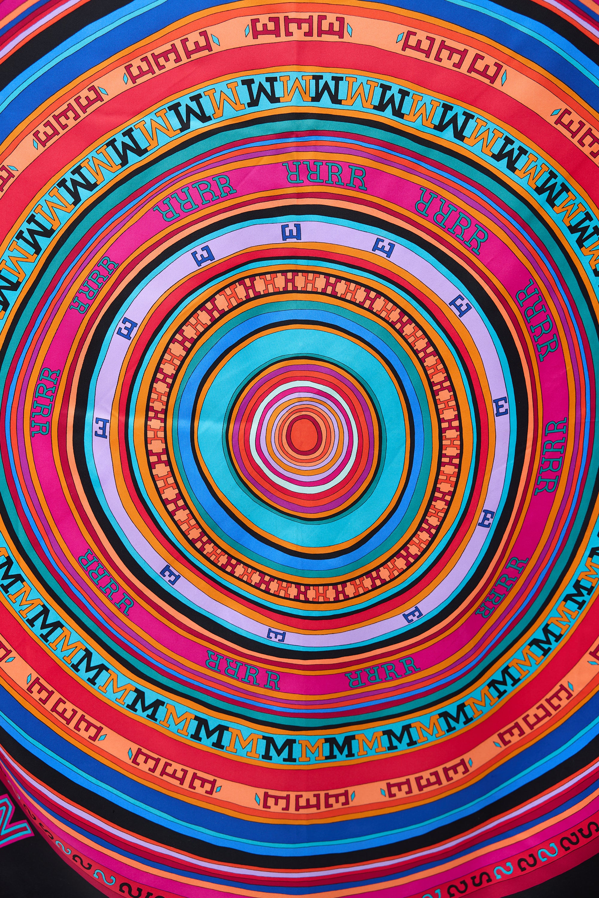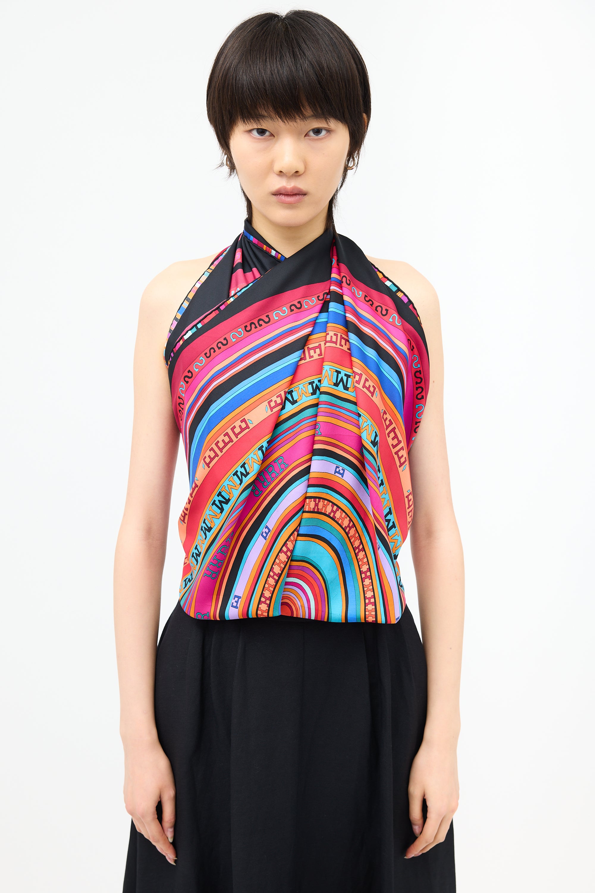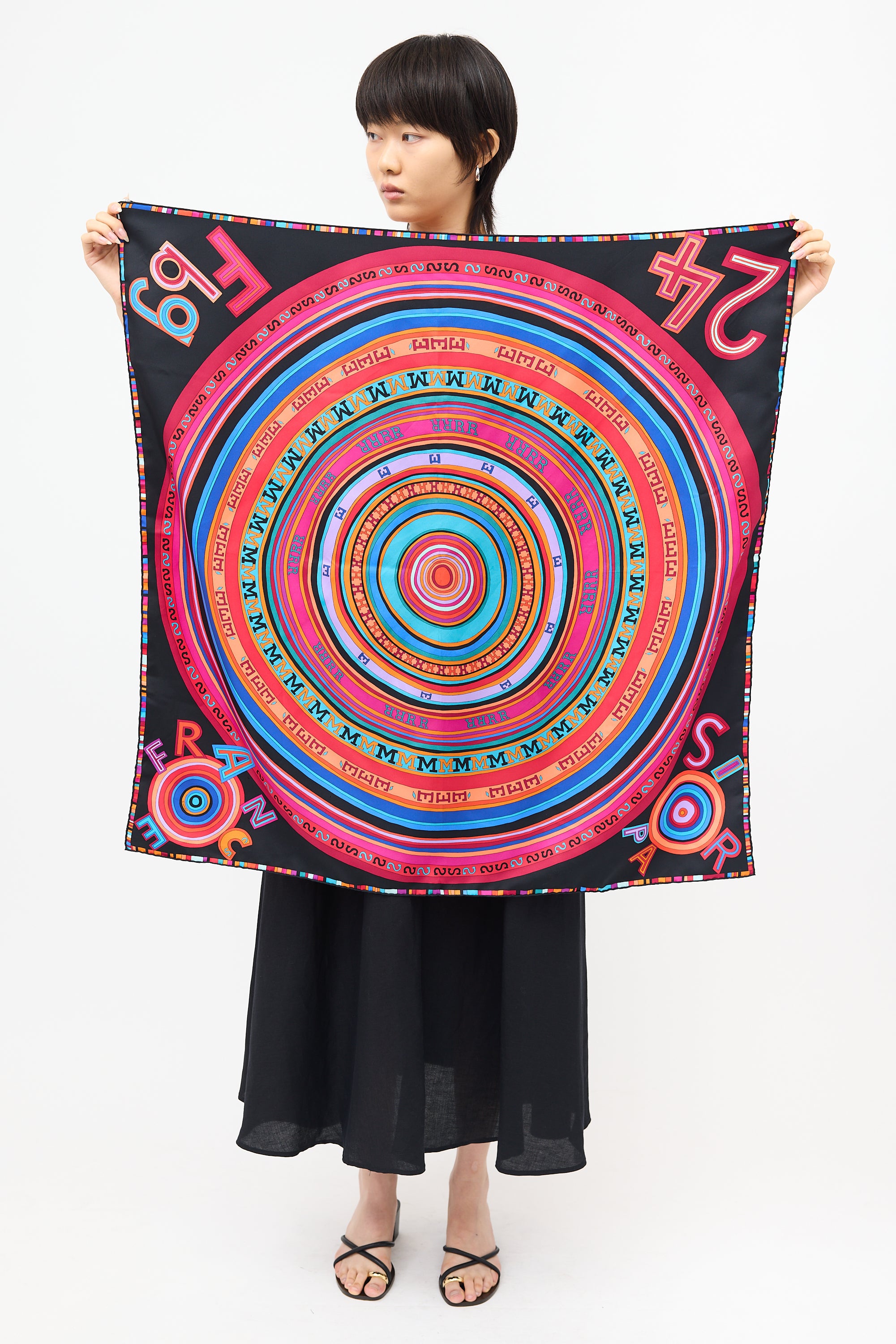 Pre-owned Hermès multicolour silk scarf featuring Tohu Bohu print by Claudia Stuhlhofer-Mayr, printed logo at corner, and hand rolled edges. Comes with original box.