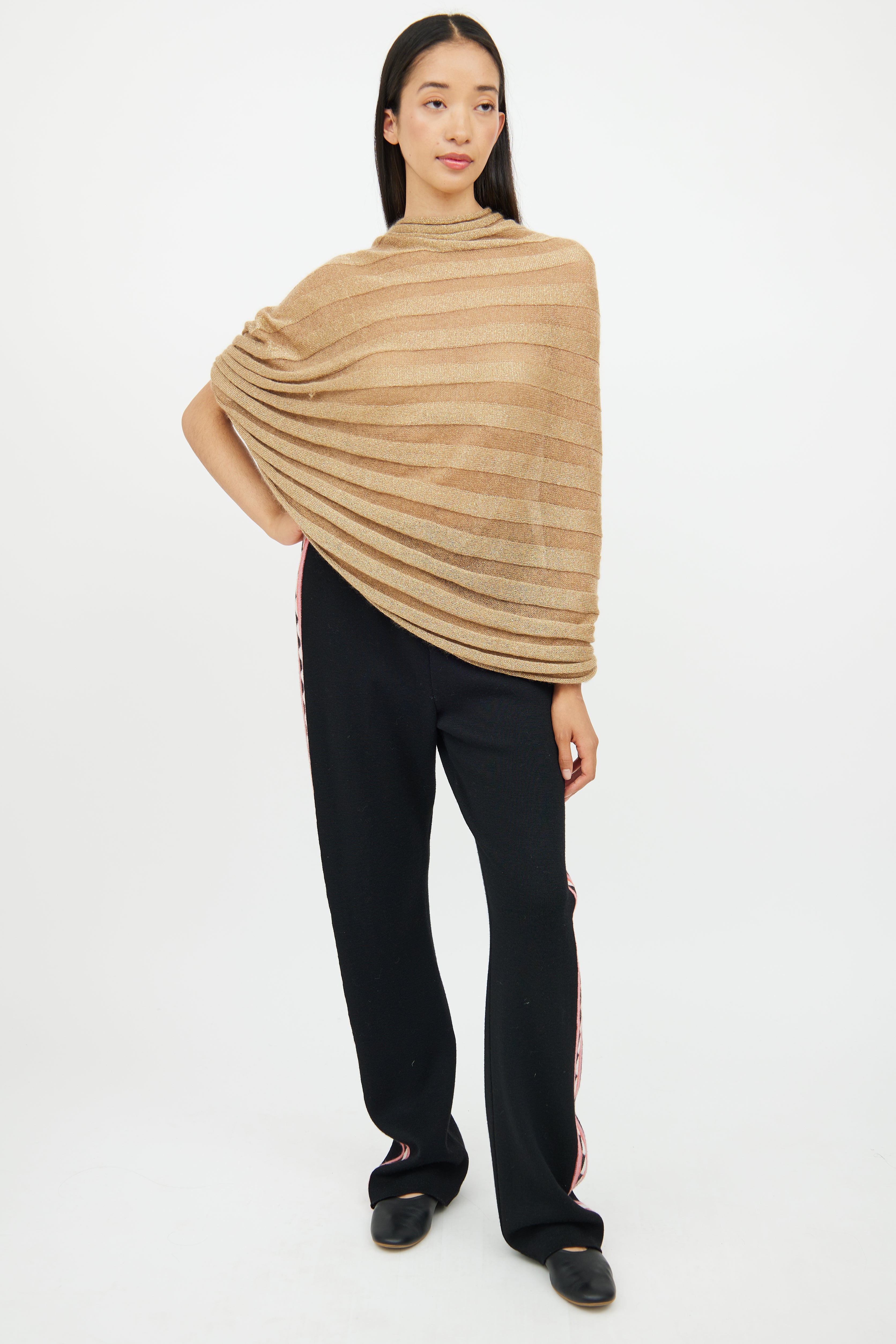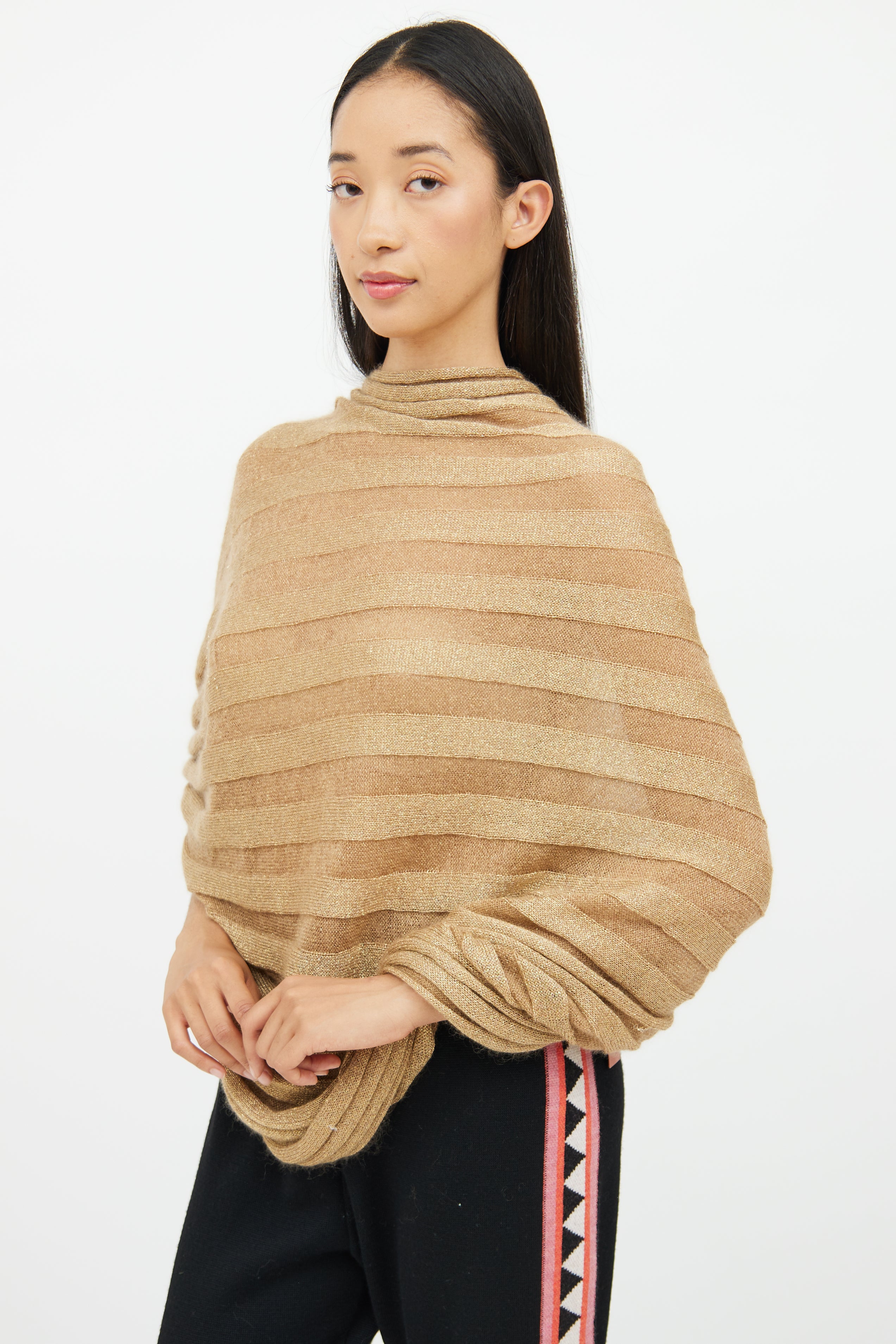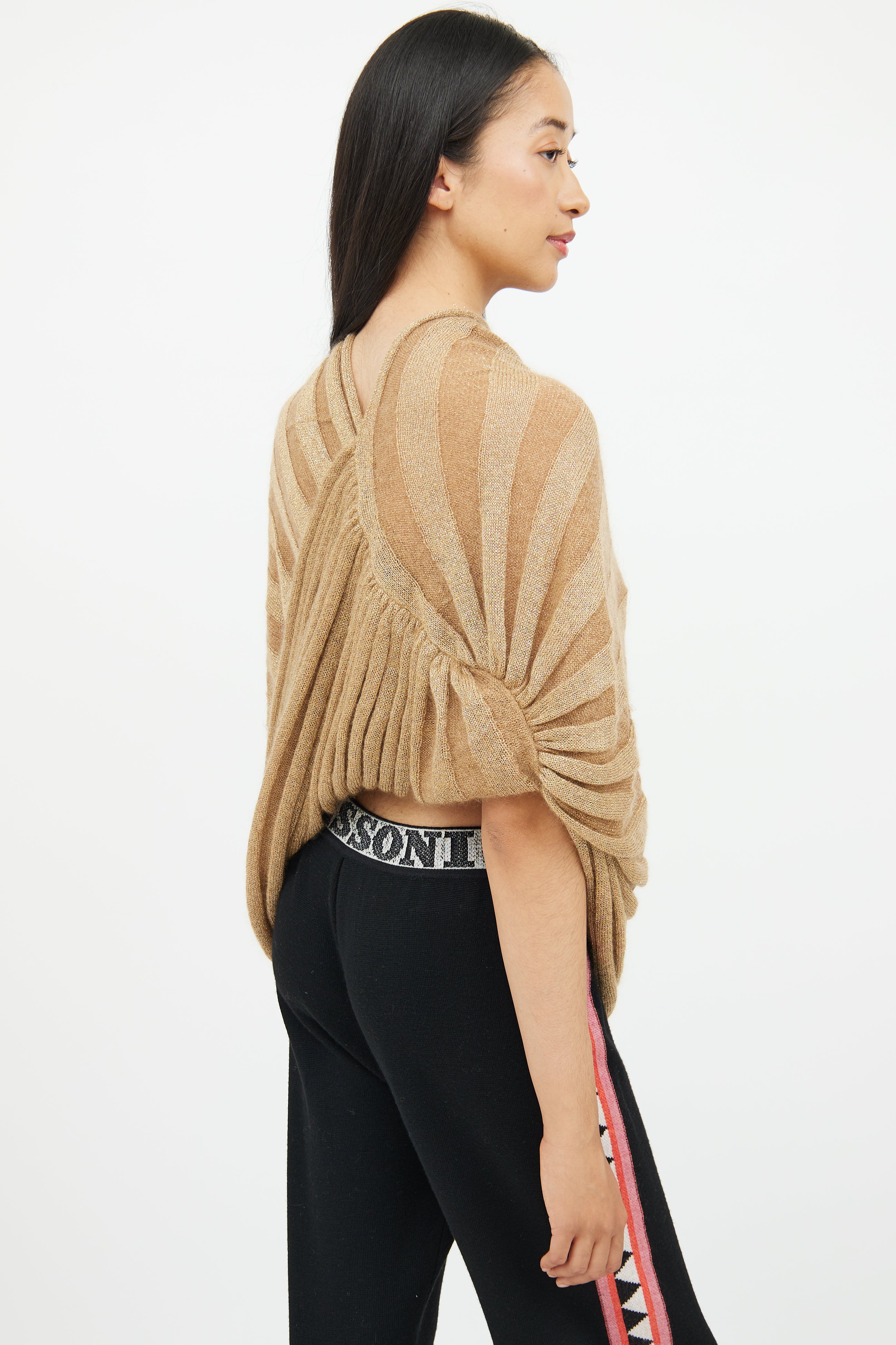 Pre-owned Missoni gold knit striped shrug featuring shimmer finish and gathering at back.