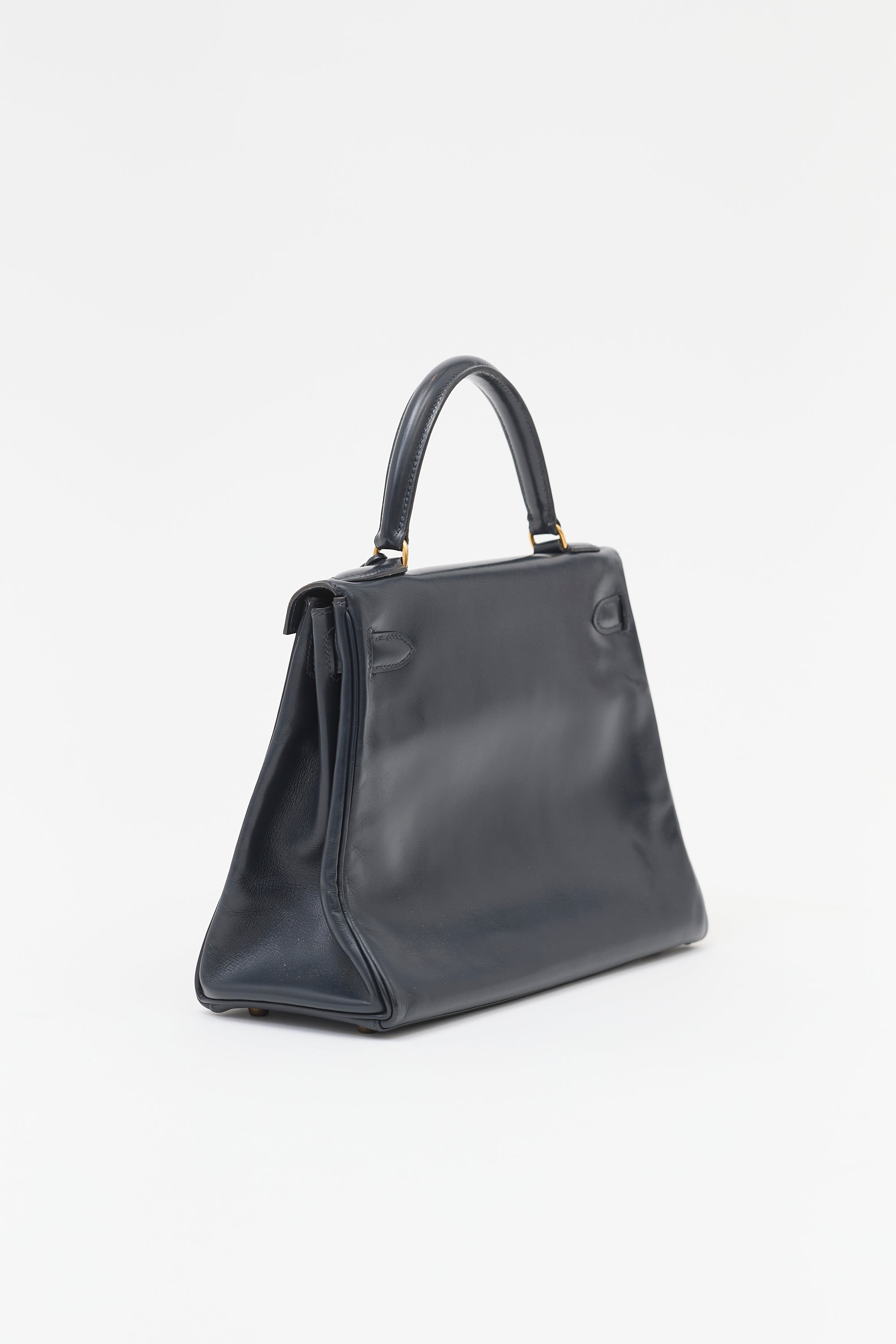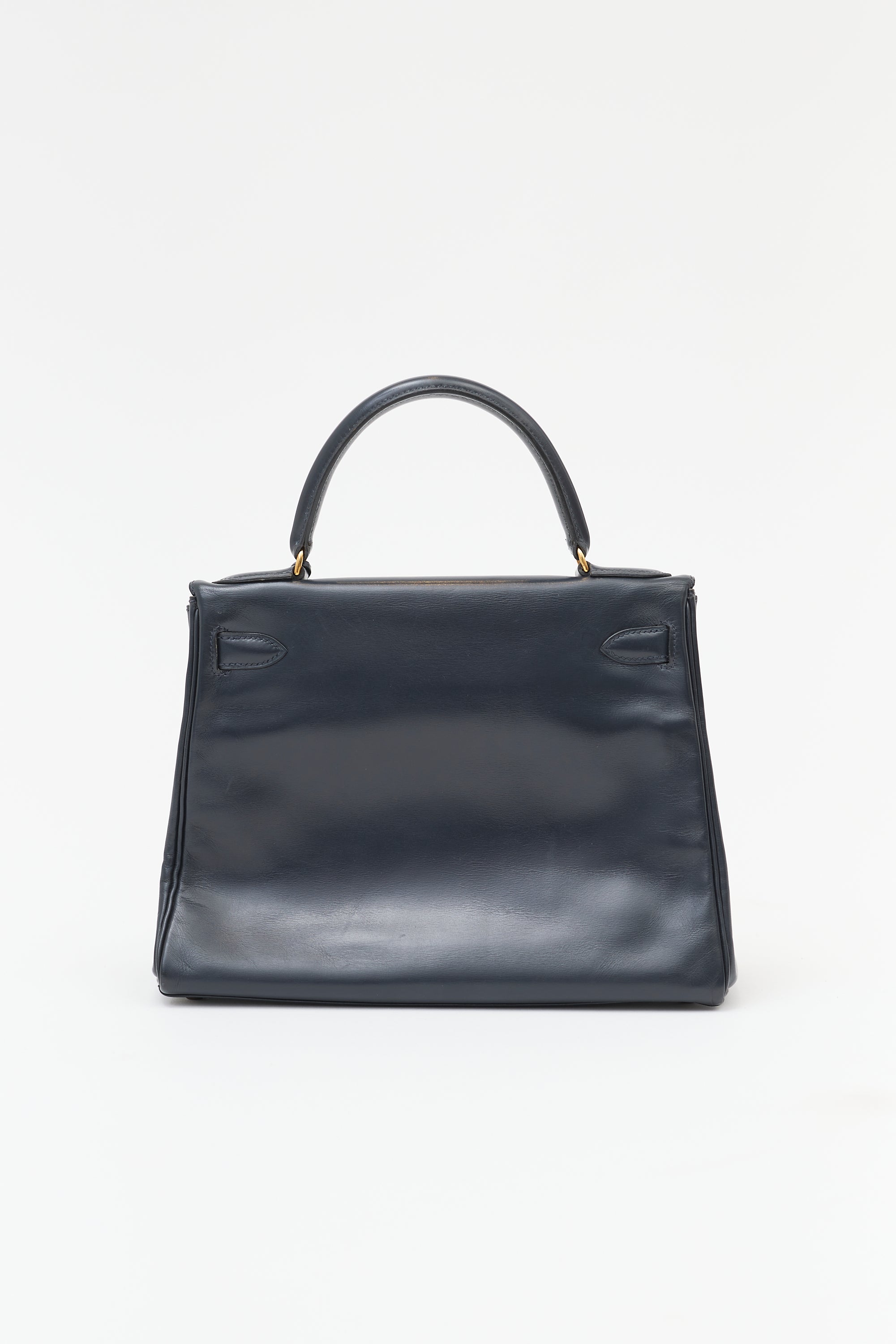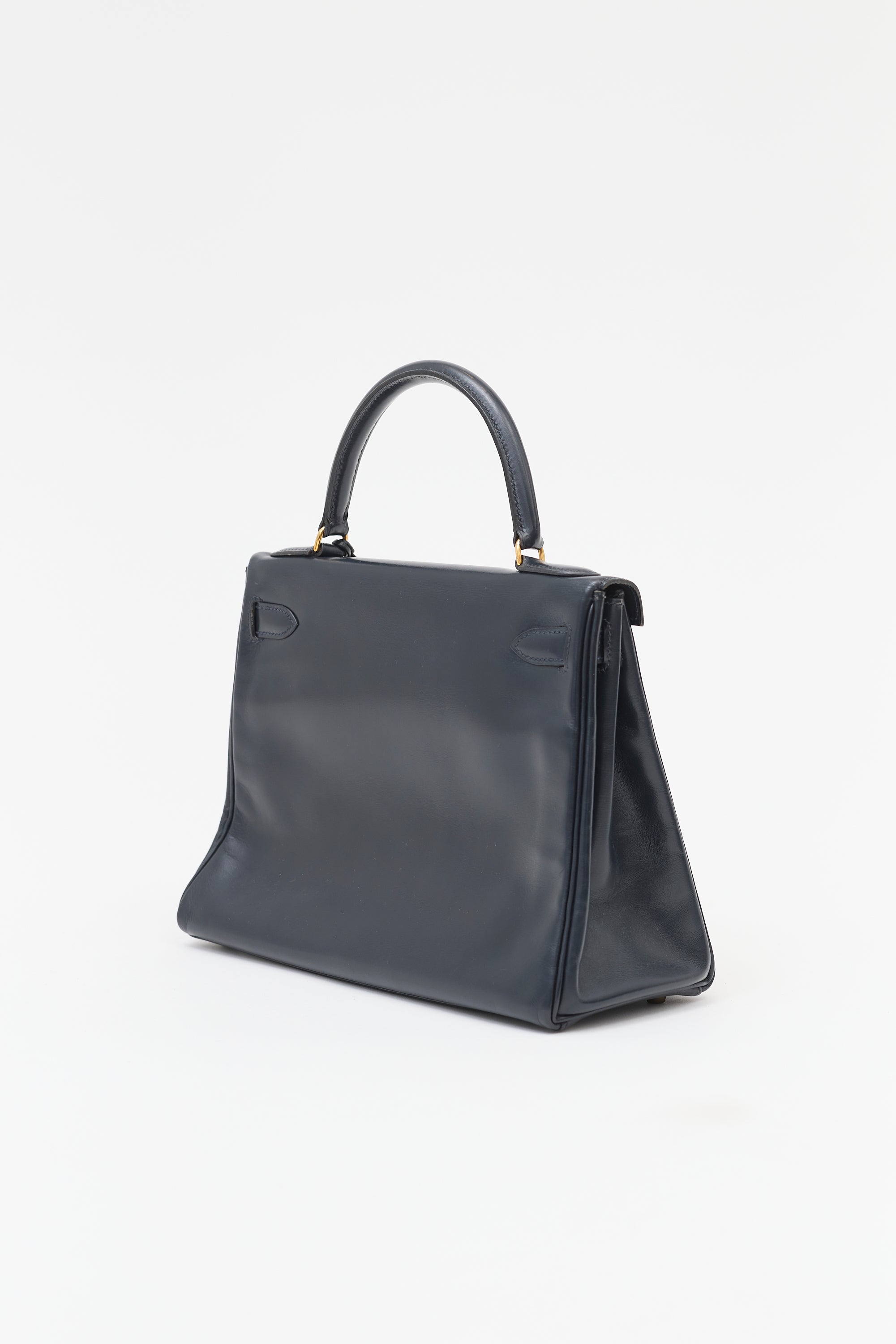 Hermès Vintage Navy Box Kelly Retourne 28 Bag