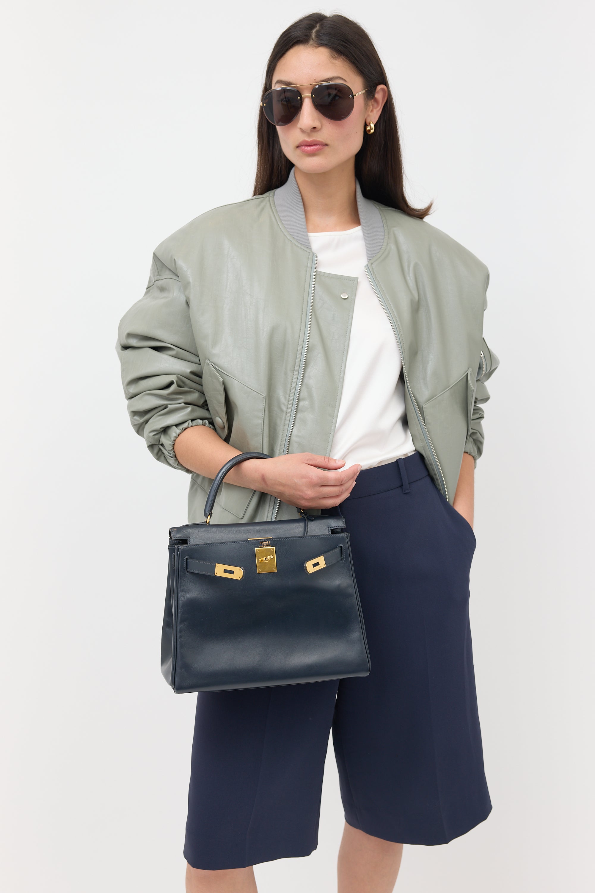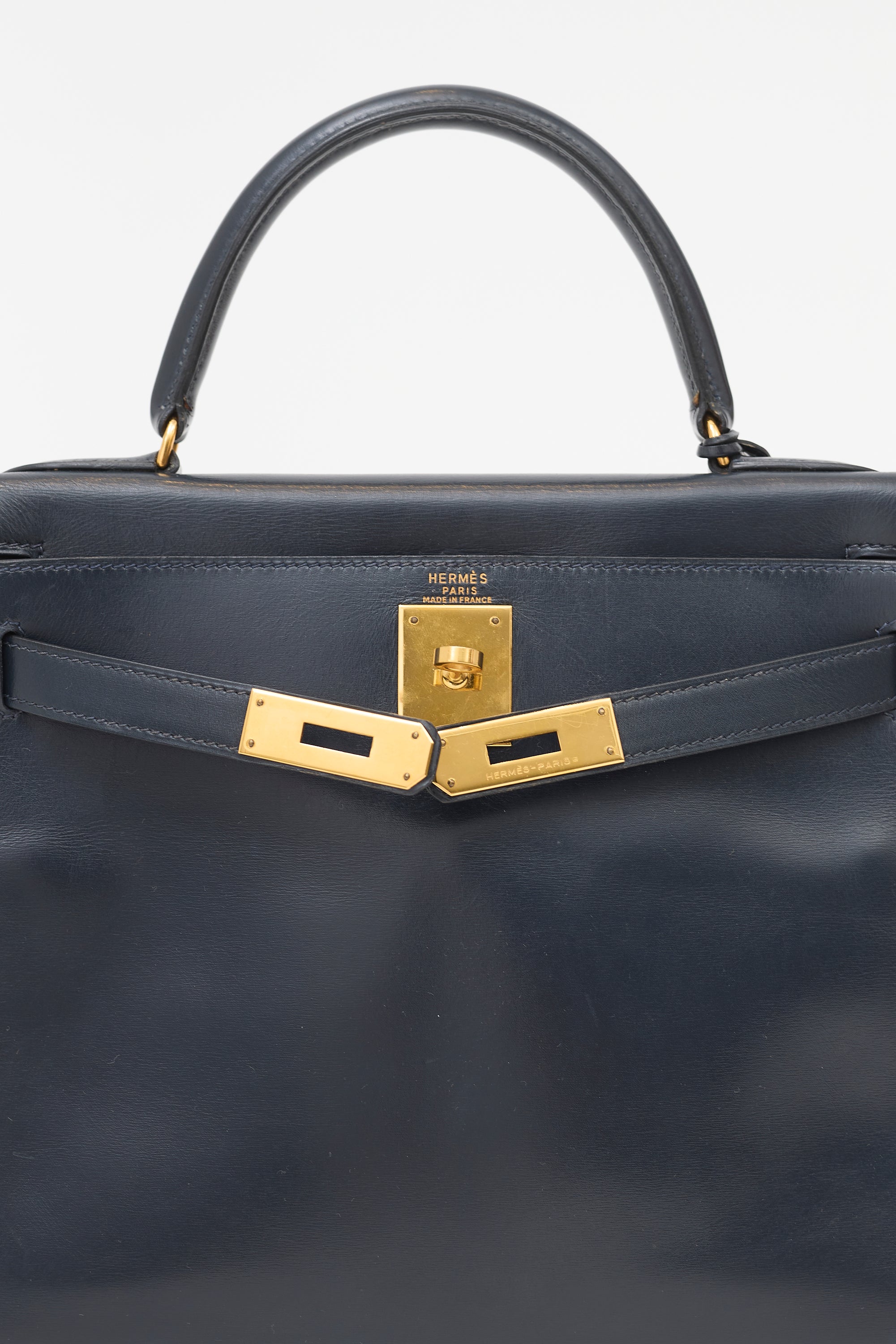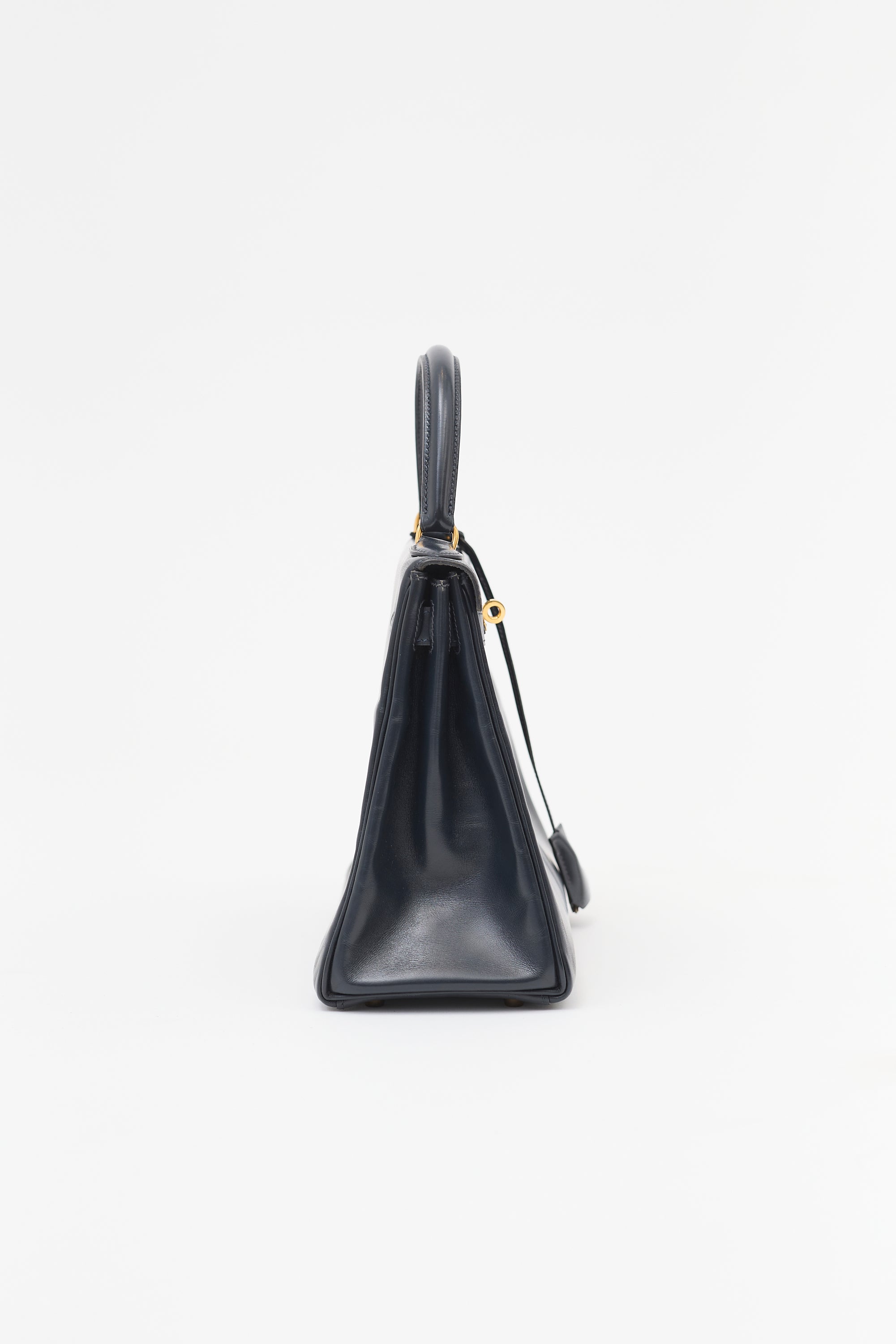 Hermès Vintage Navy Box Kelly Retourne 28 Bag