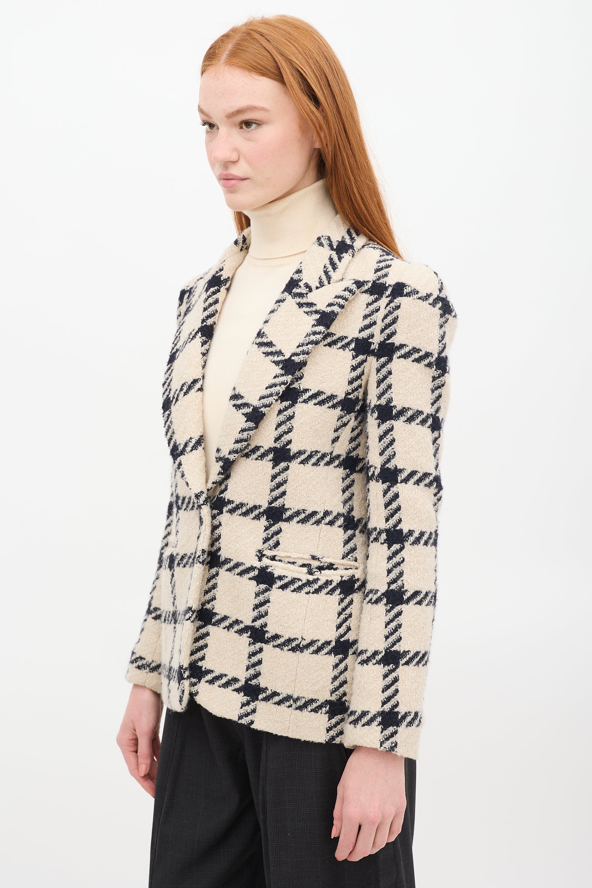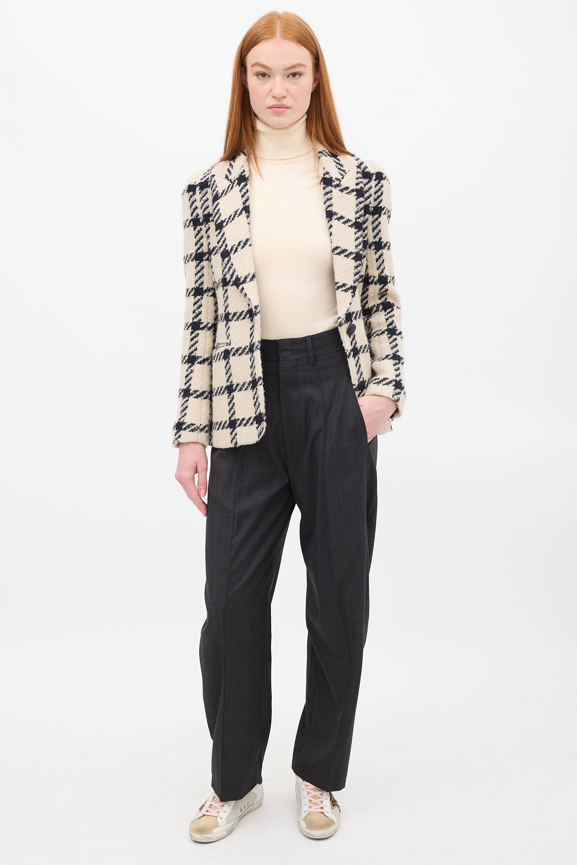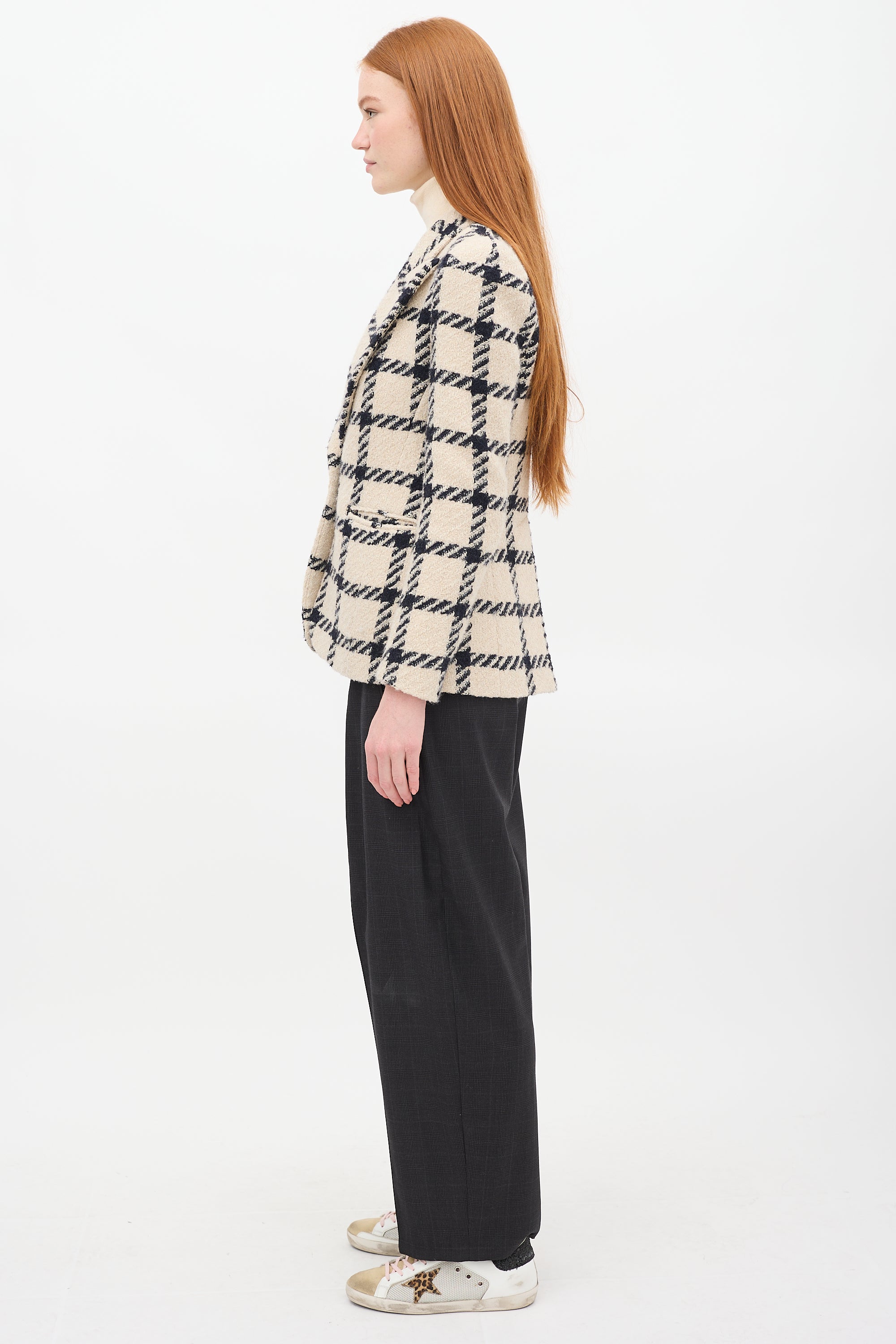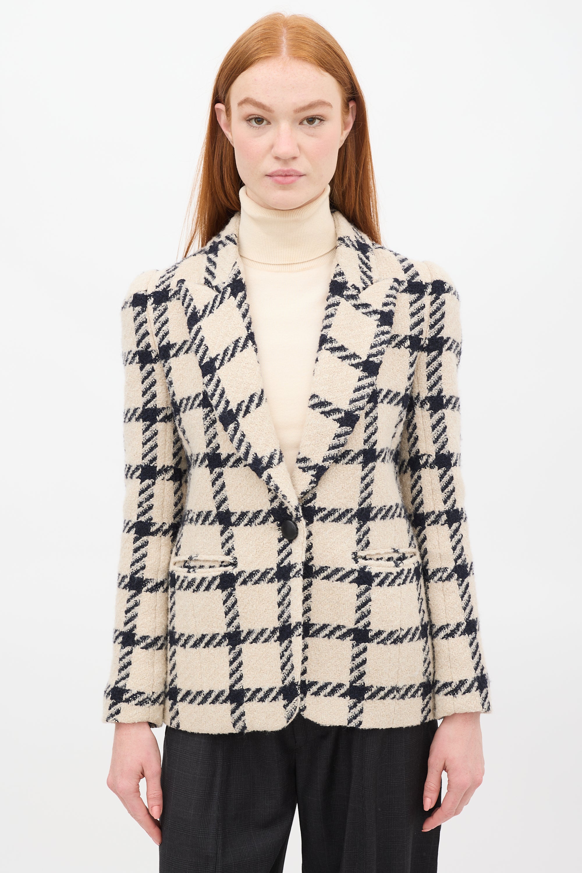 Beige & Black Wool Kioa Checkered Blazer FR 36 Size Guide