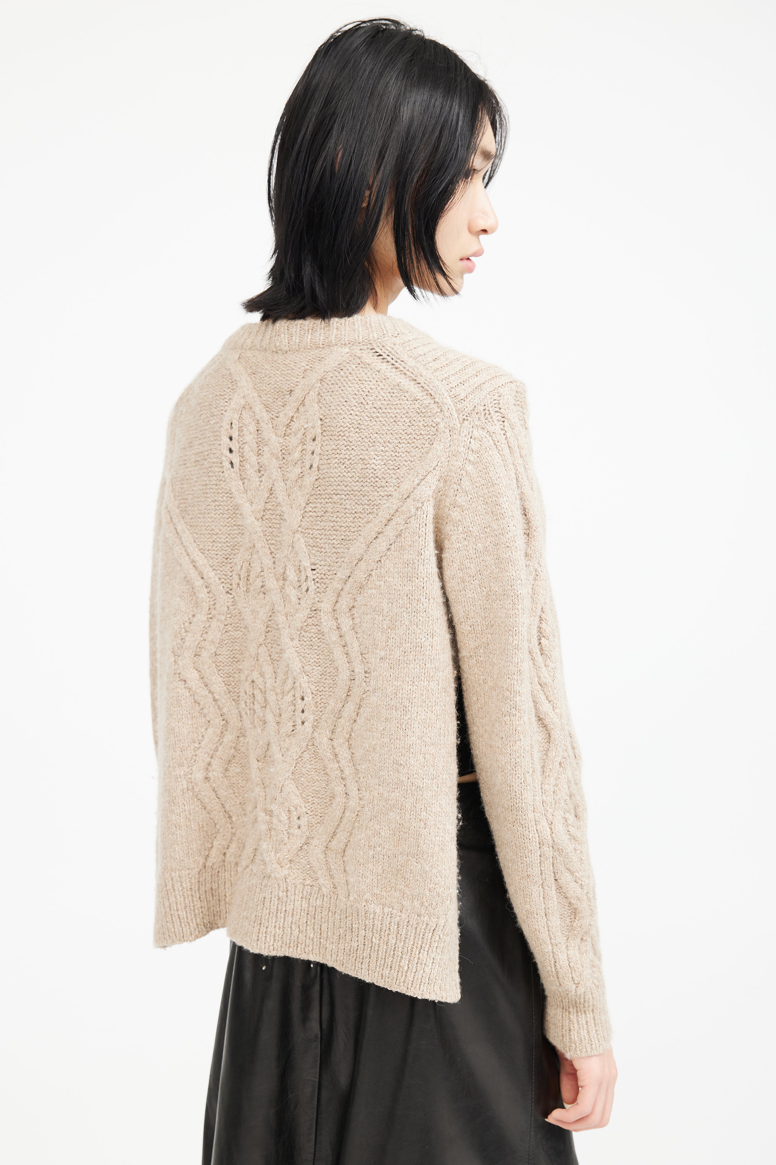 Pre-owned Isabel Marant brown alpaca knit sweater featuring a cableknit weave, long sleeves, and slits at hem.