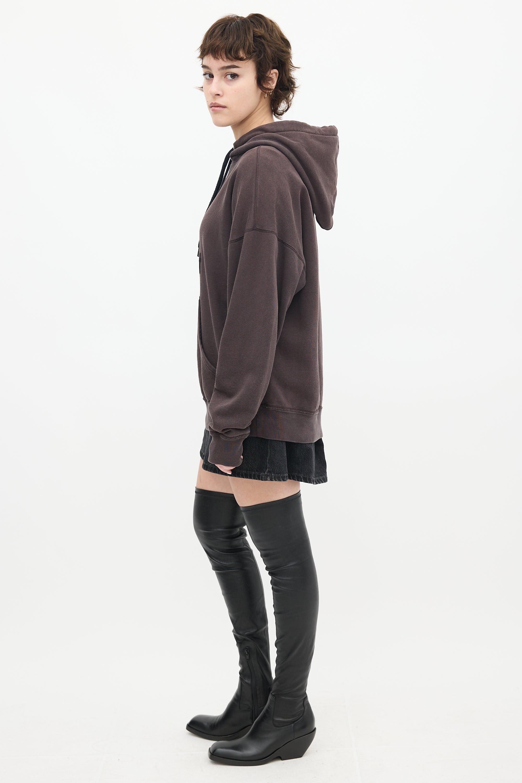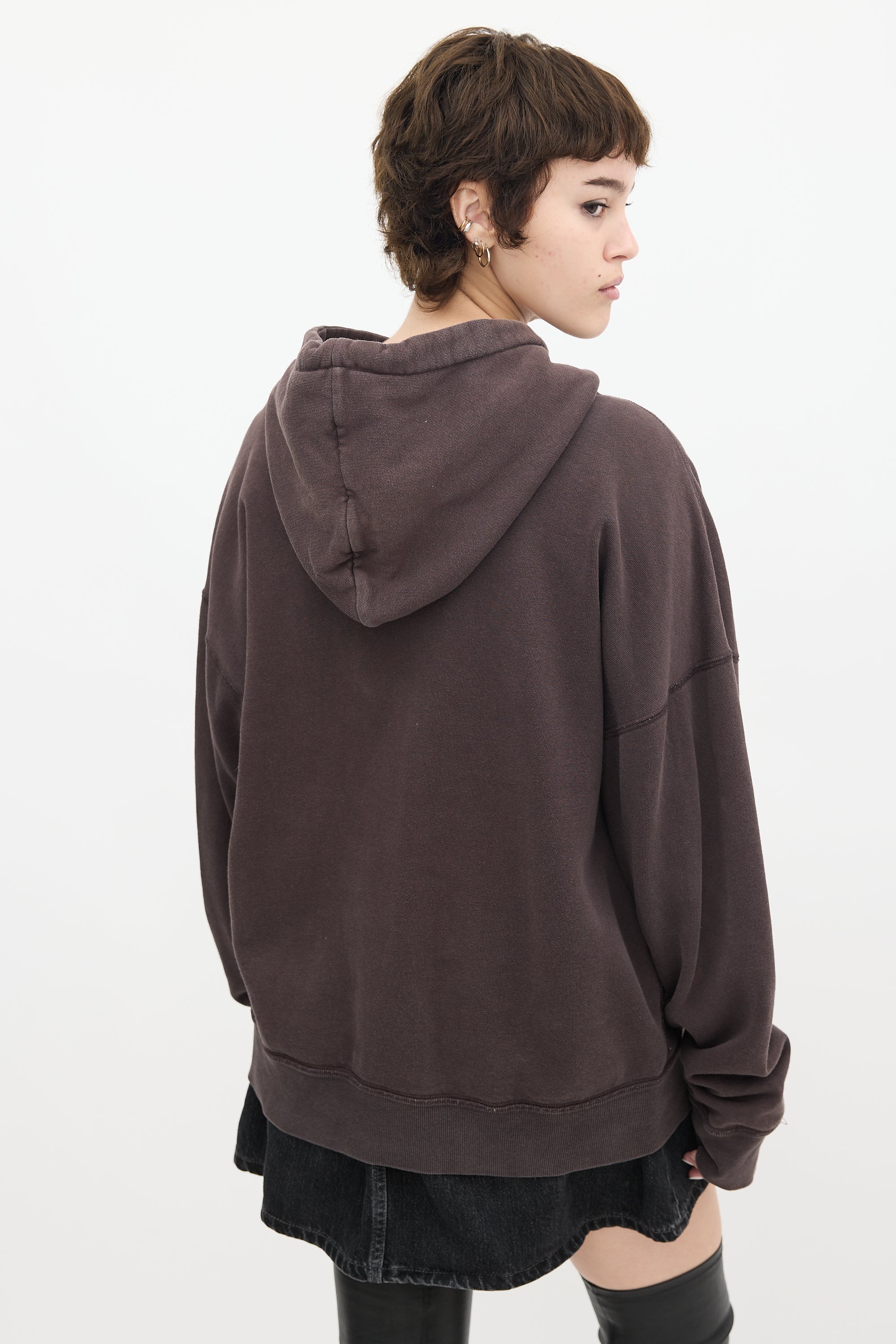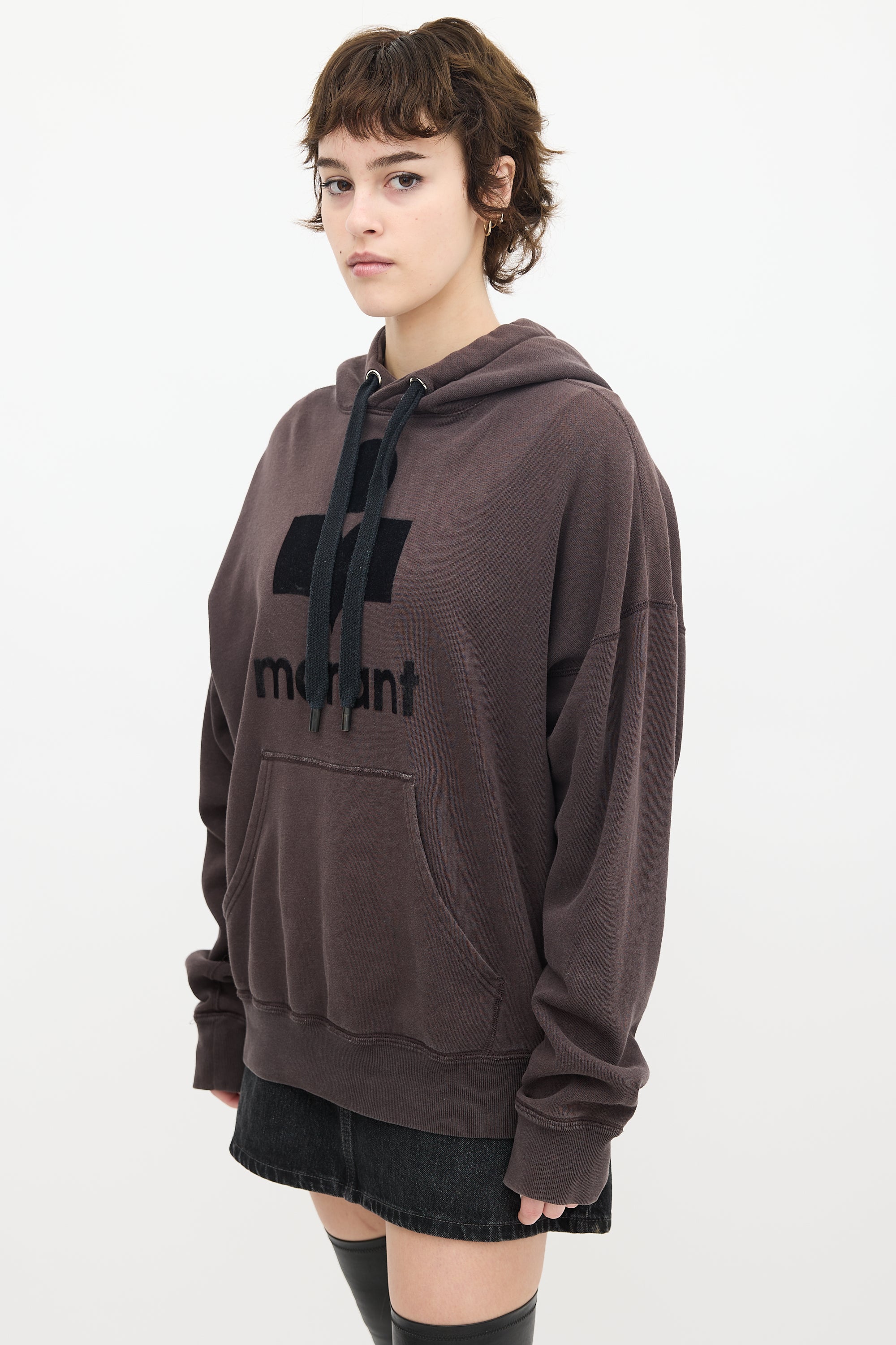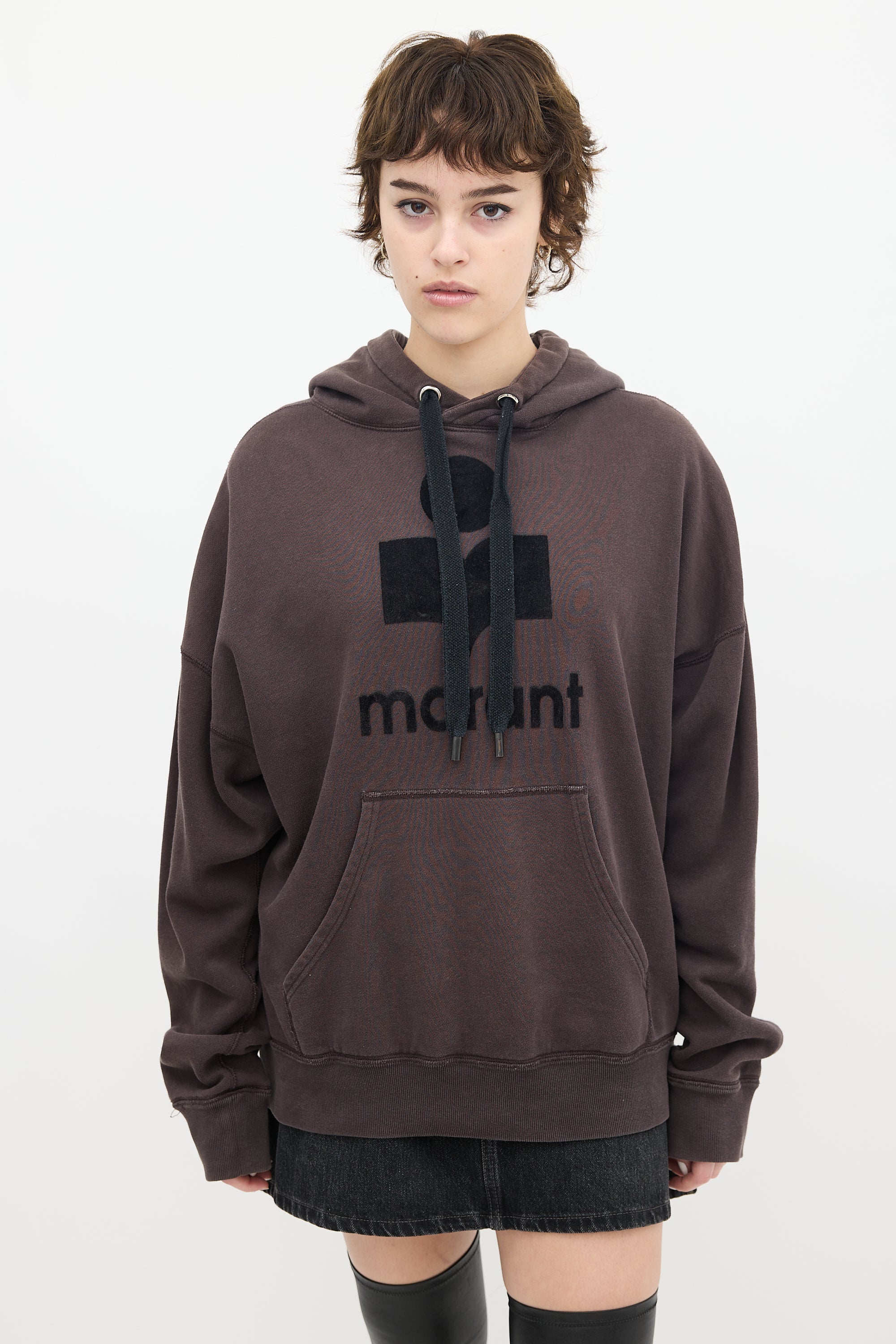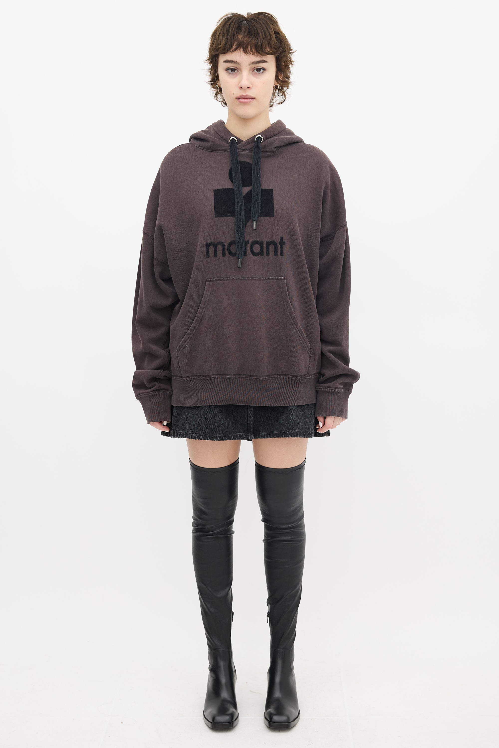 Pre-owned Isabel Marant Étoile dark grey Mansel hoodie featuring a drawstring hood, black printed logo front, single front kangaroo pocket, even hem, dropped shoulders, long sleeves, and ribbing at hem and cuffs.