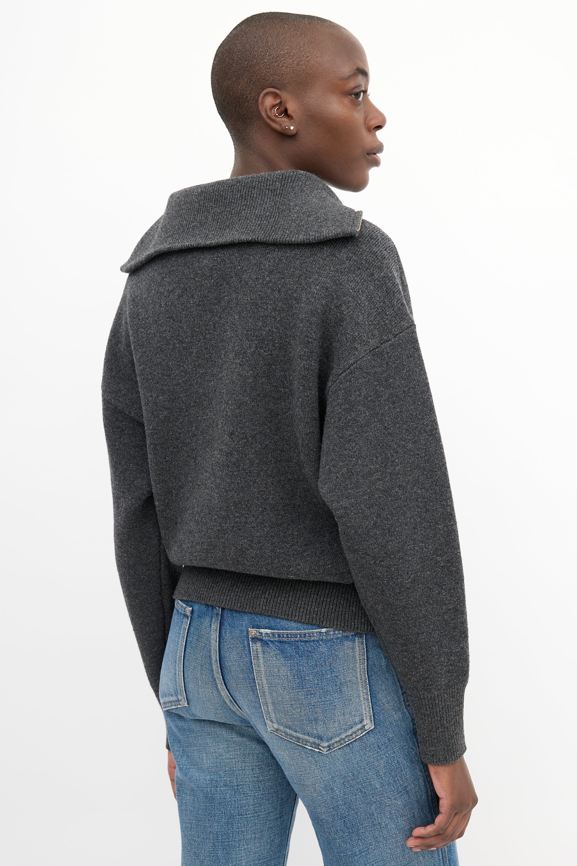 Pre-owned Isabel Marant Étoile dark grey wool knit sweater featuring funnel neck collar, quarter zip up front, and ribbed collar, cuffs and hem.