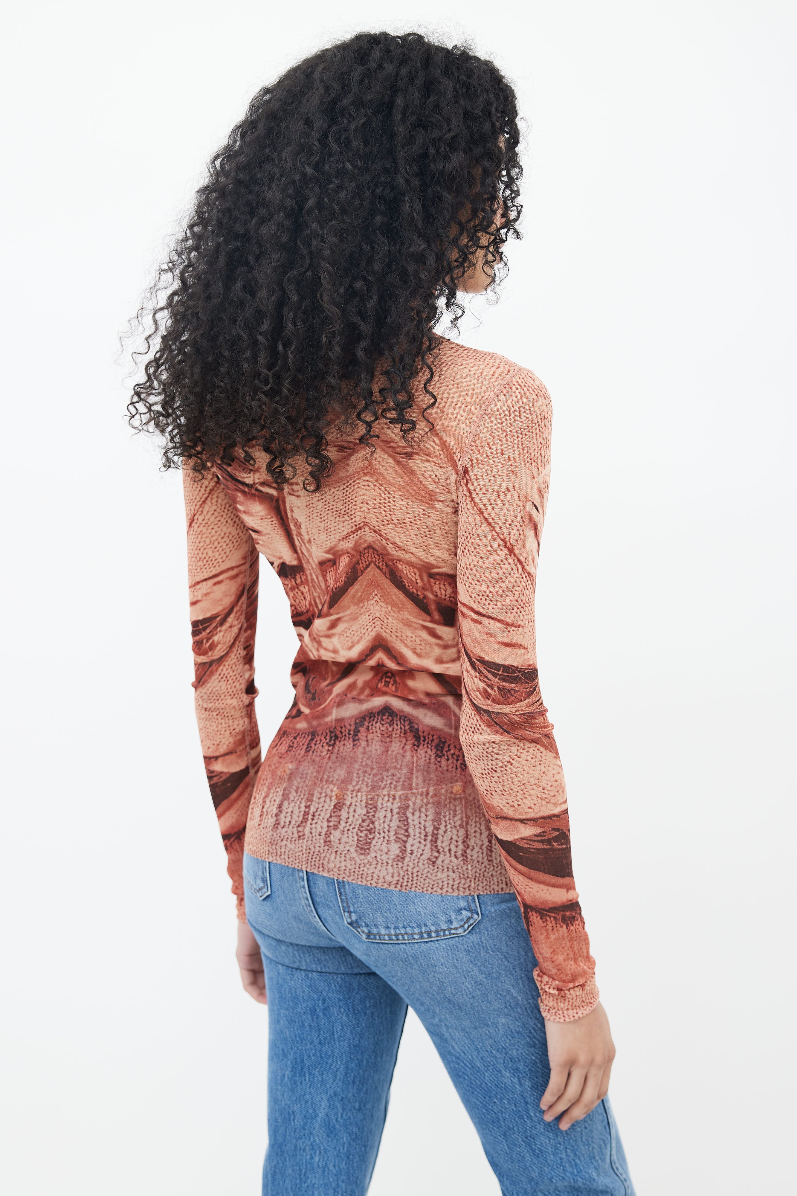 1999 Brown Sweater Trompe L'oeil Print Mesh Top Small Size Guide