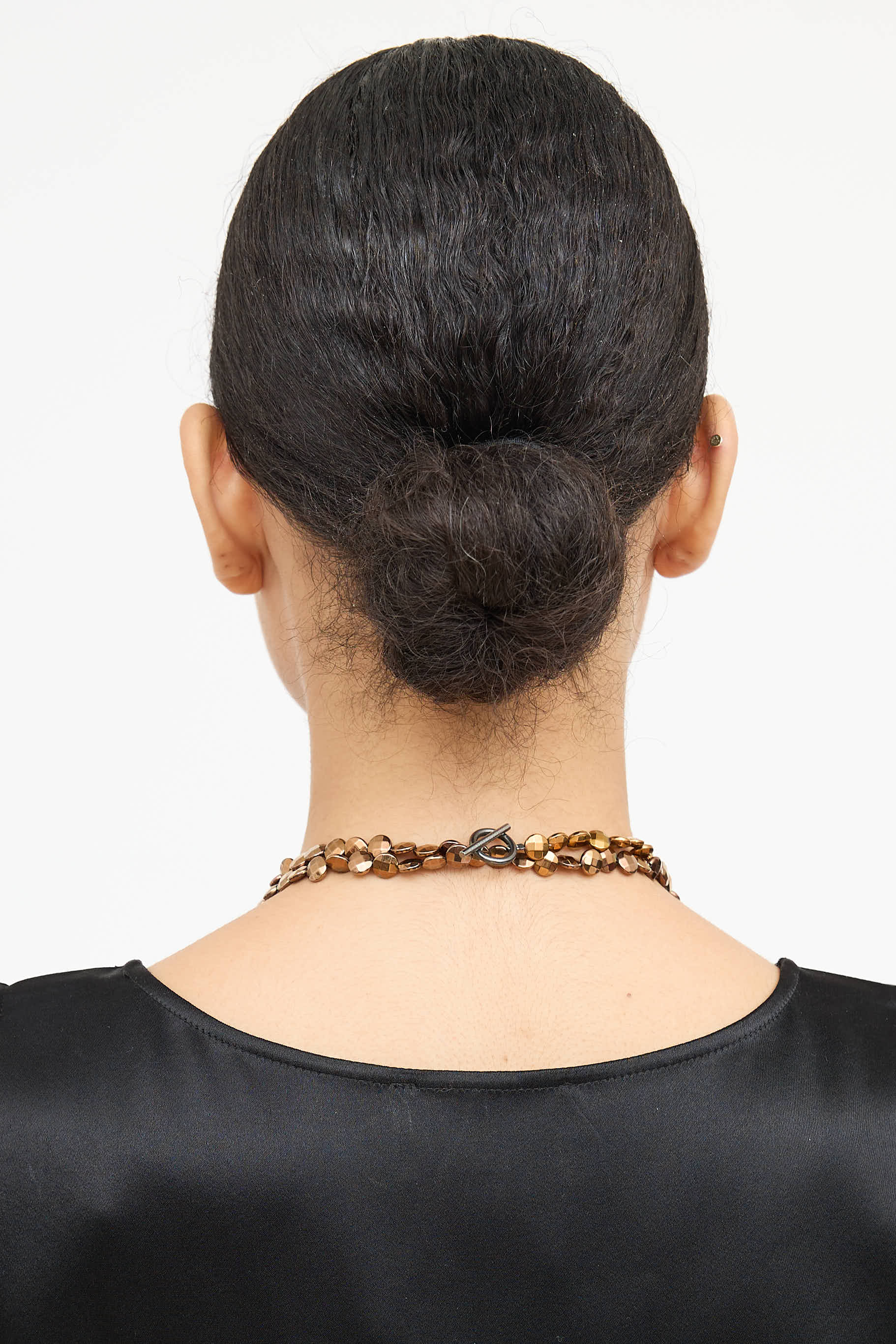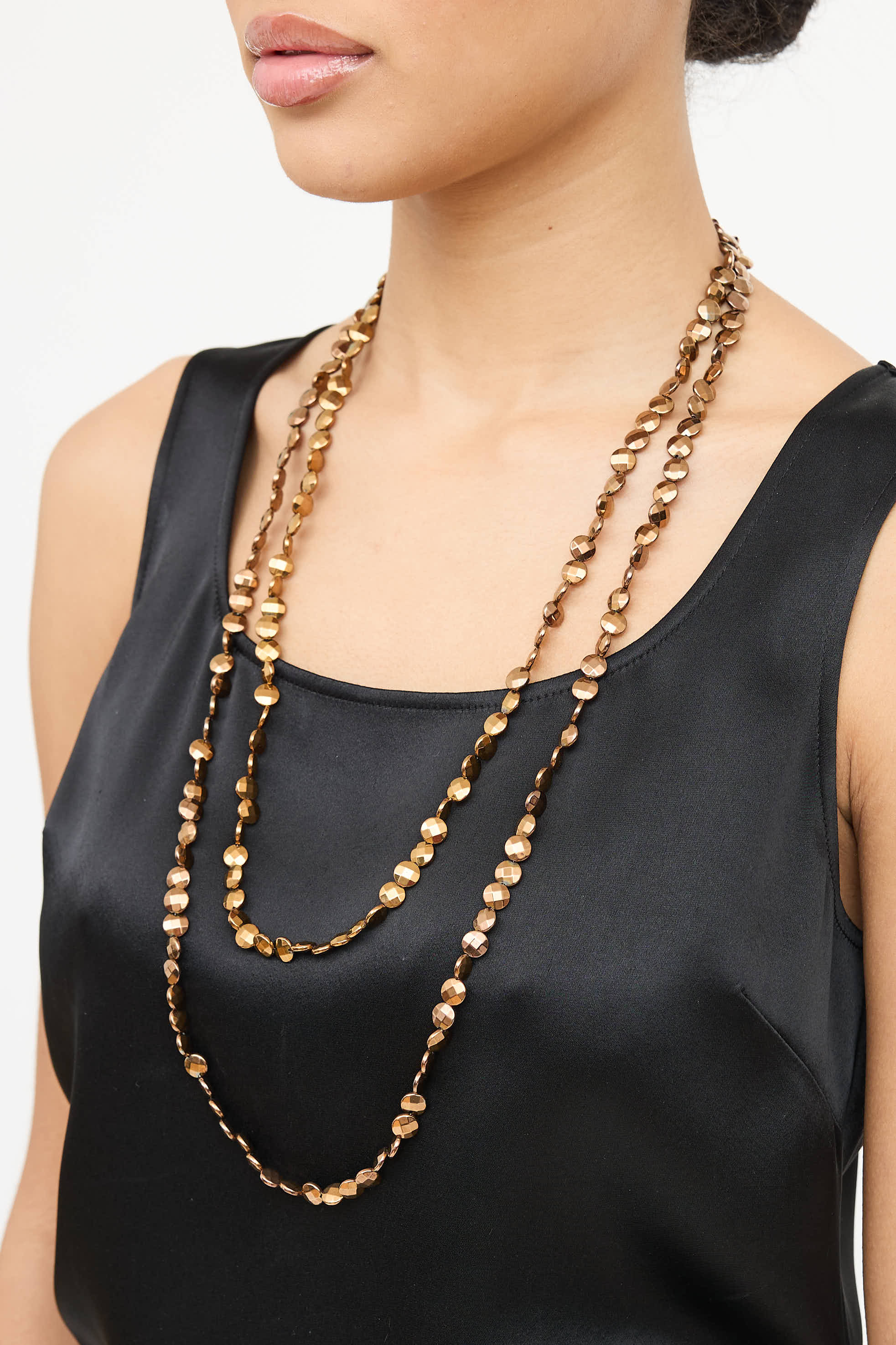 Pre-owned Brunello Cucinelli bronze beaded necklace featuring round flat faceted beads and toggle closure.