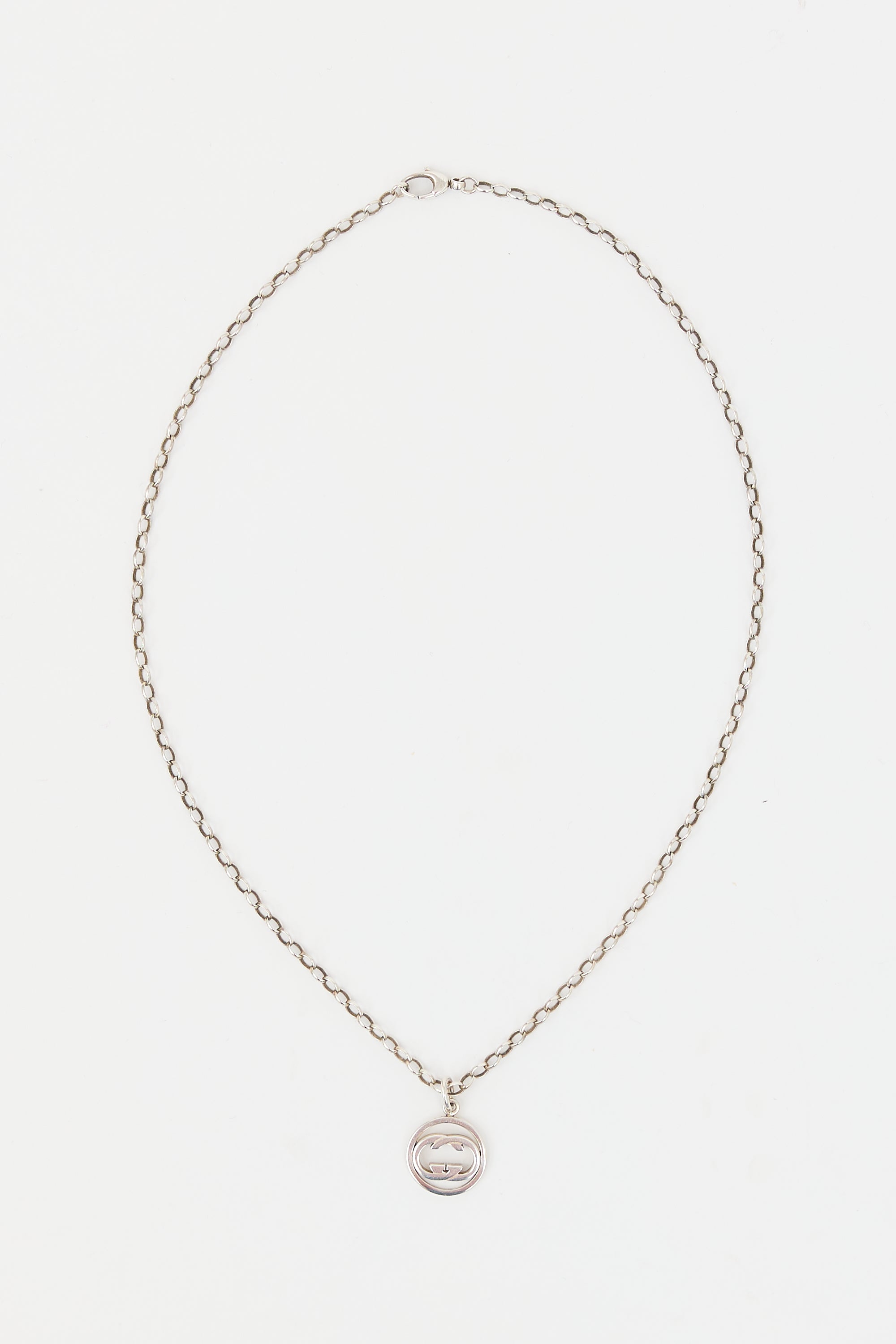 Pre-owned Gucci sterling silver necklace featuring interlocking GG charm and clasp closure.