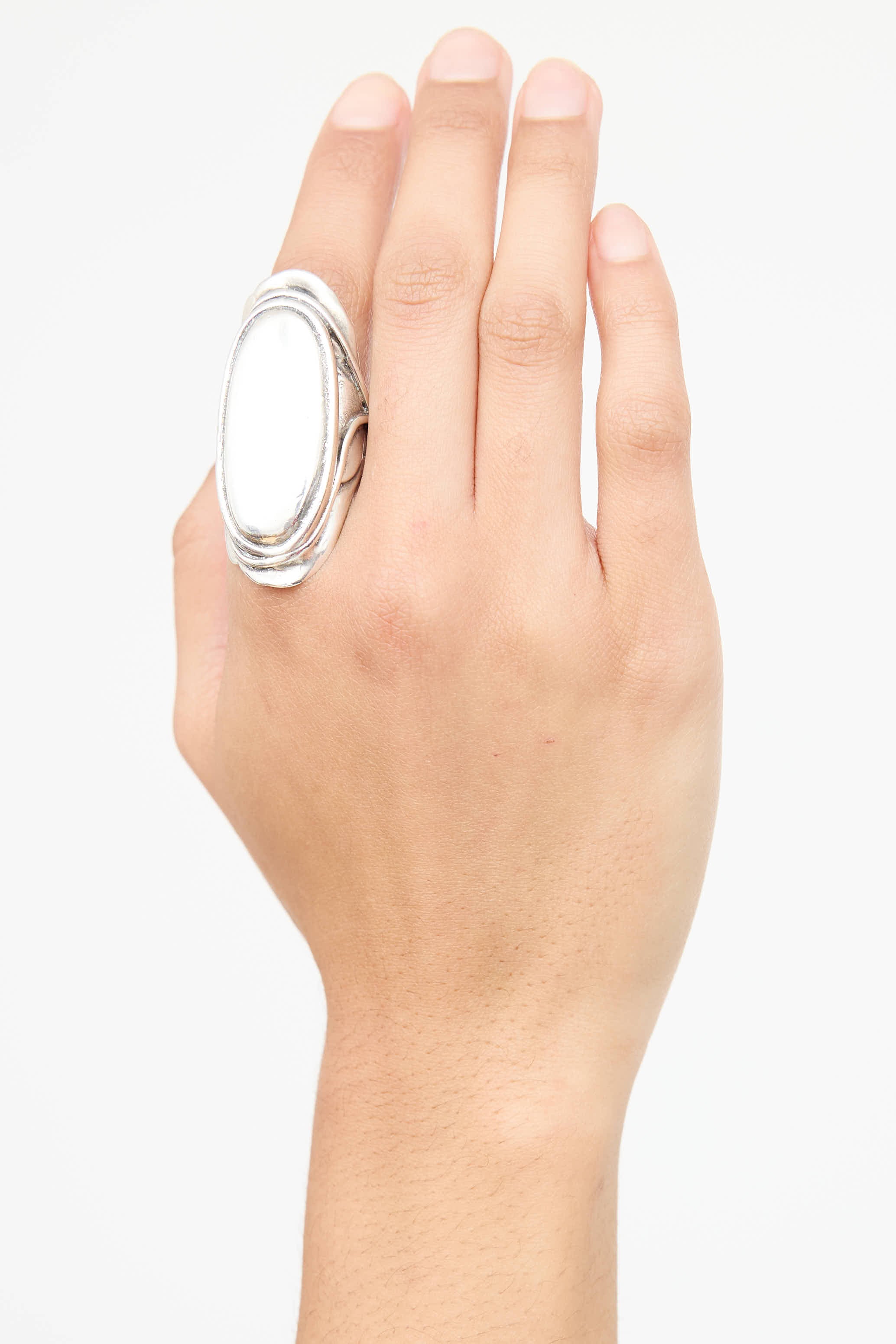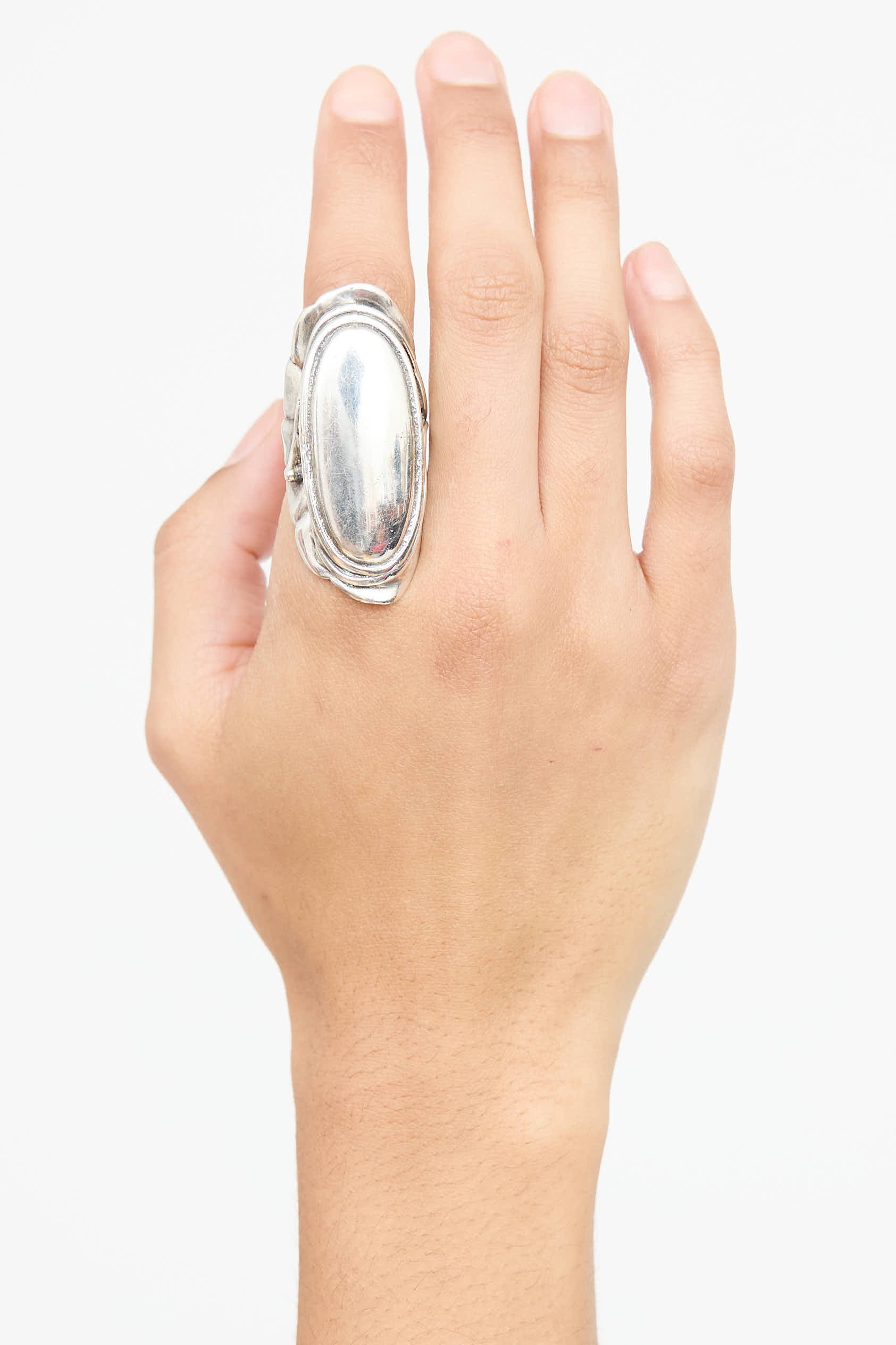 Pre-owned Pamela Love sterling silver XL Mood ring featuring a 2" long metal cabochon in a fluid setting, thin dual metal band, and stamped logo and "925" on interior.
