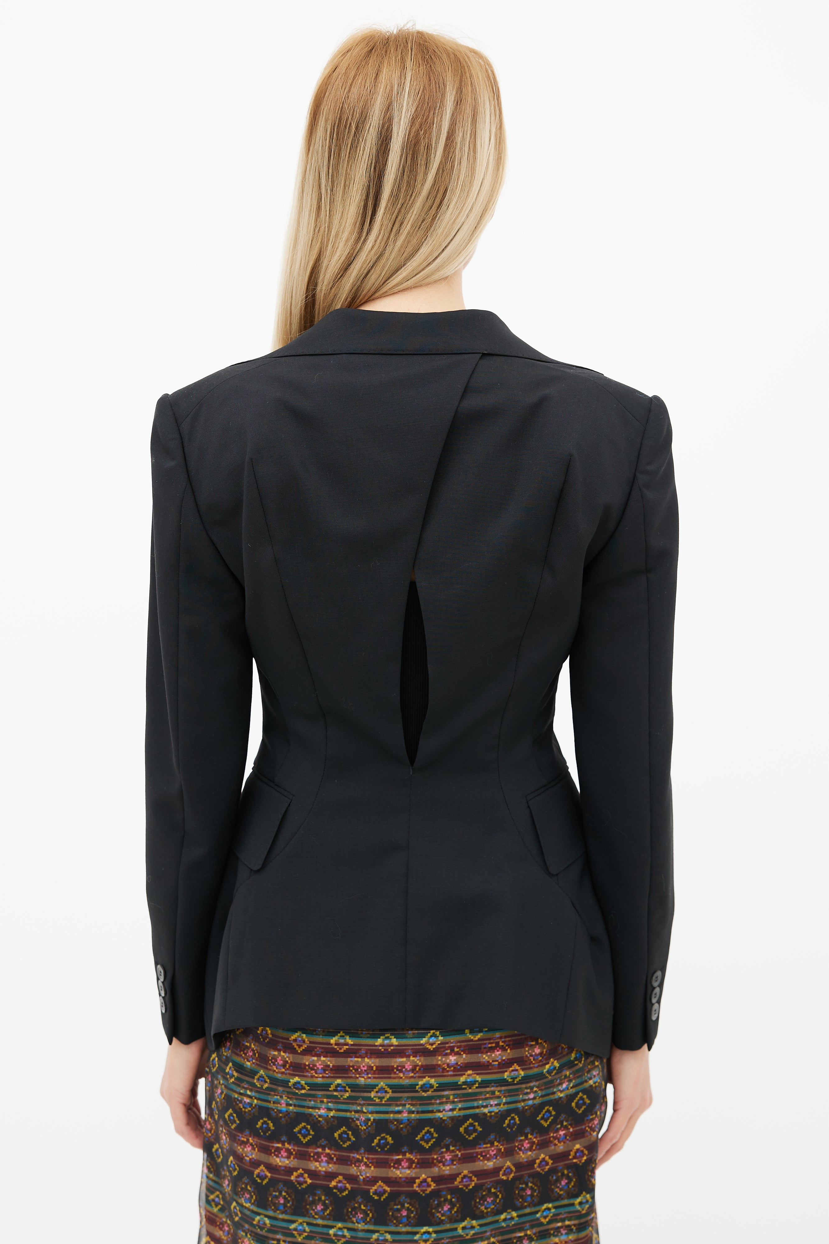 Black Wool Cut-Out Back Blazer Medium Size Guide