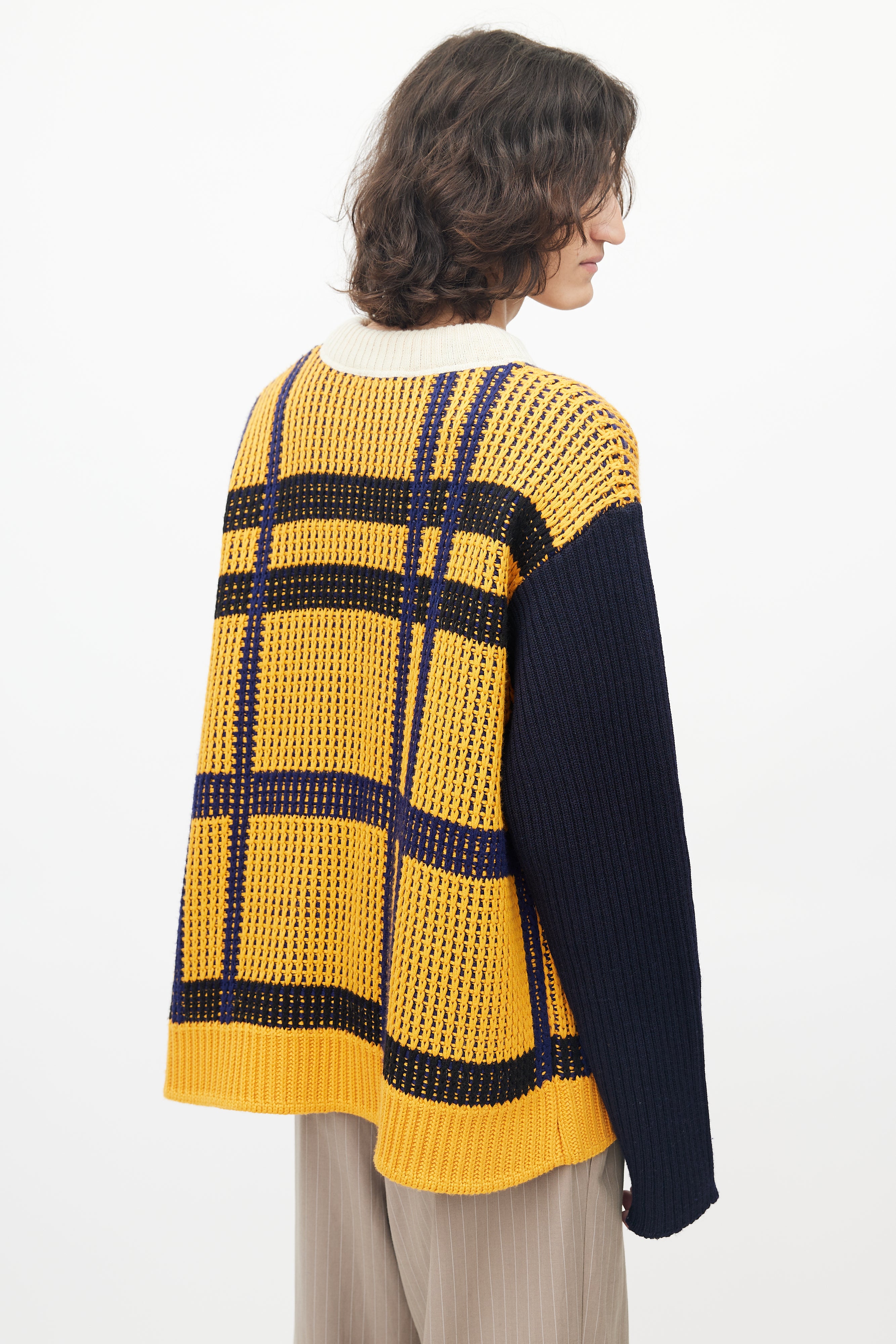 Yellow & Navy Shaker Knit Sweater Medium Size Guide