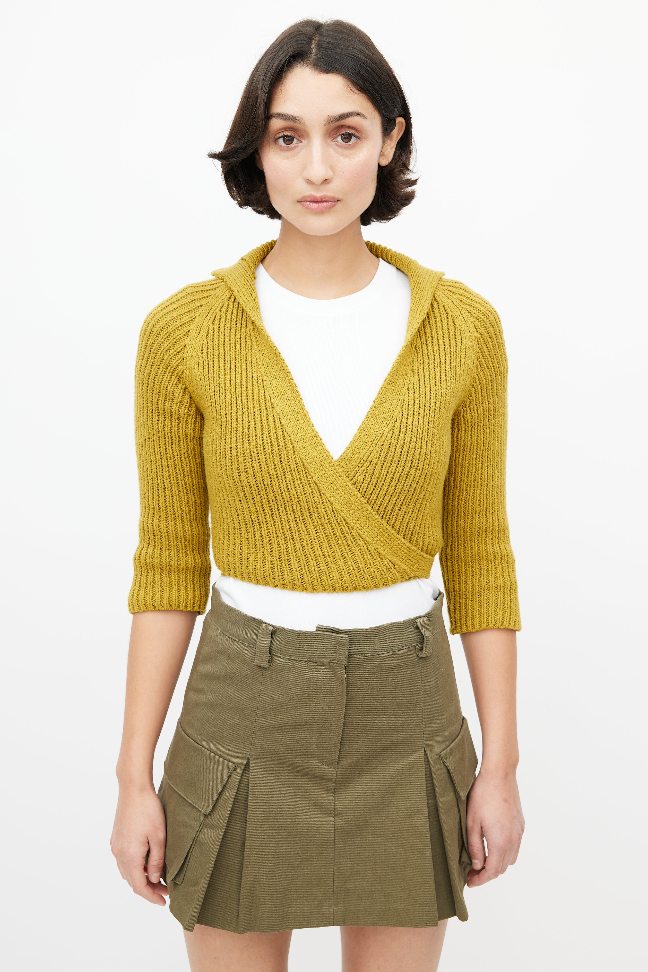 Yellow Knit Wrap Cropped Cardigan Medium Size Guide