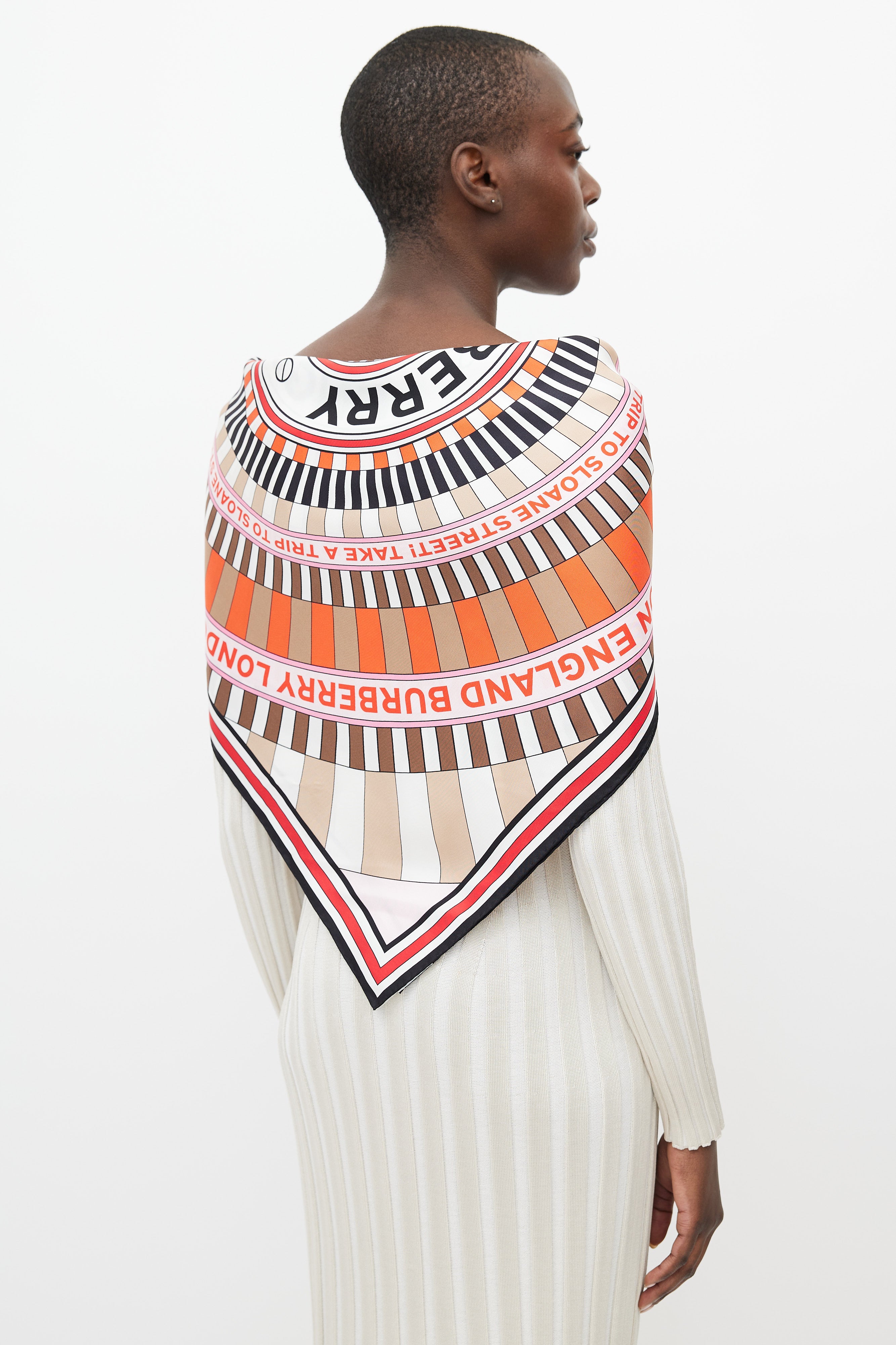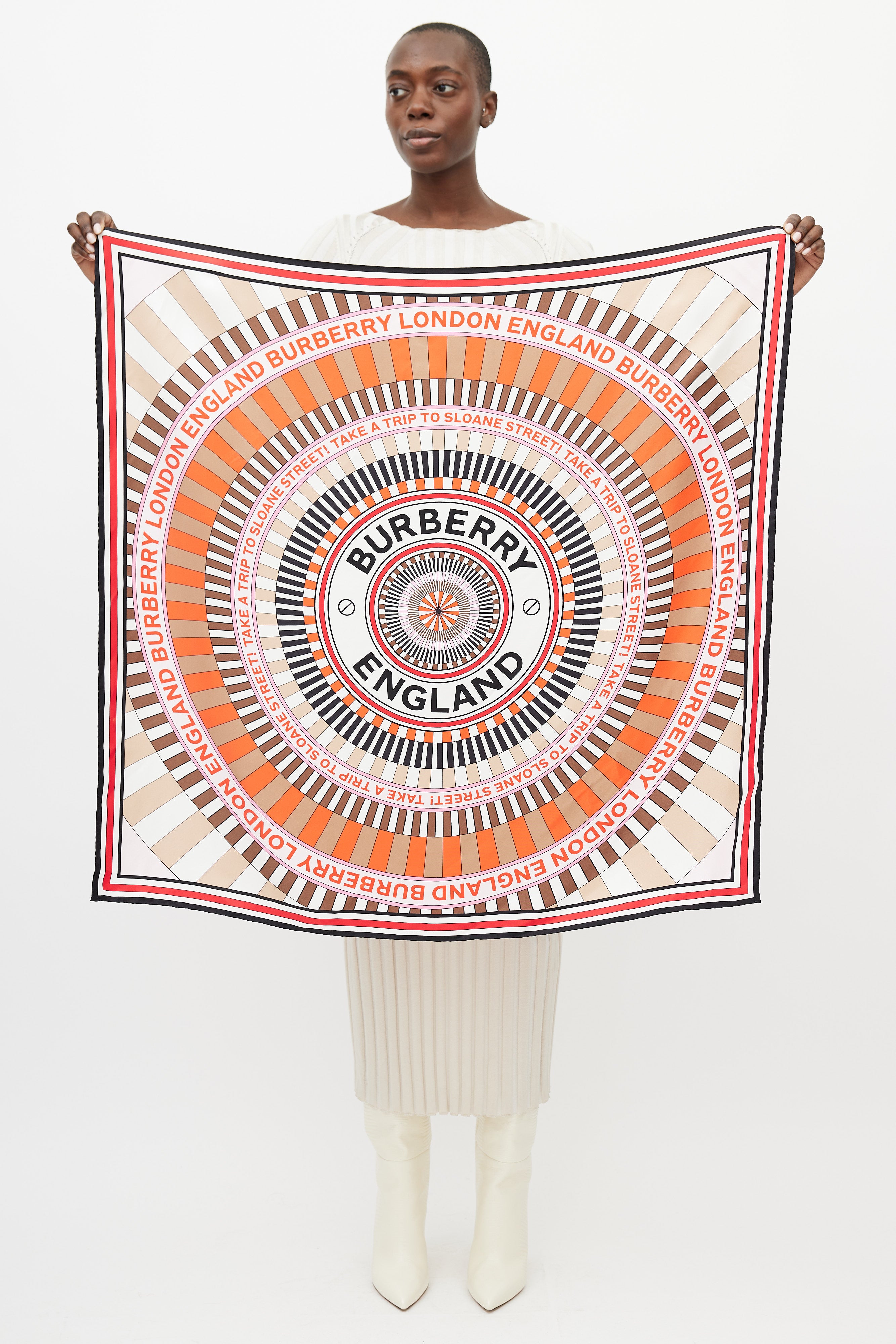 Pre-owned Burberry brown silk scarf featuring a multicolour Montage pattern throughout, and rolled edges.