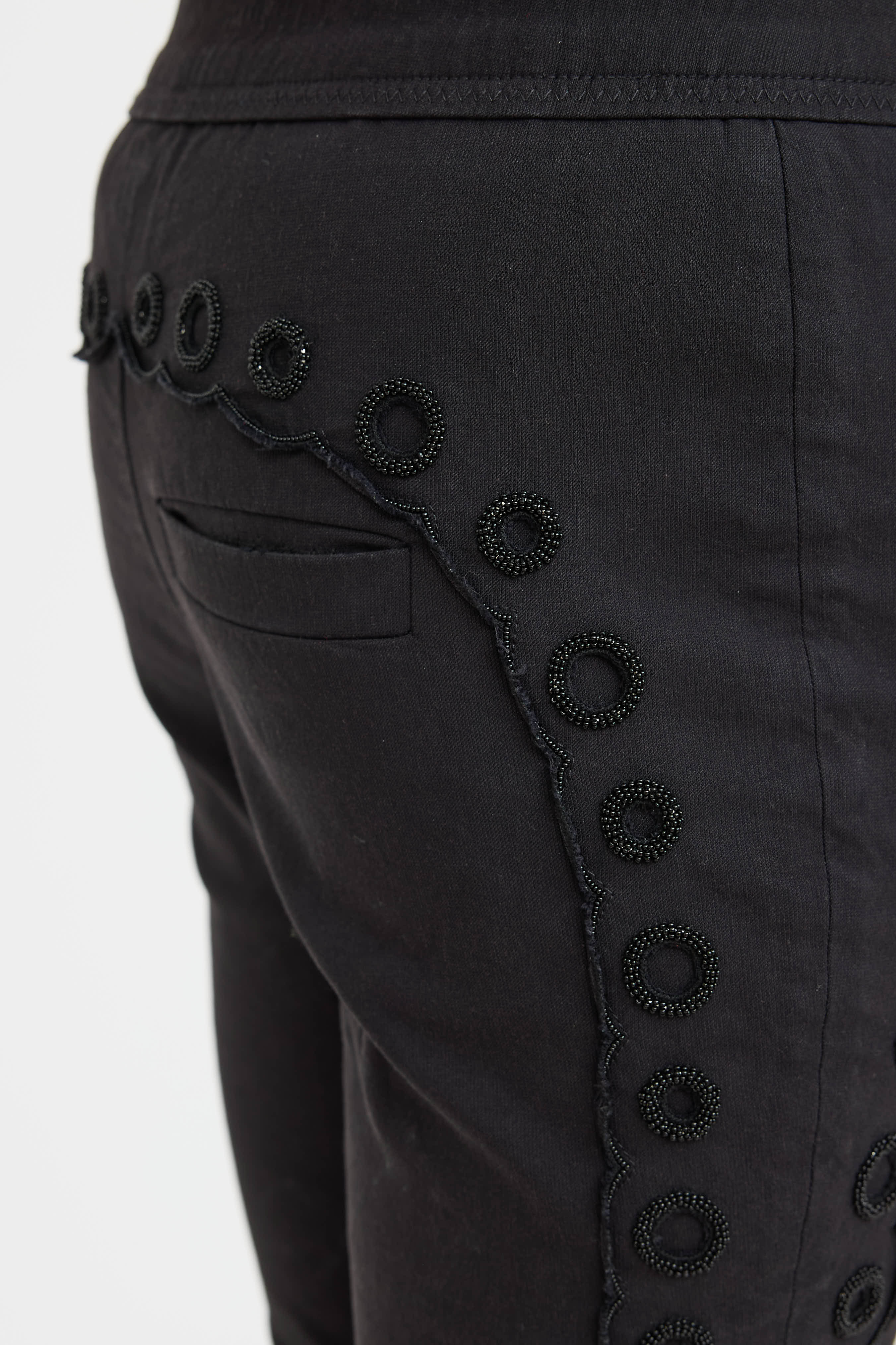 Pre-owned Isabel Marant black skinny cropped pant featuring concealed zip up front, scalloped trim with embellished bead detail and singular welt pocket at back.