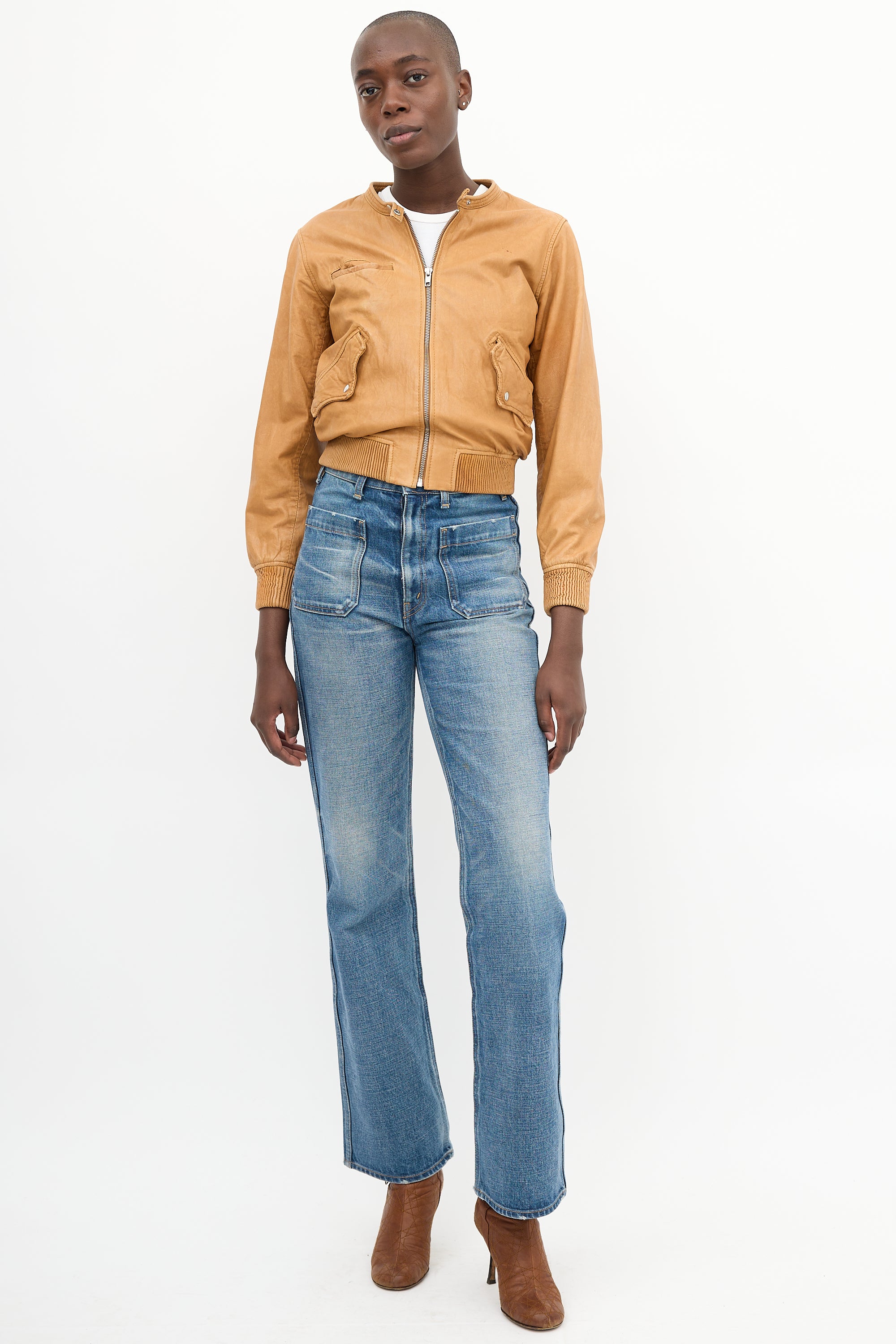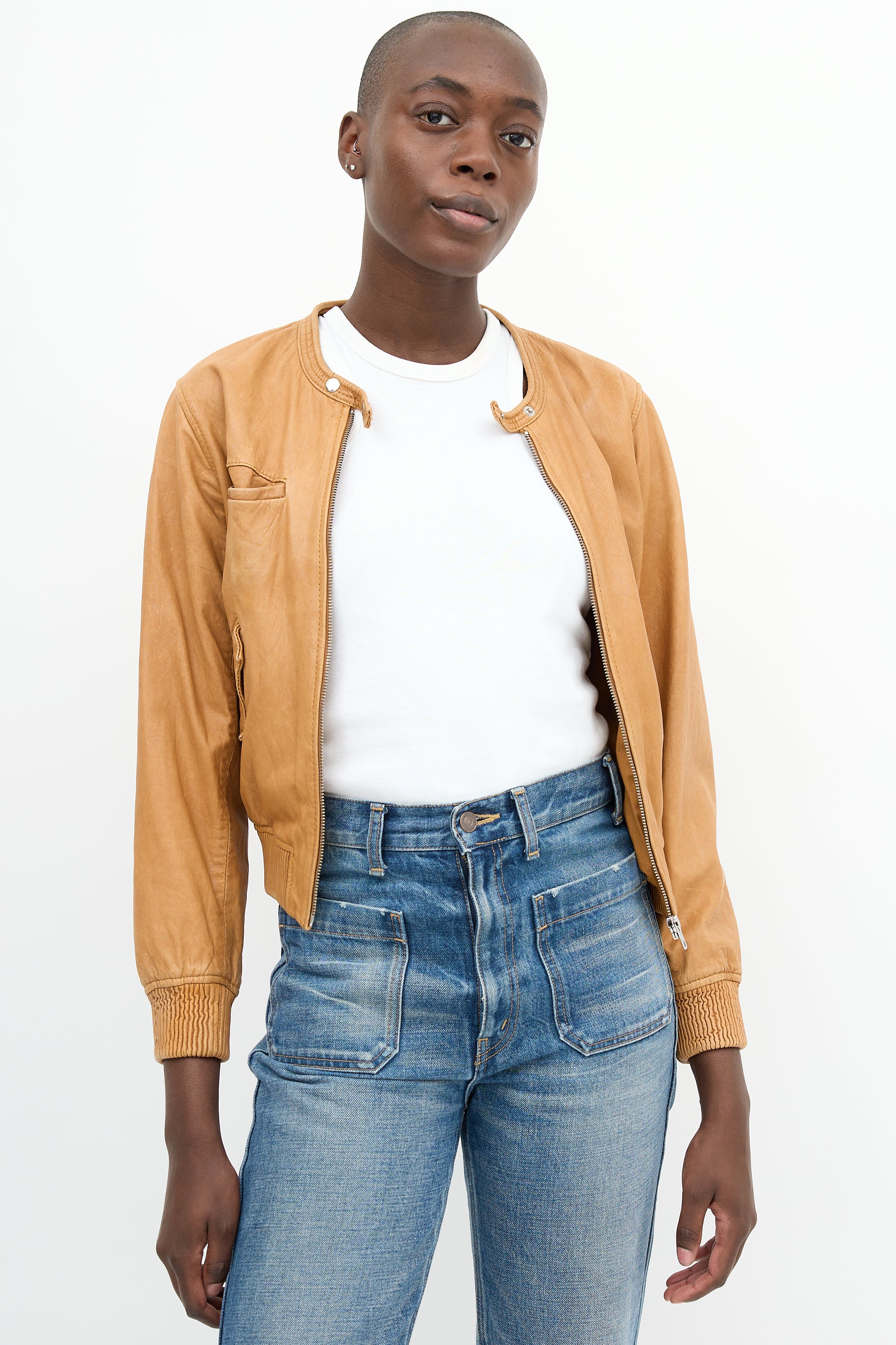 Pre-owned Isabel Marant Étoile brown leather Calista jacket featuring round neckline with snap button fastening, zip up front, one welt pocket at left chest, two buttoned flap pockets at waist, and ribbed cuffs and hem. Lined.