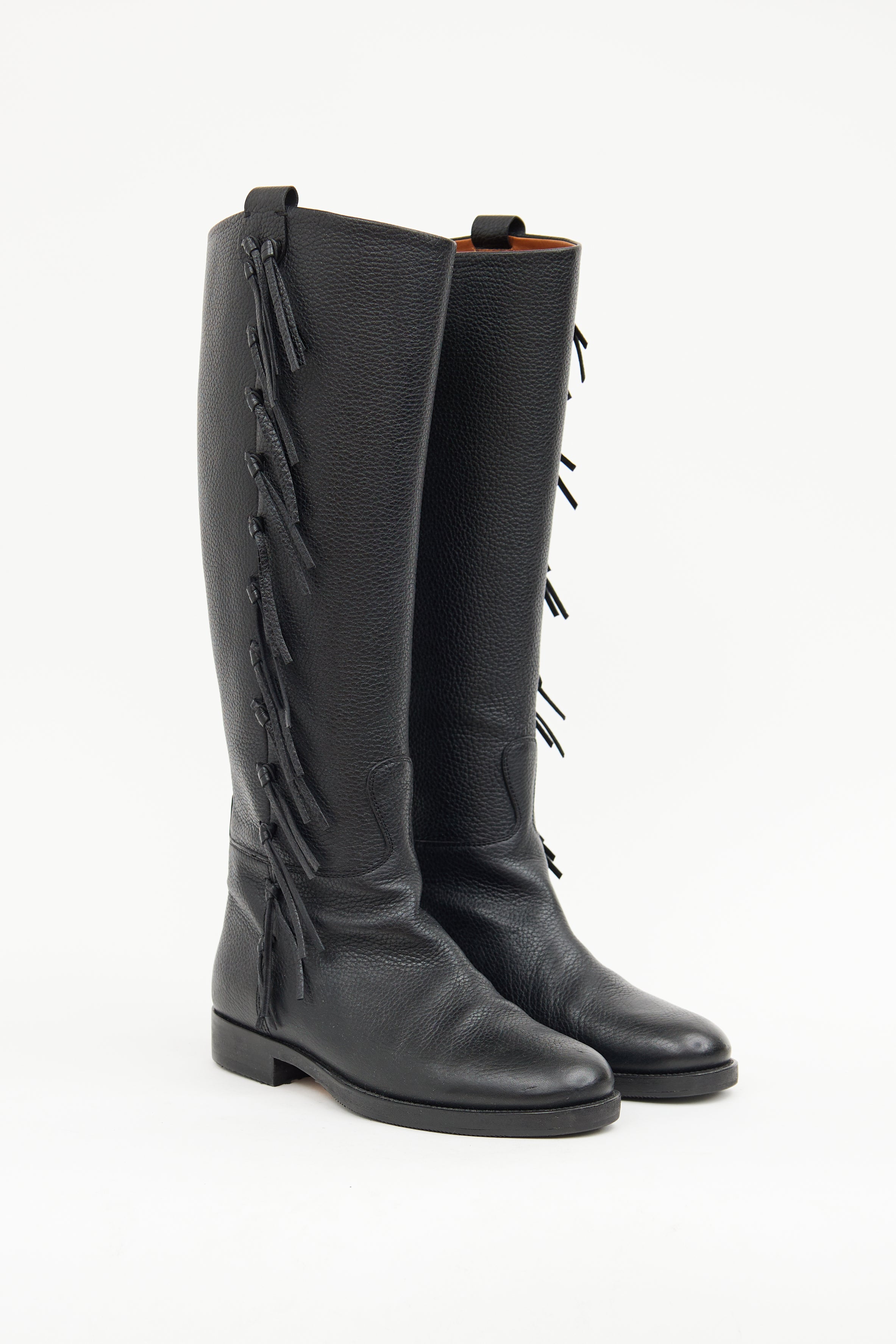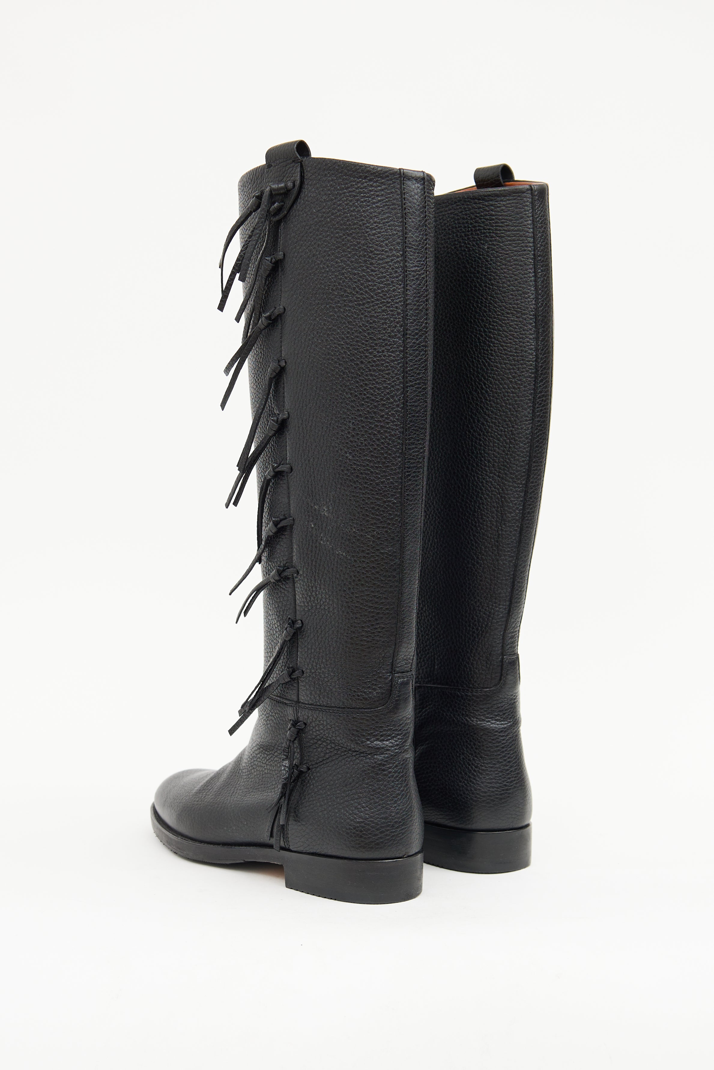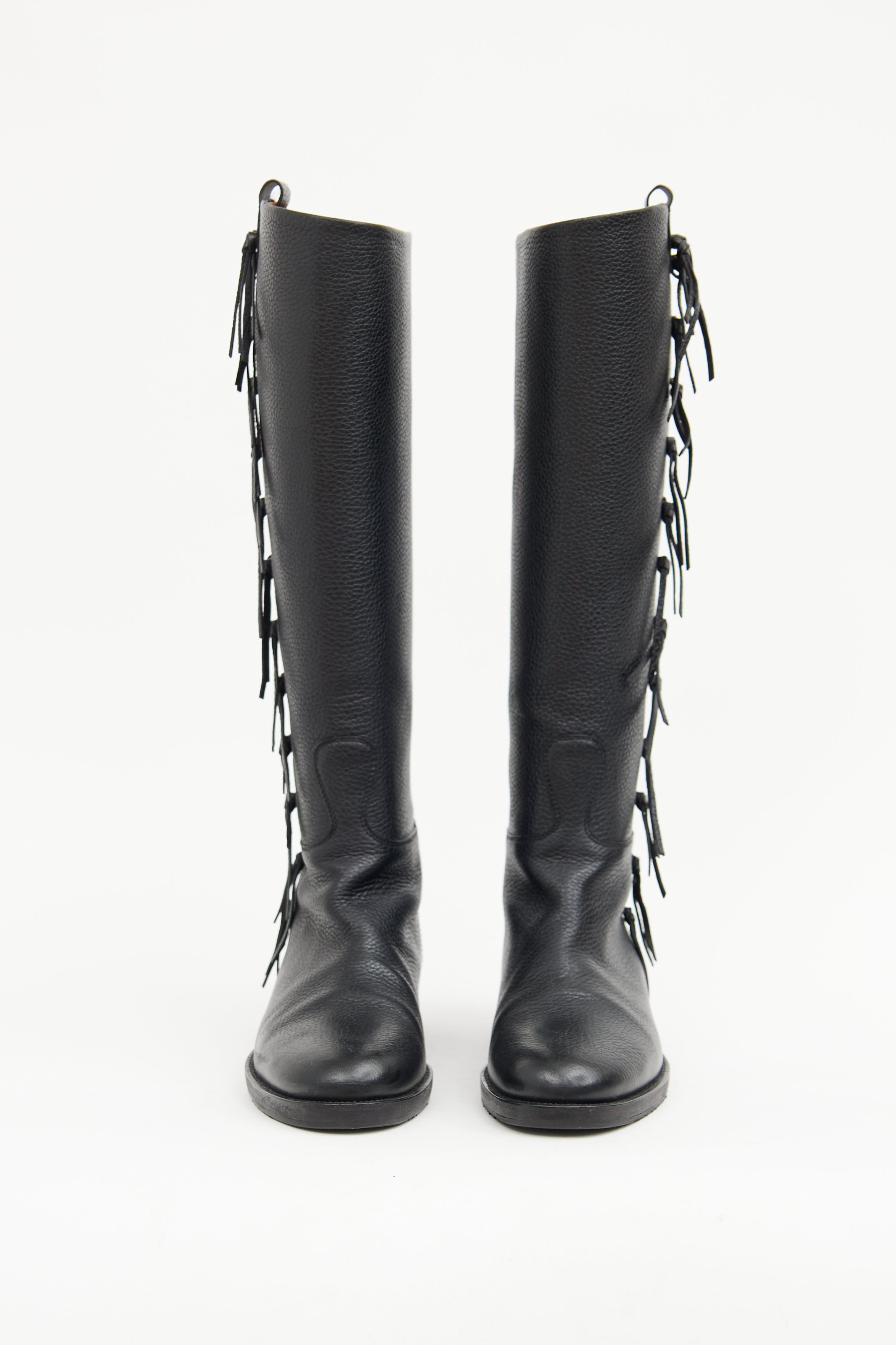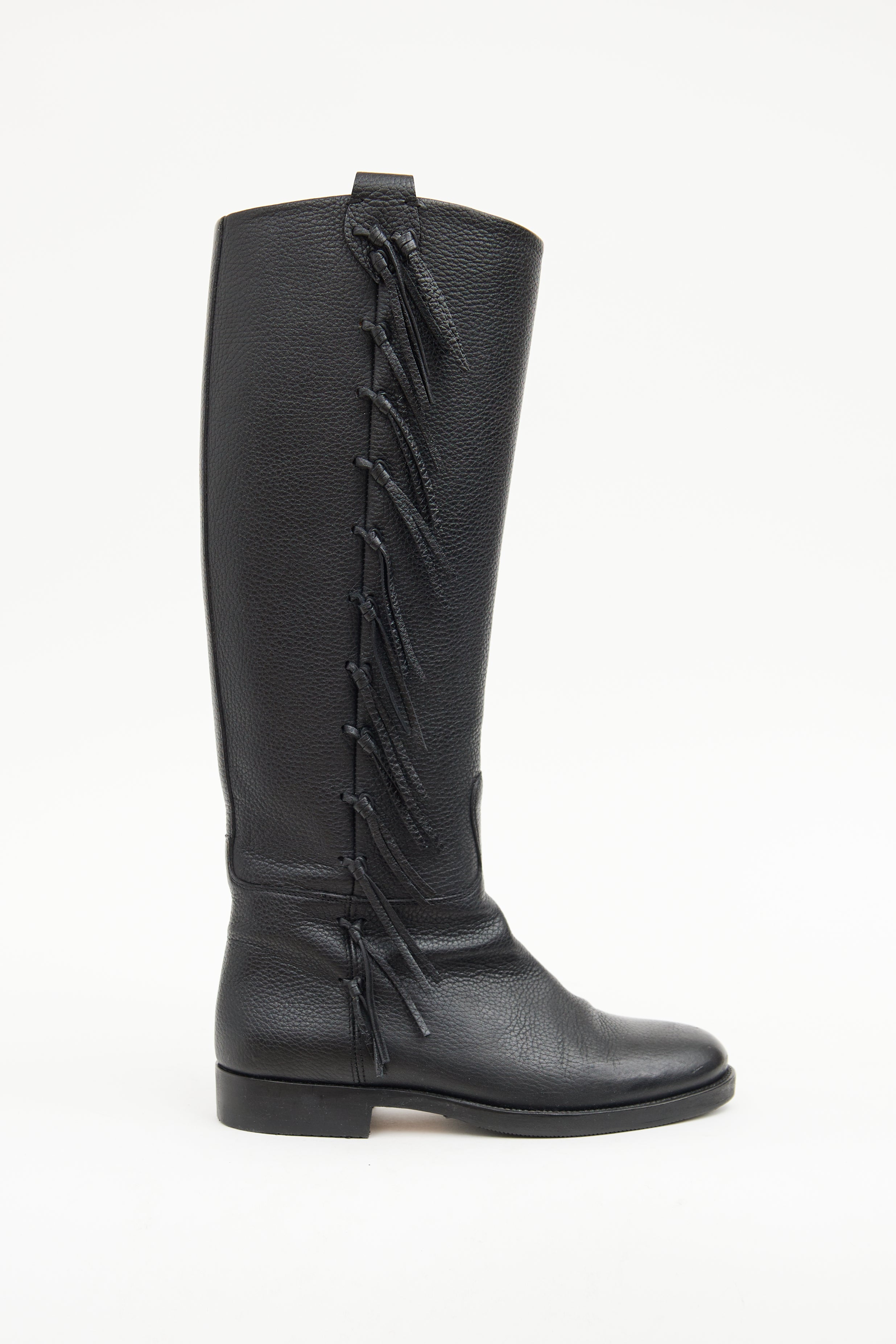 Valentino Leather Fringe Riding Boot IT 37.5