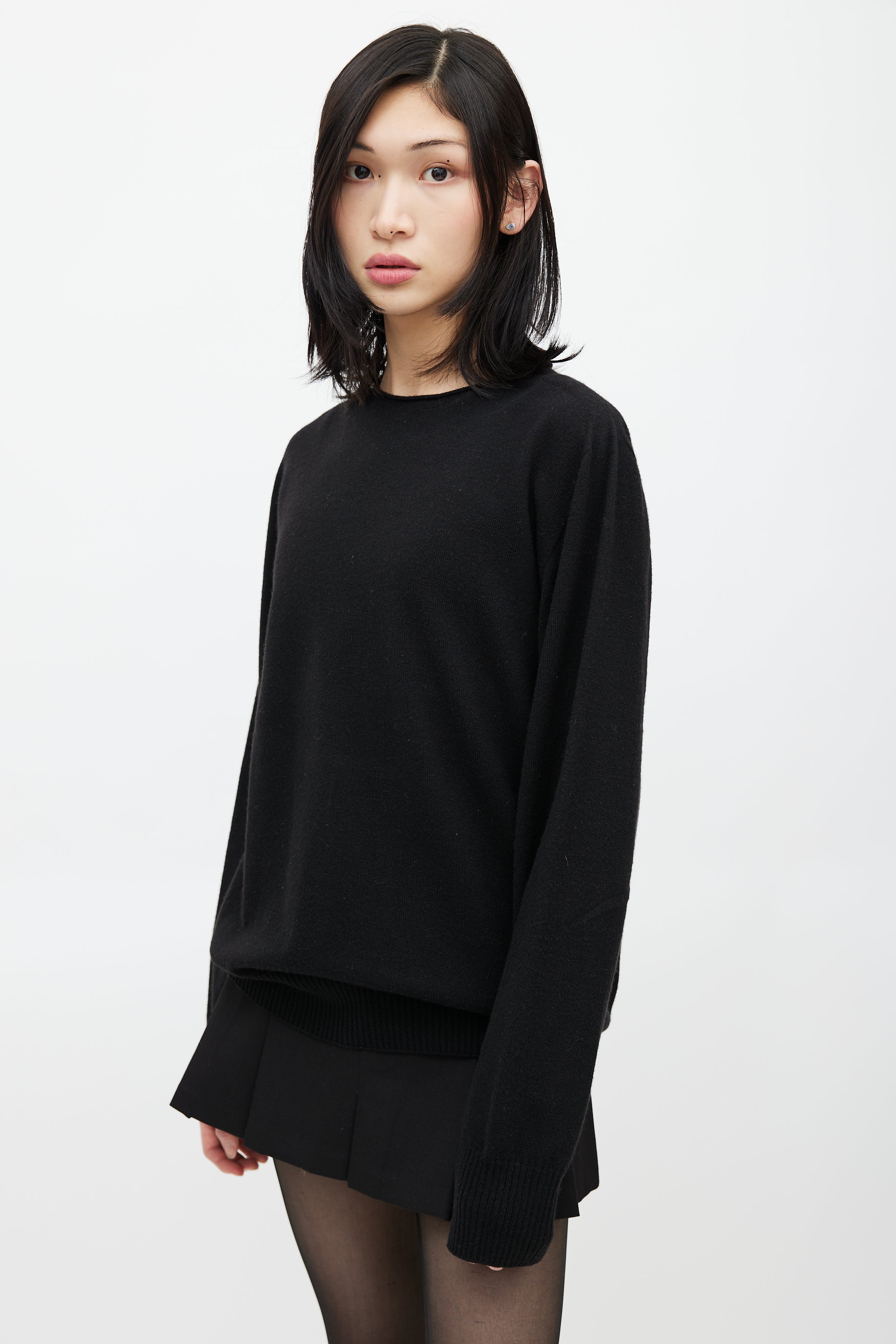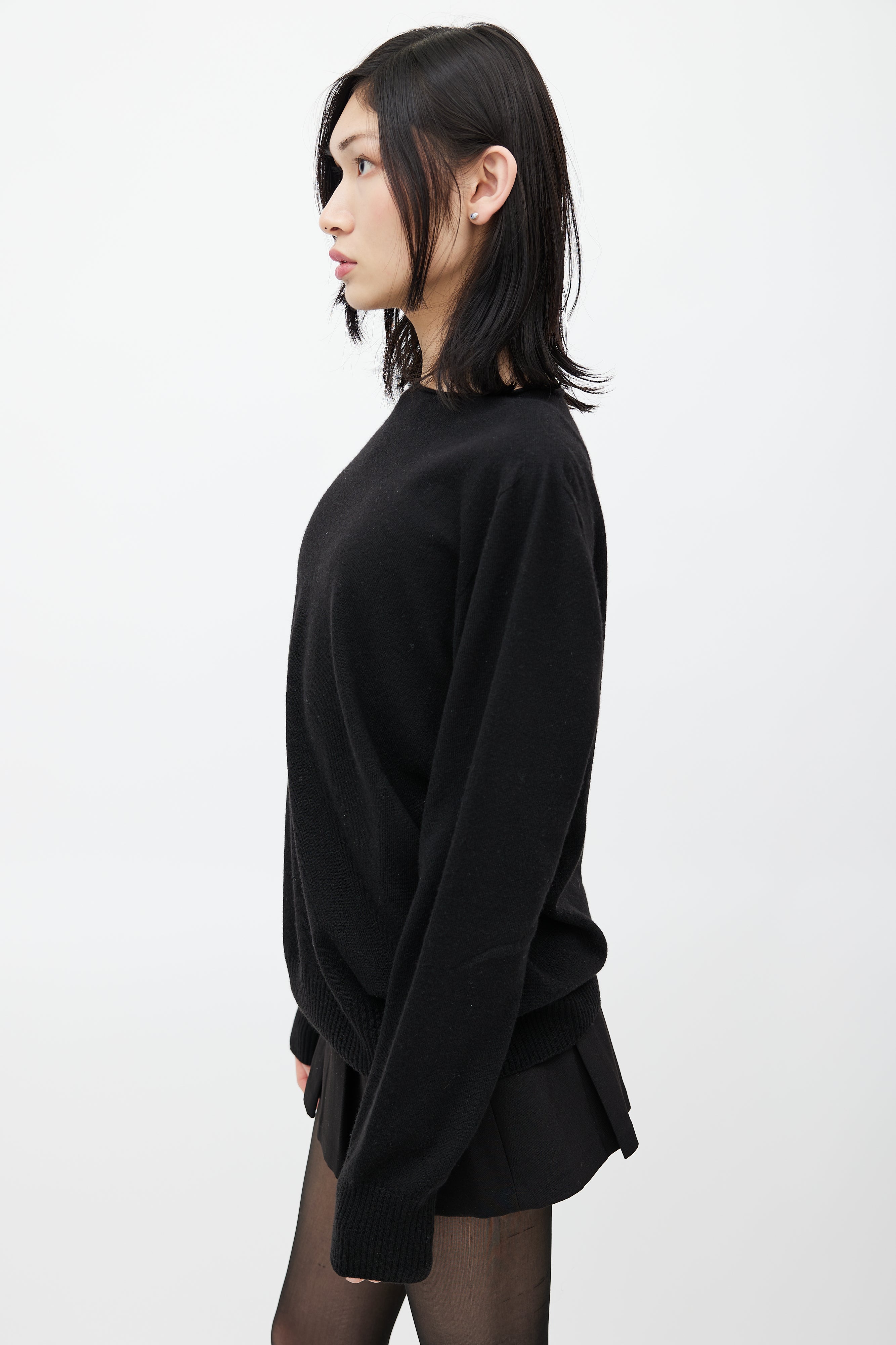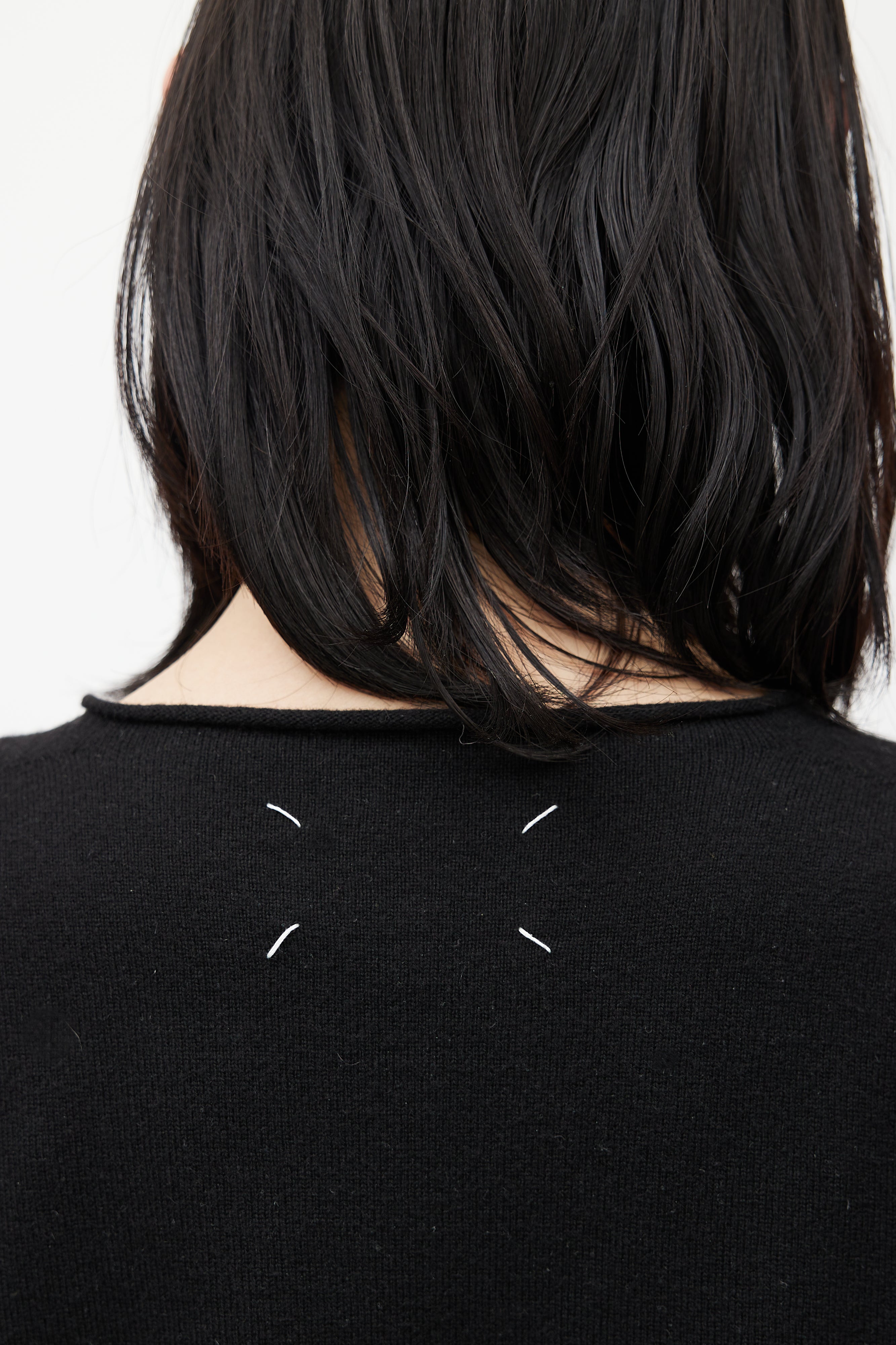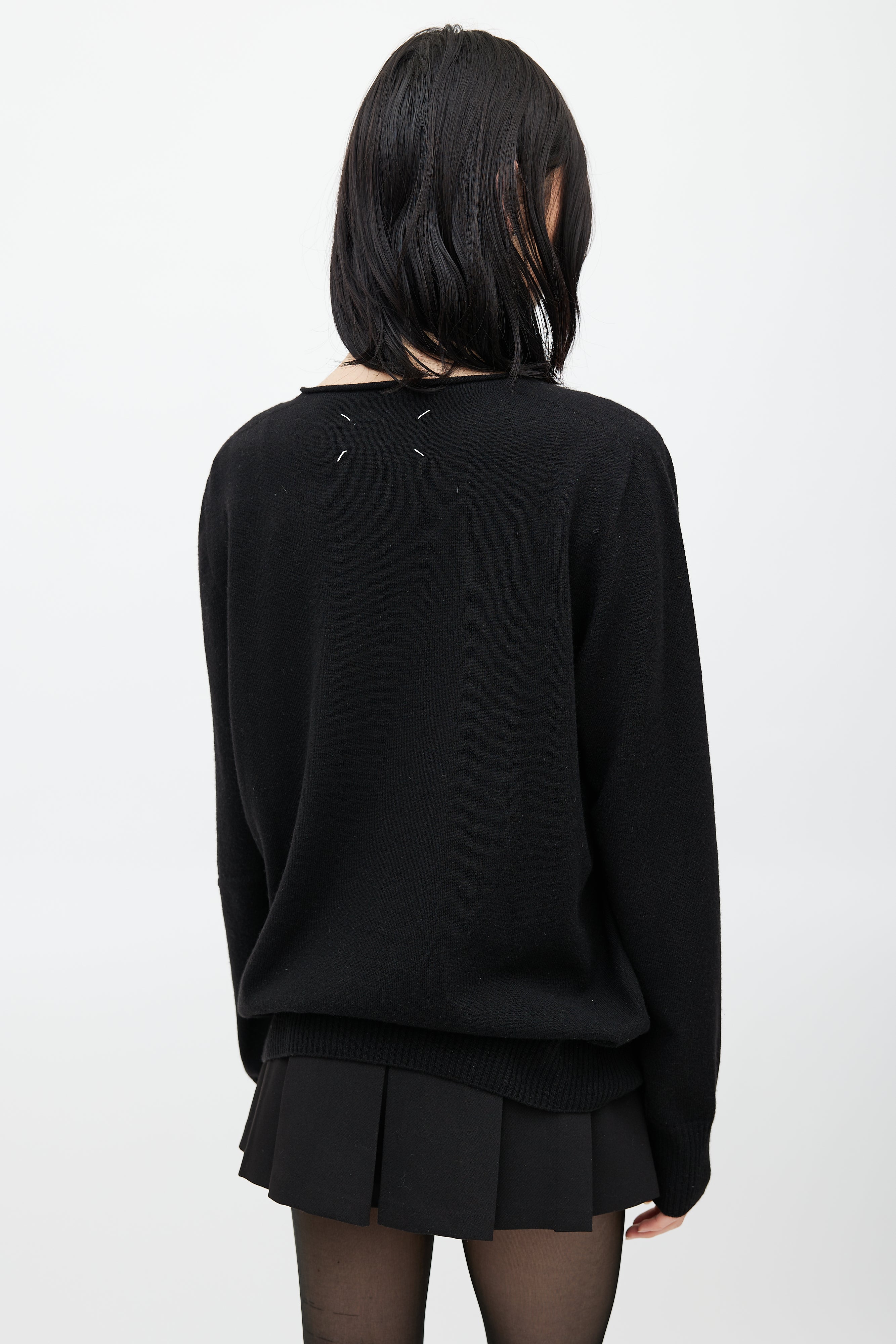 Pre-owned Maison Margiela black knit wool sweater featuring a round neckline, long sleeves, and ribbed hem.