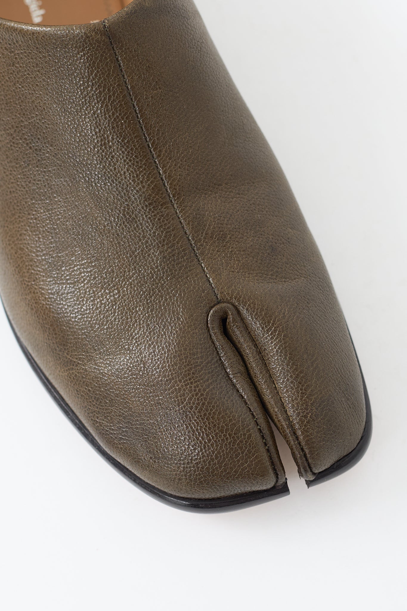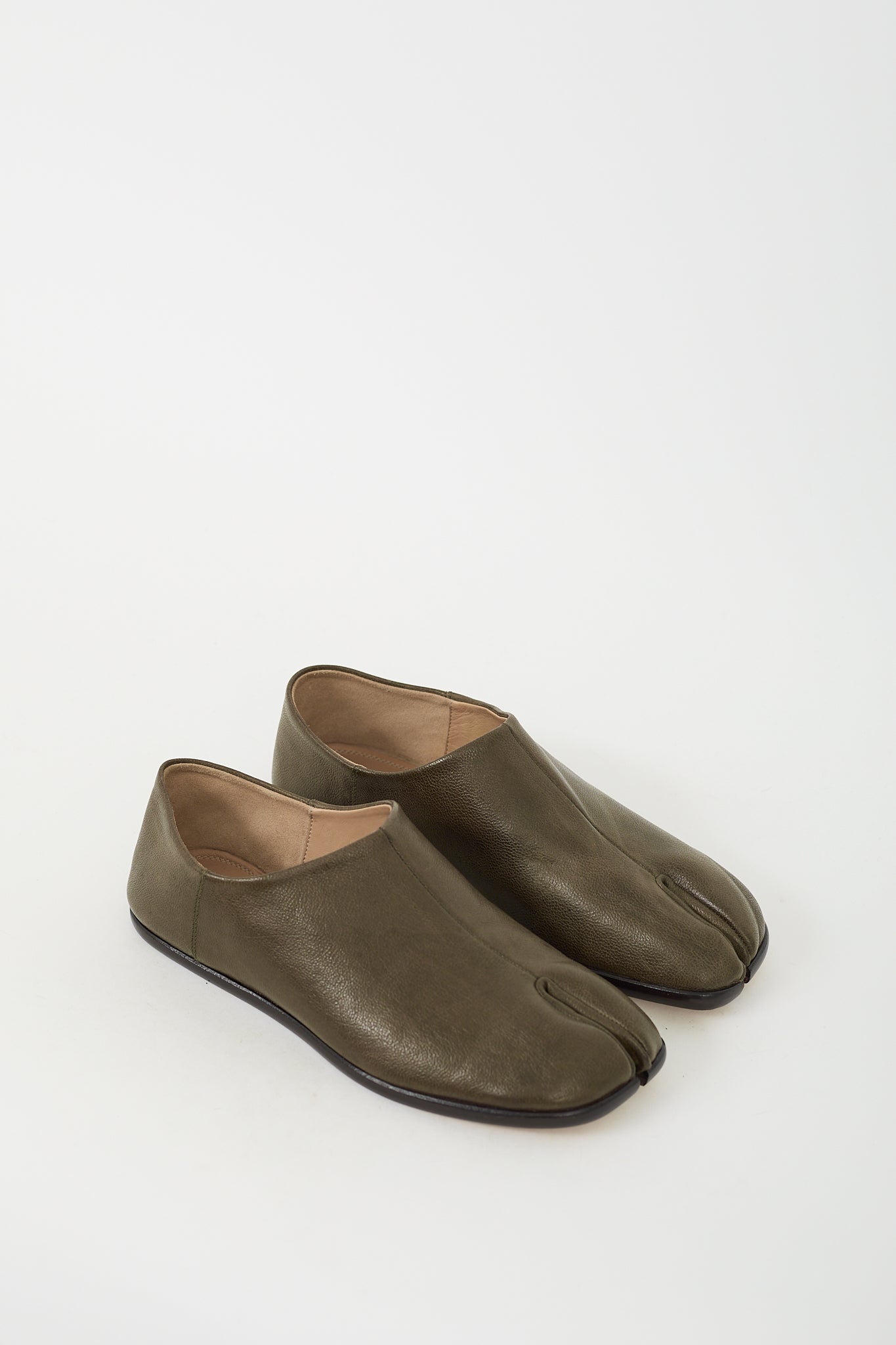 Khaki Green Leather Babouche Tabi Flat