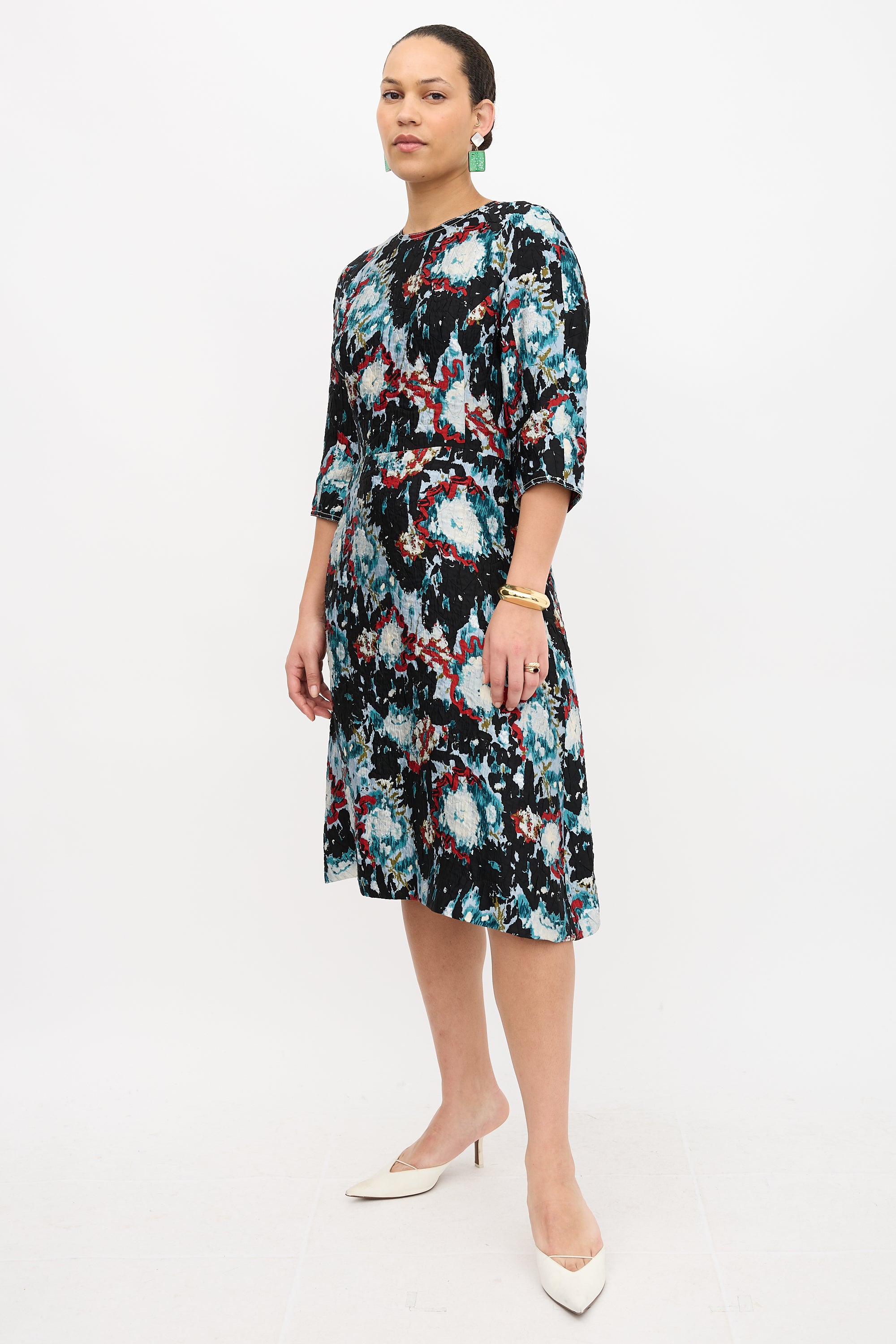 Marni Crinkled Silk Splash Dress IT 46