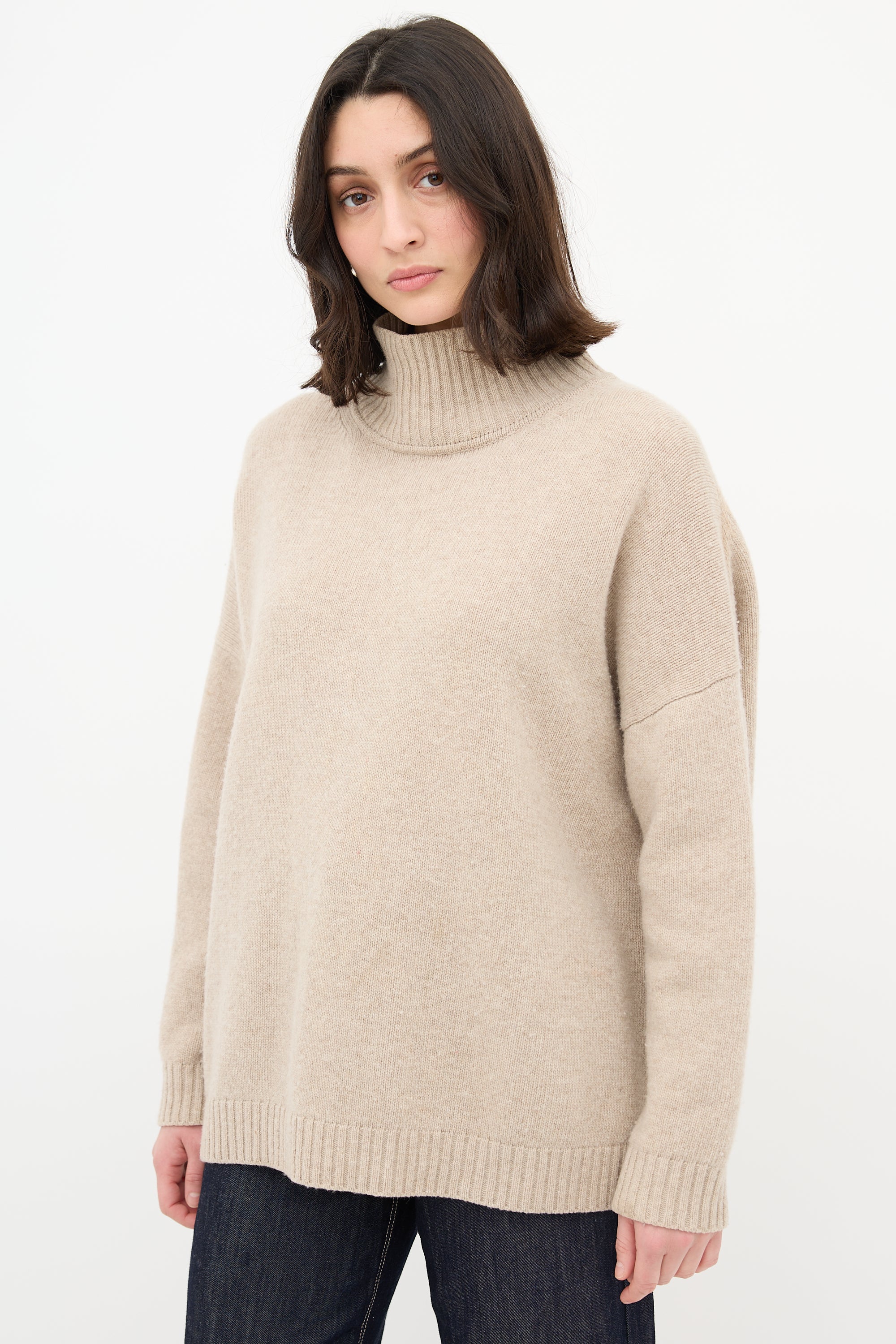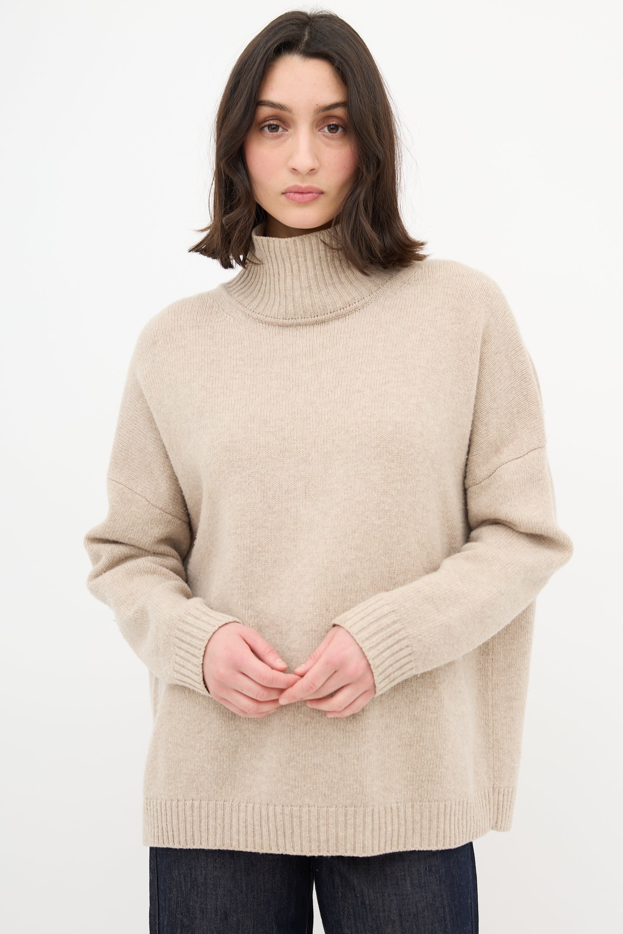 Pre-owned Weekend Max Mara beige turtleneck sweater featuring a ribbed neck, hem, and cuffs and drop shoulder.