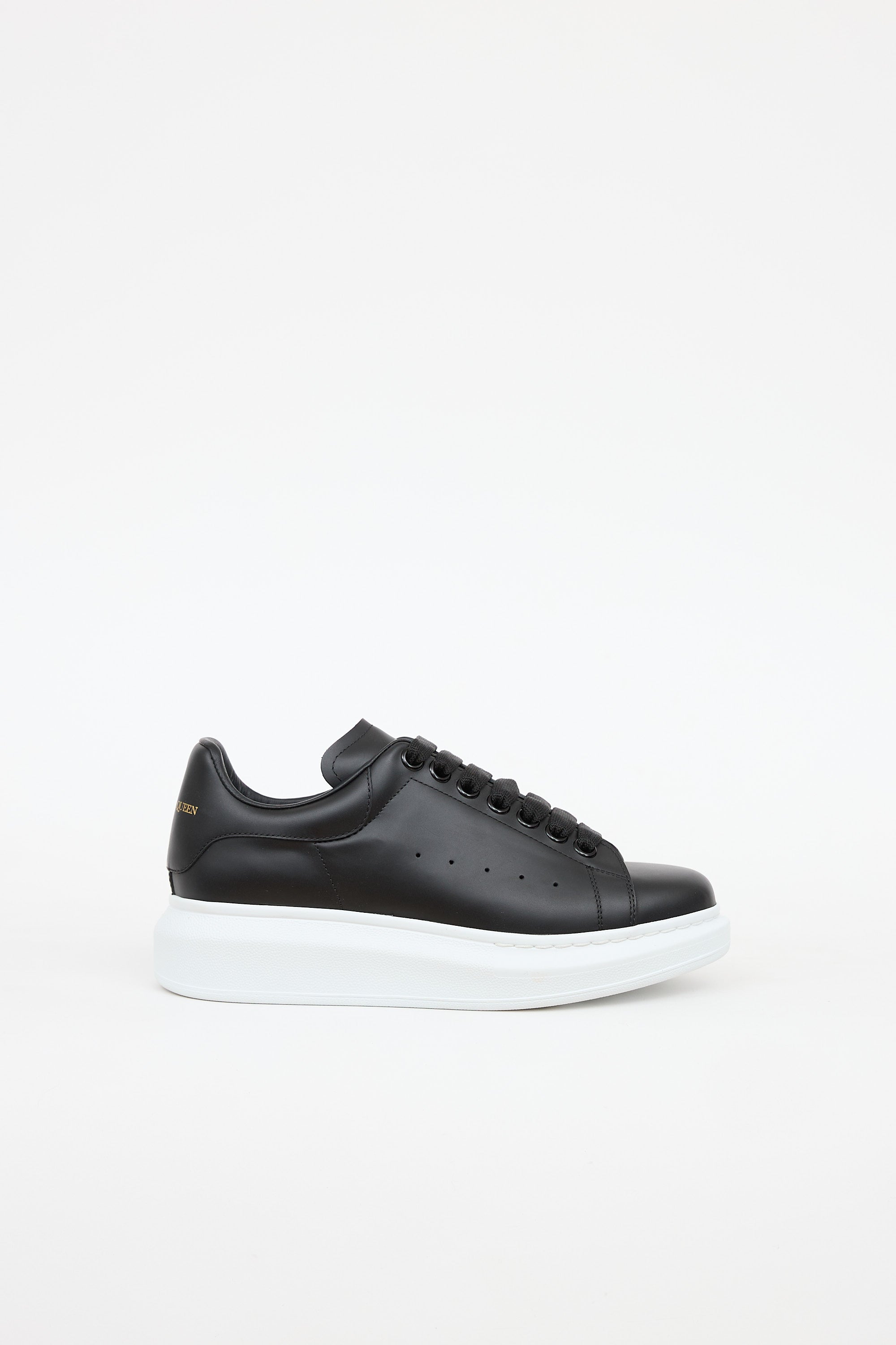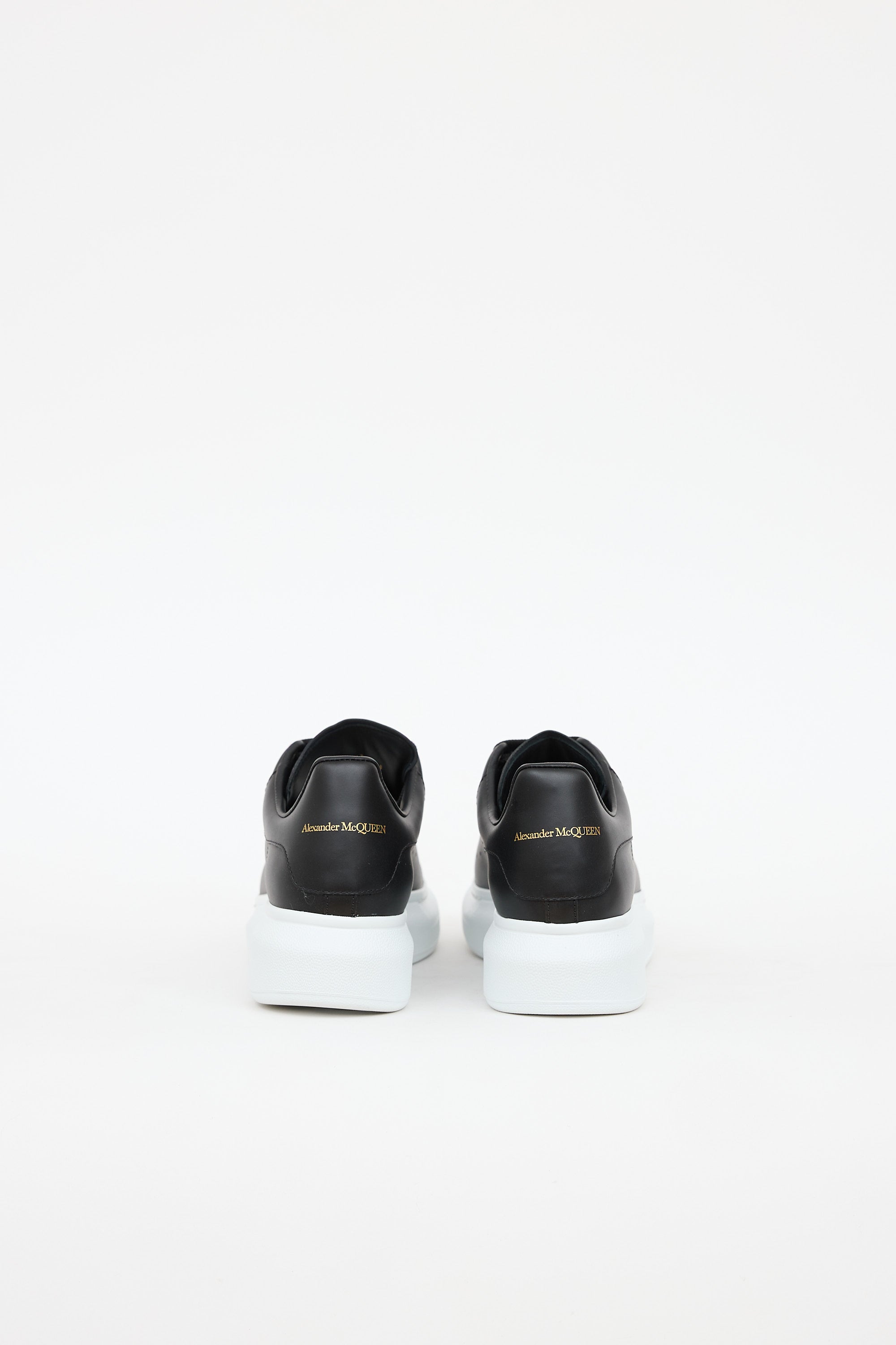 Pre-owned Alexander McQueen black Larry leather sneakers featuring a rounded toe, logo on tongue and heel, lace up closure and platform midsole.