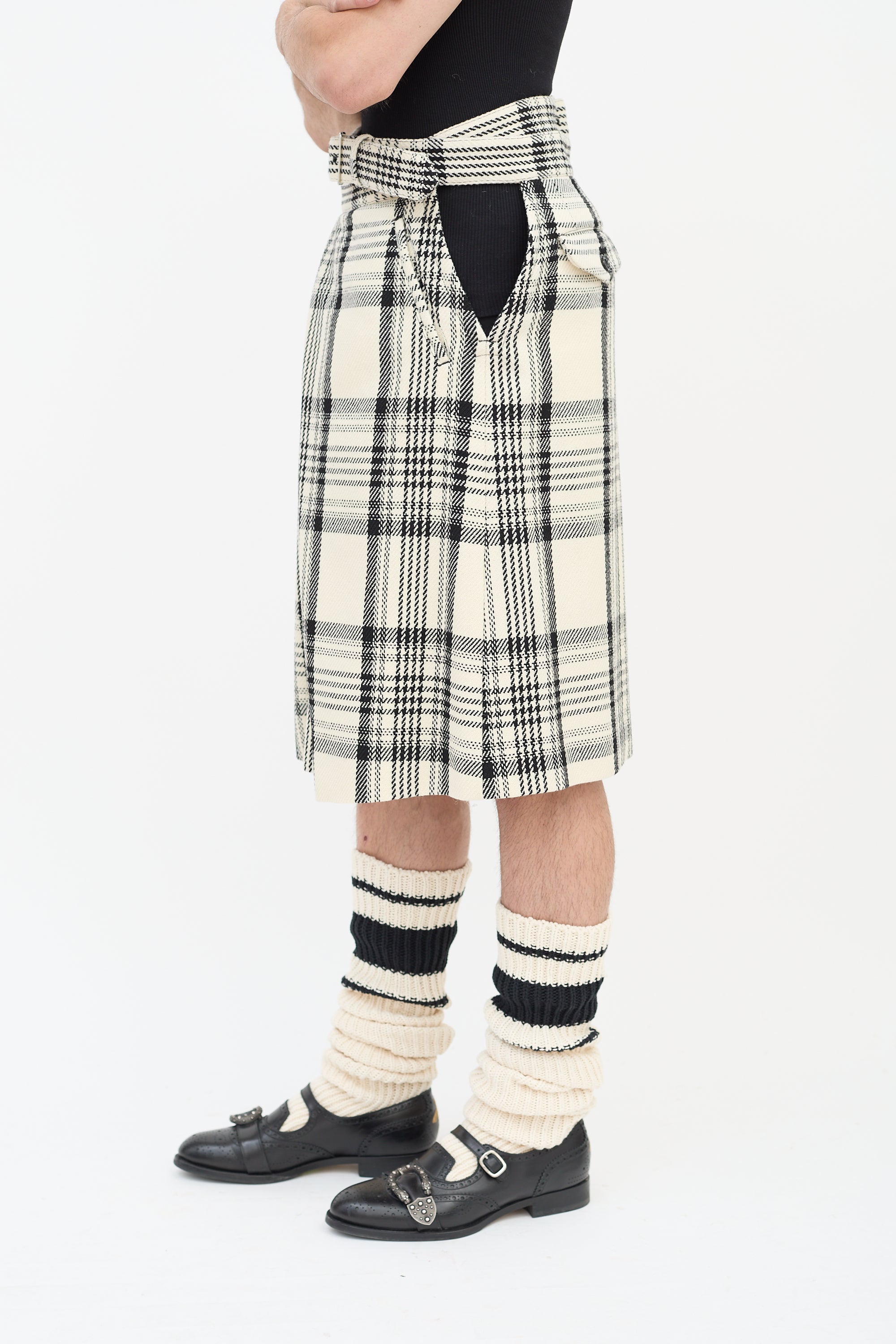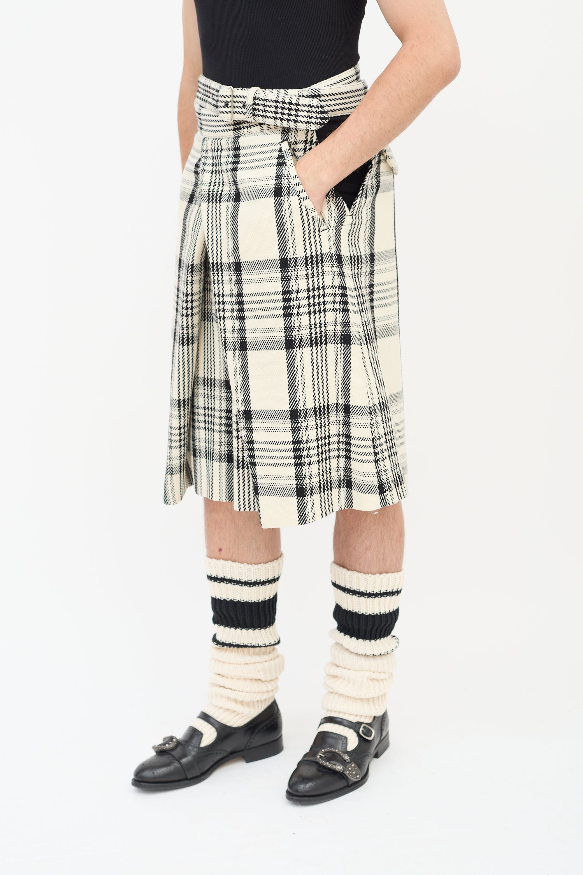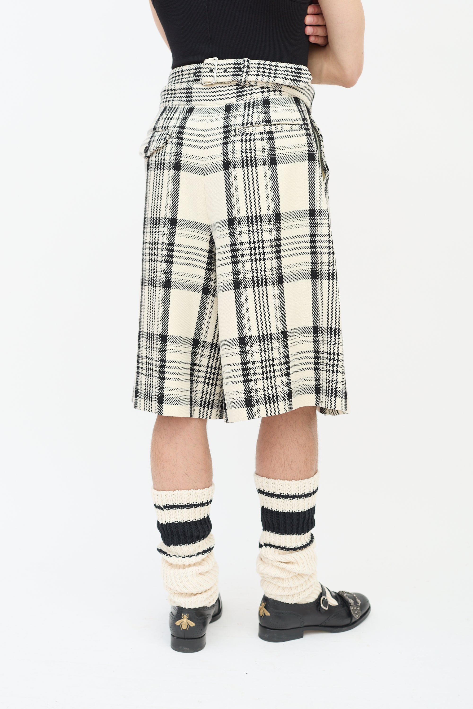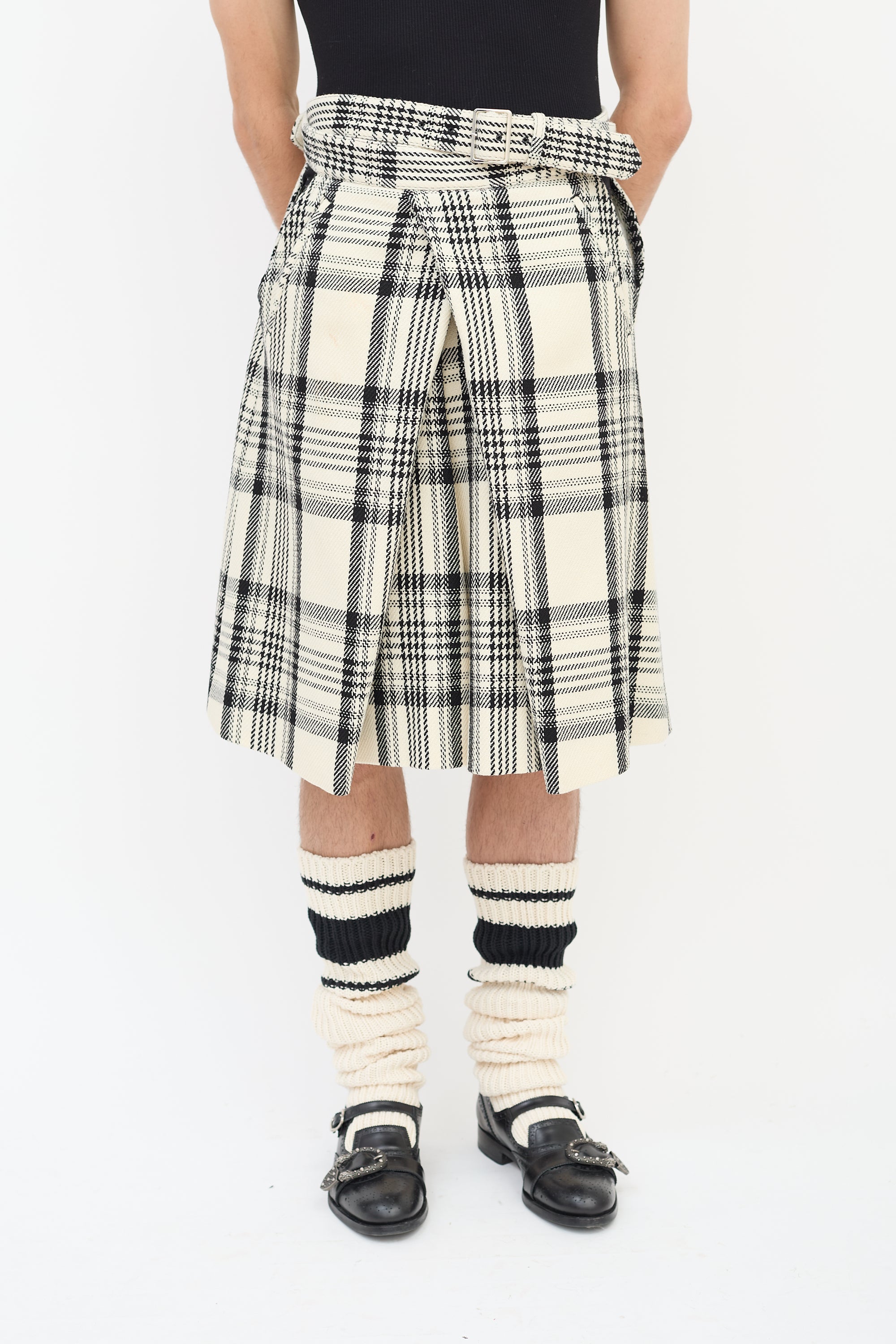 FW 2021 Cream & Black Check Box Pleated Shorts Medium Size Guide