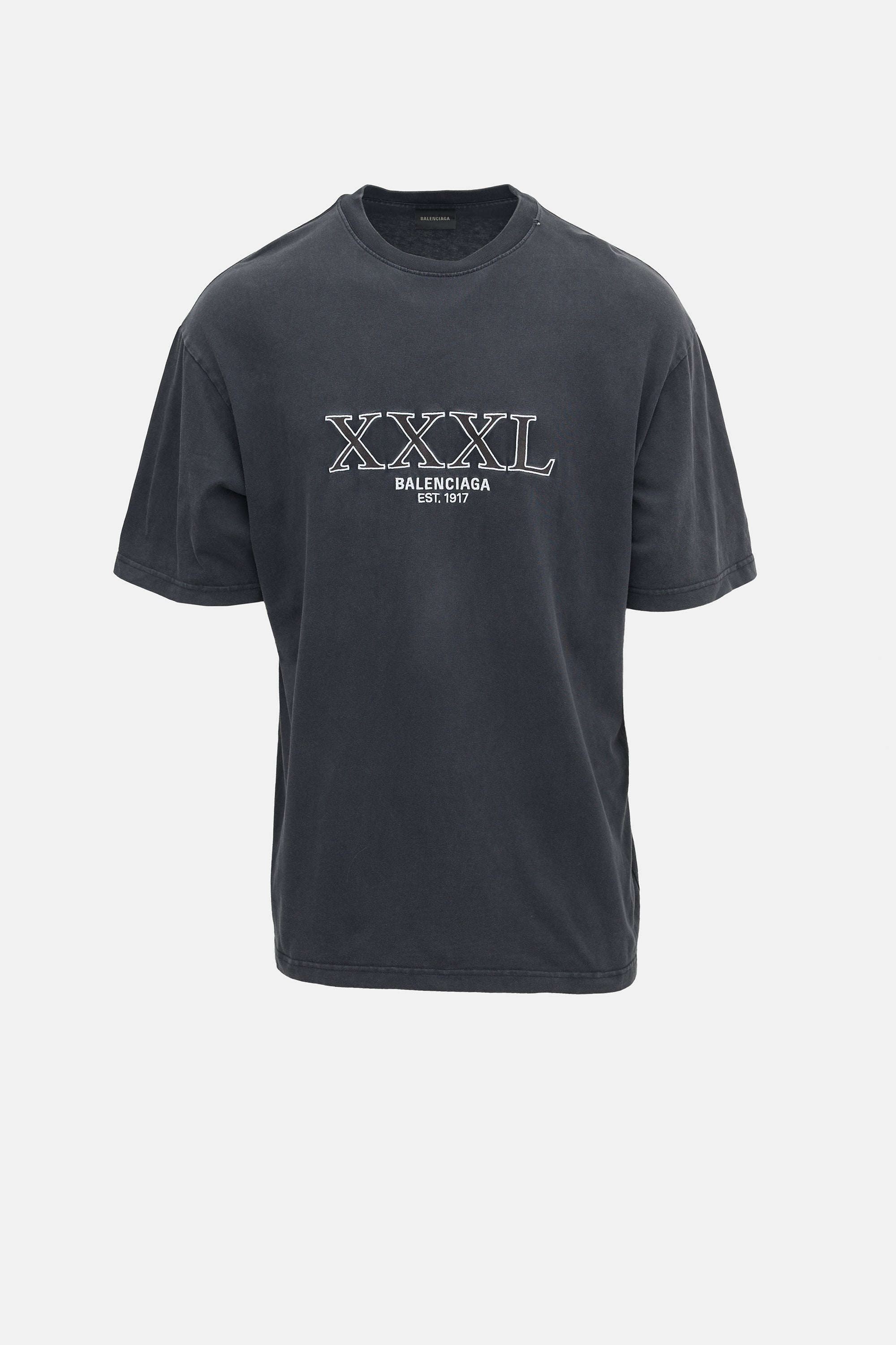 Pre-owned Balenciaga dark grey T-shirt featuring crew neckline and white and black embroidered 'XXXL' logo across chest.