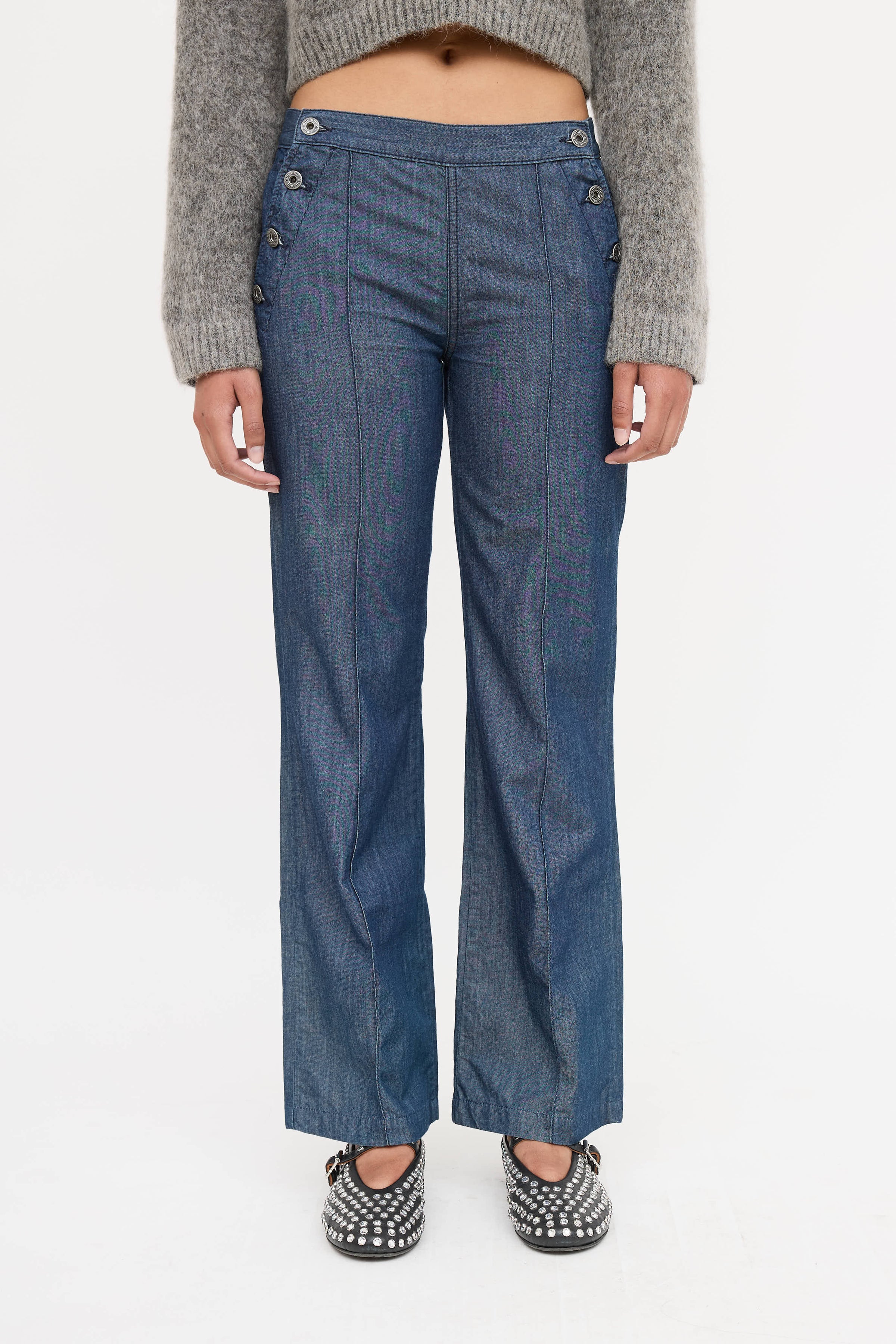 Miu Miu Chambray Straight Leg Pants US Waist 25