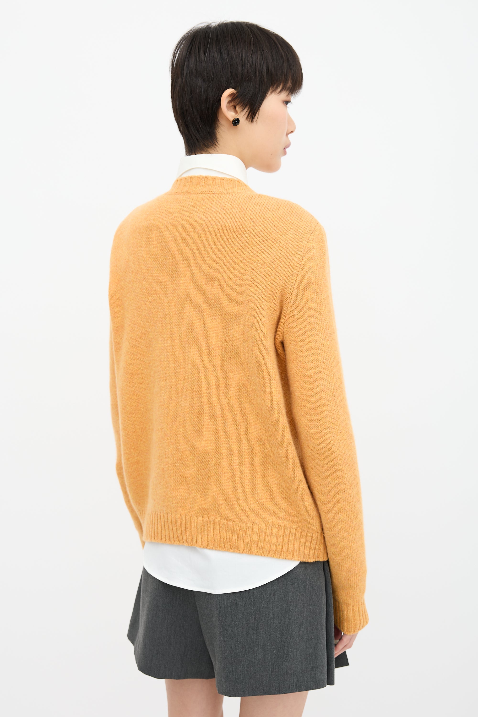 Pre-owned Miu Miu x Disney orange wool sweater featuring a ribbed crew neckline, Aristocats character intarsia, and a ribbed hem and cuffs.