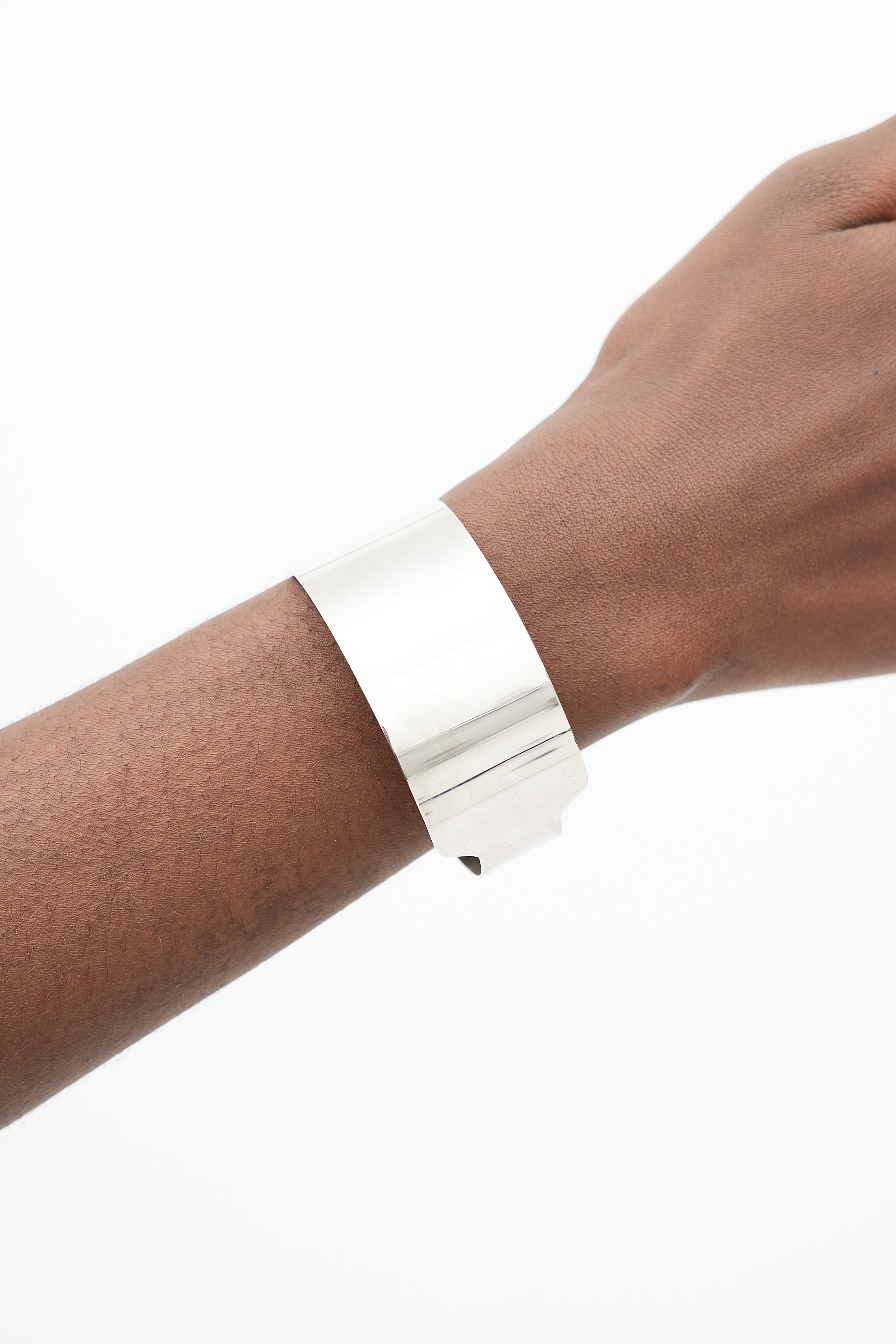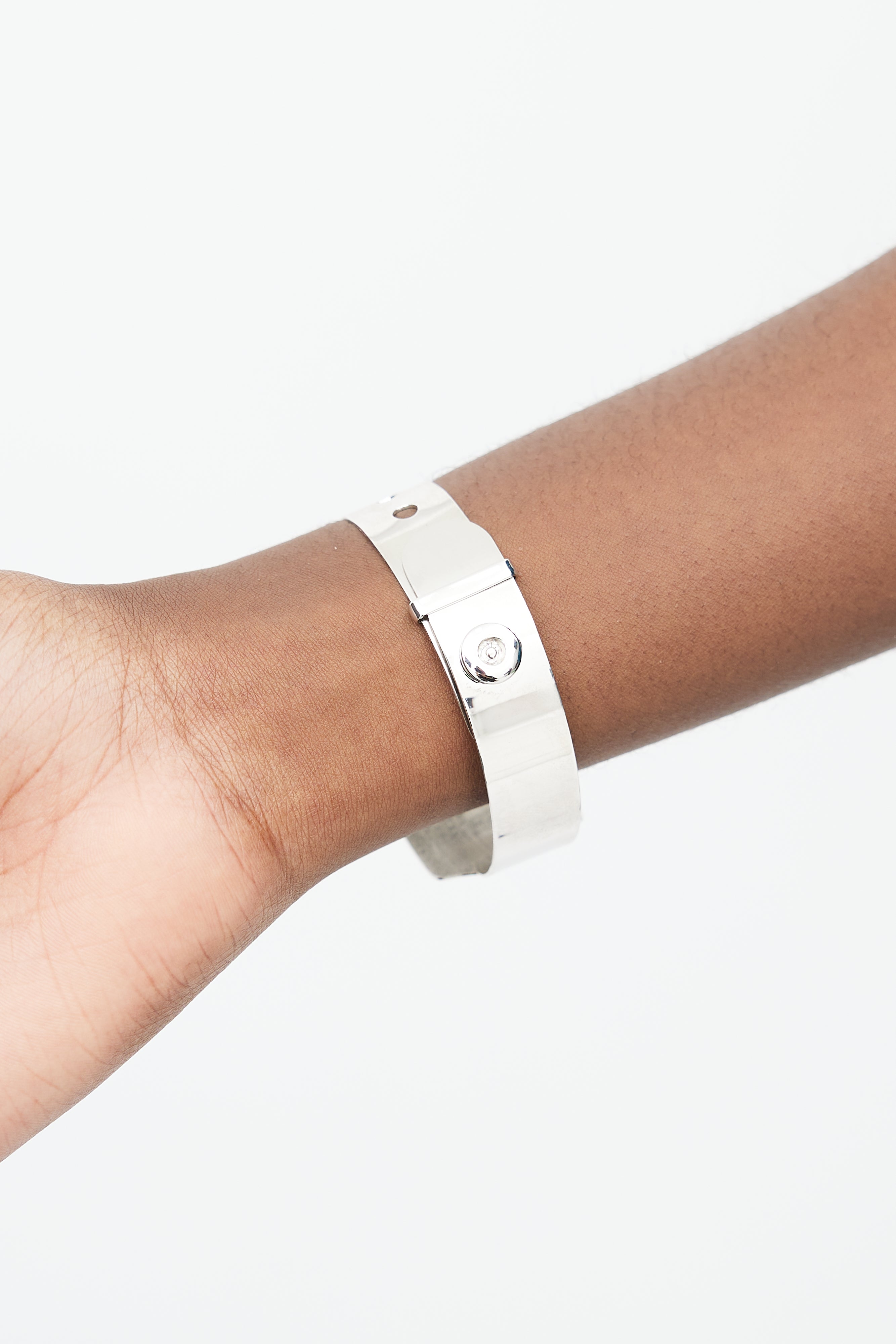 Pre-owned MM6 Maison Margiela silver ID bracelet featuring an embossed logo at interior, and adjustable perforated band. Comes with original dust bag.
