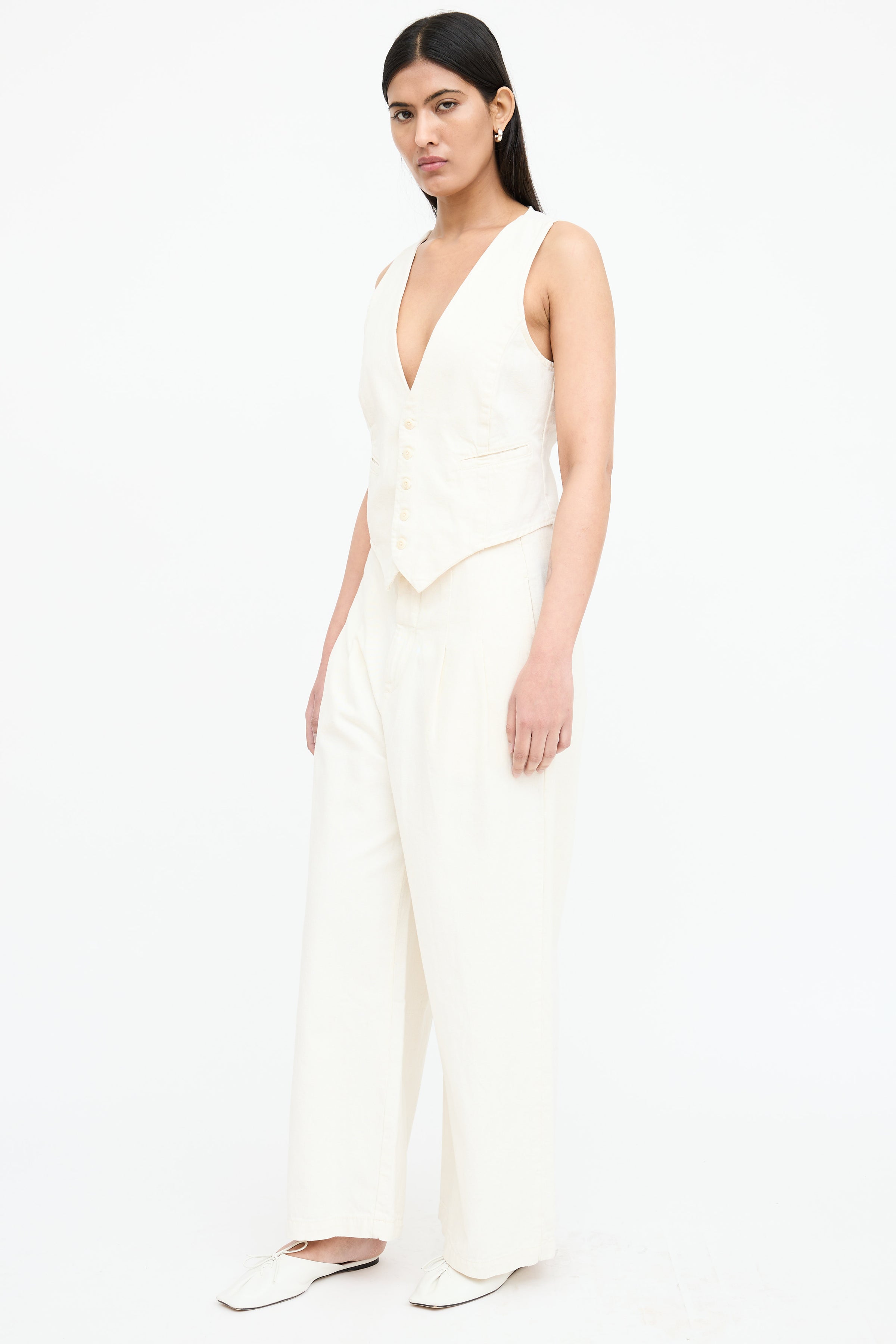 Pre-owned The Great cream suit vest featuring V-neckline, button front, two front welt pockets and back half belt.