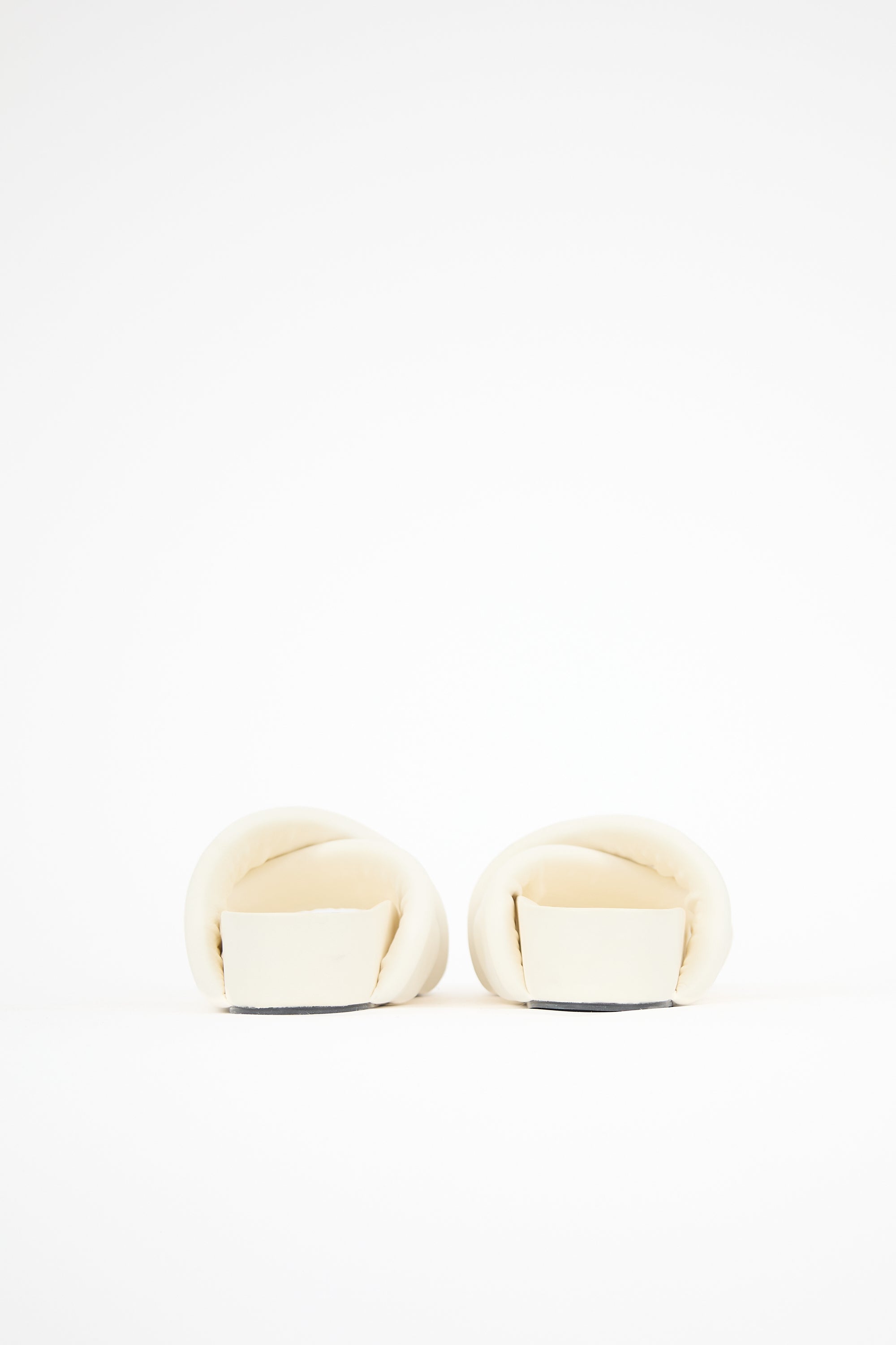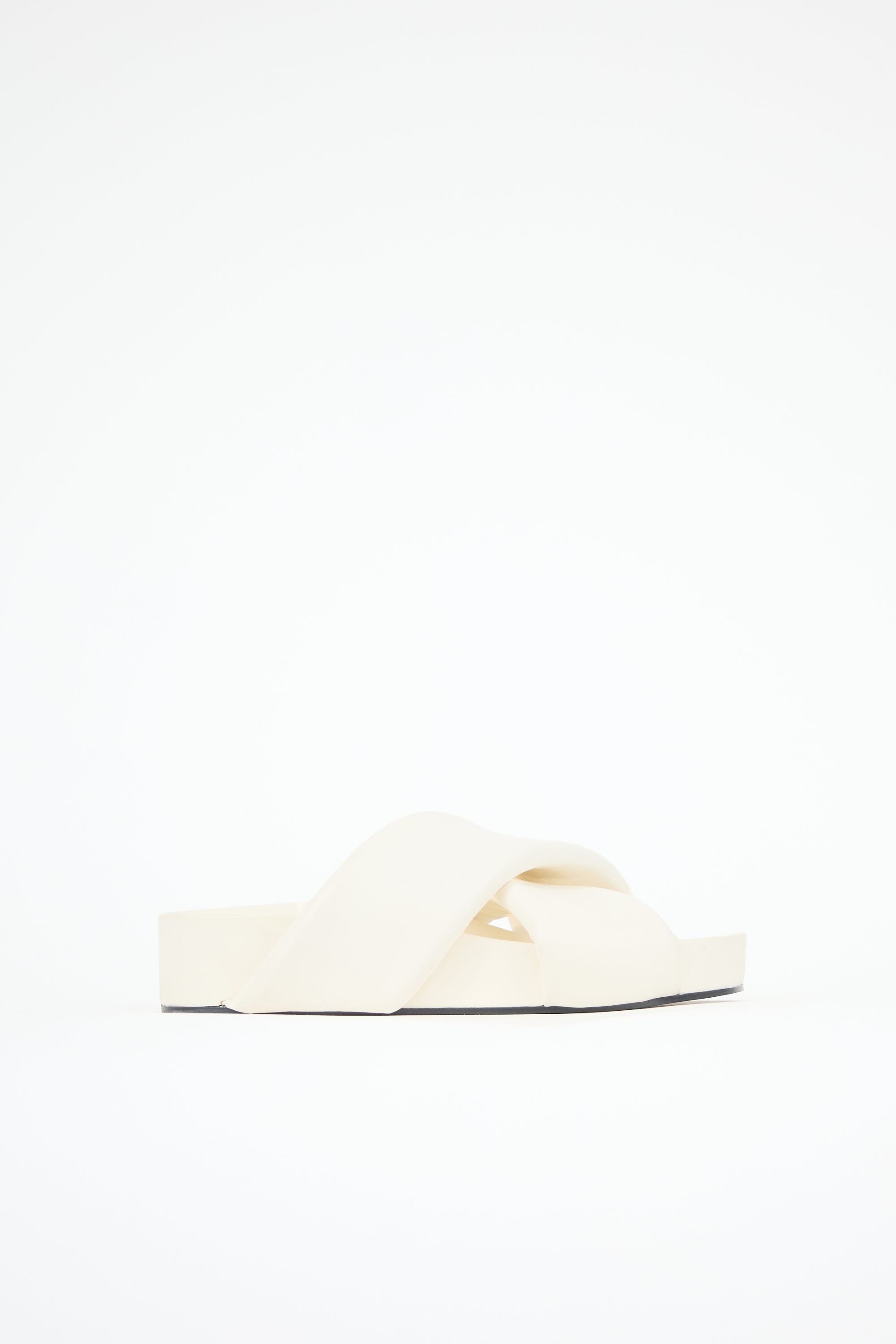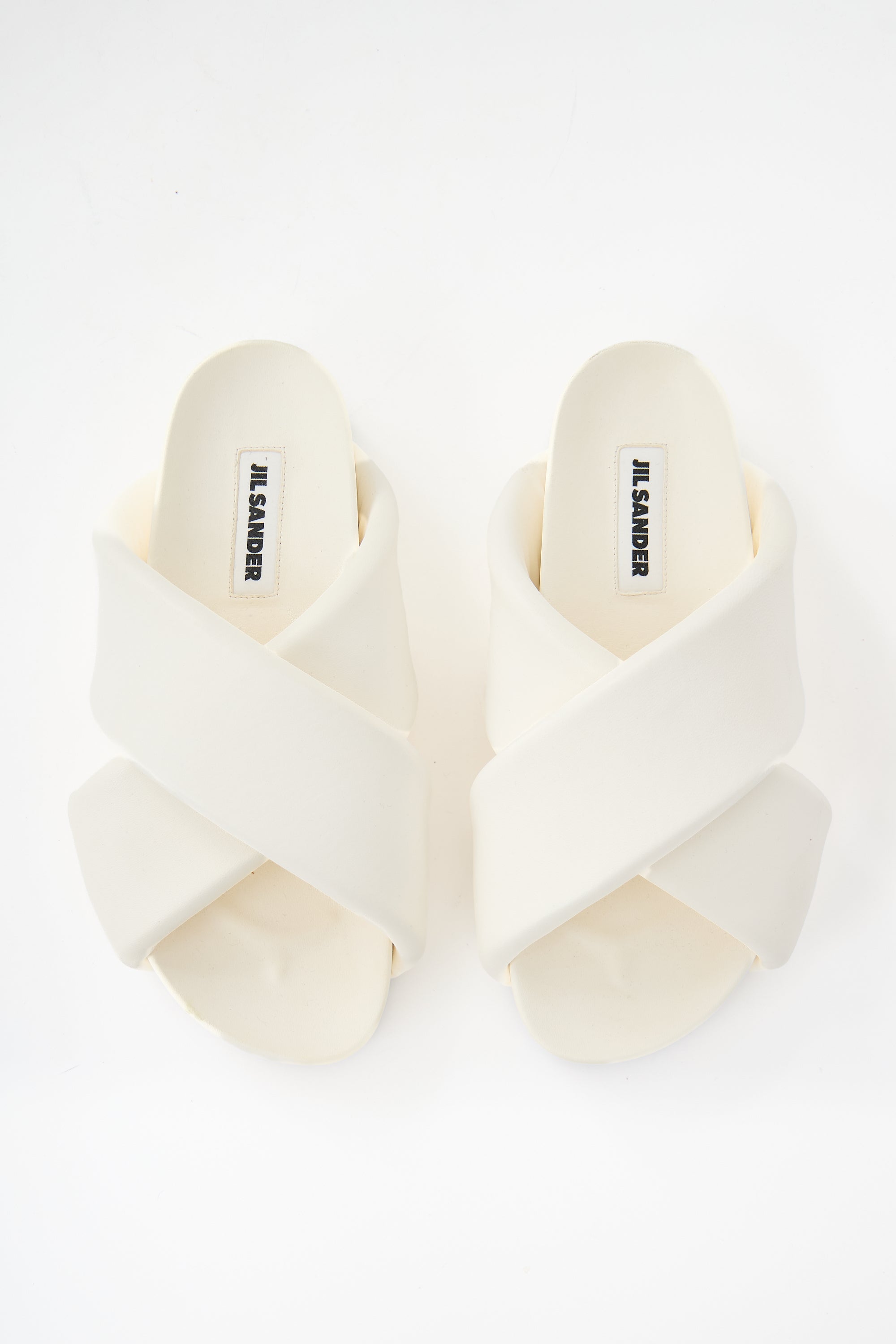 Pre-owned Jil Sander cream leather sandals featuring rounded toe, wide padded criss cross straps, and platform footbed.